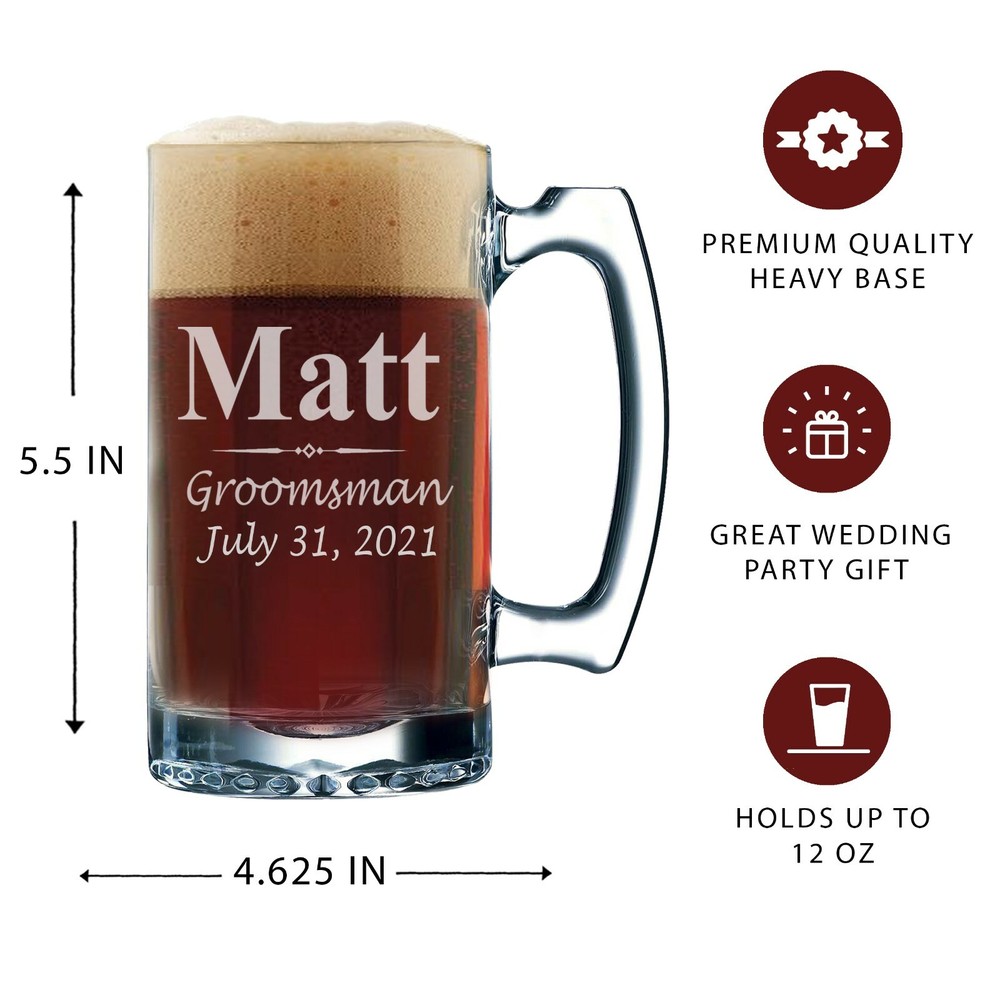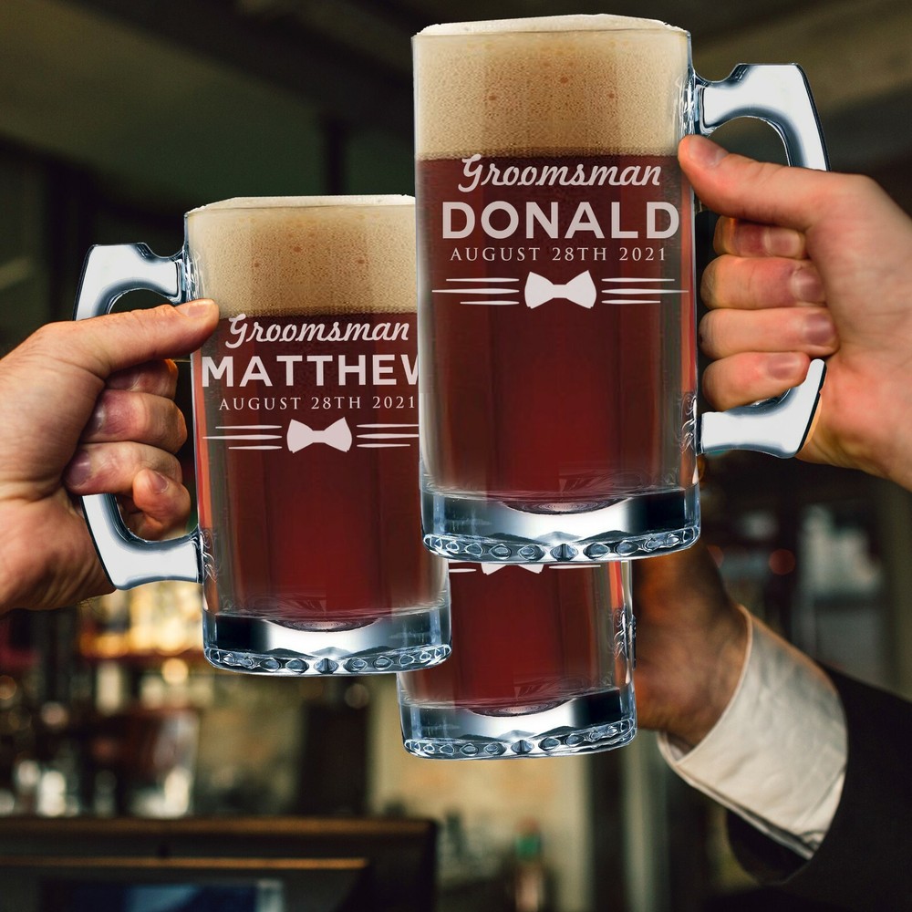 HOME Contact Ships in 1-3 days 100% Satisfaction Guaranteed Gifts for everyone Menu Categories Men and Groomsmen Women and Bridesmaids Wedding and Couples Children and Ring Bearer Pocket Knives Housewarming Flasks Glassware Other Personalized Beer Glasses Groomsmen- 12 oz - Etched Groomsman Beer Mugs Click Thumbnails to Enlarge Product description . Custom laser custom engraved groomsmen beer mug glasses for the beer lover in your life. Great for groomsmen gifts, wedding party gifts, best man gifts, groom gifts and for those who like to have a good time. Etching is permanent ,the glasses are all dishwasher safe and is a great groomsmen gift idea! Holds 12oz each. Personalization is FREE! If ordering 6 or more please contact me for a bulk discount! IMPORTANT! Put your engraving instructions like name, text, dates, etc and the engraving style choice by clicking the 'message to seller' link during checkout. This is located directly below the Review Item and Shipping Section Fast Shipping! Your entire order, engraving and all will ship in 1-3 Days 100% Satisfaction Guaranteed HOME Contact Copyright © 2017 Factory Air Compressors . All Rights Reserved. | eBay Store Design by OCDesignsOnline