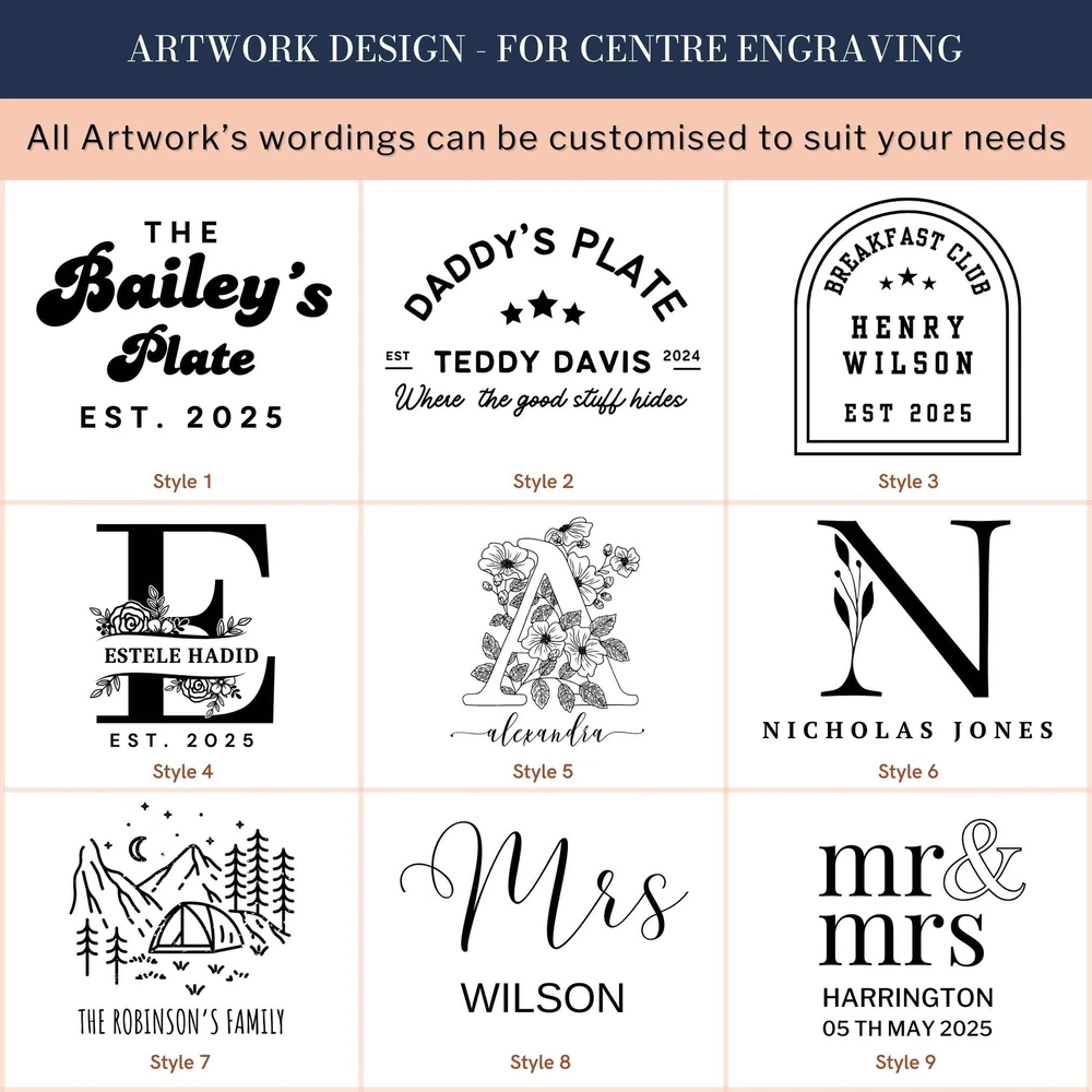 Custom Engraved Enamel Camping Retro Deep Soup Plate Custom Engraved Enamel Camping Retro Deep Soup Plate DETAILS ★ Discover the Perfect Enamel Soup Plates: Ideal for both indoor and outdoor dining: Enjoy your favourite meals with our distinctive Enamel Plates. Whether it's a personalised plate that brings a traditional style to your table or an adventurer's enamel plate perfect for camping and picnics, these plates are a must-have. They make a wonderful gift for the adventurer in the family or any friend who loves the outdoors! Perfect for hiking trips, camping weekends, lazy beach days, and picnics, these plates add a unique touch to your table setting. ★ Retro Charm and Timeless Design - Our Enamel Plates feature a classic blue and white finish reminiscent of American diners, adding a nostalgic touch that guests will love. - The retro blue and white enamel design not only enhances the aesthetic appeal but also makes a statement on any table. The blue rim creates a unique look and makes it easy for people to identify the edge of the plate, ideal for care homes or those with vision difficulties. ★ Perfect for Any Dessert & Food: Ideal for both indoor and outdoor dining, our versatile soup plates add a touch of style to every meal. Whether you're serving hearty soups, pasta, cold meats, steak, sandwiches, BBQ, cheese, puddings, desserts, ice cream, homemade cakes, pancakes, waffles, sweet treats, breakfast, and more, these plates make every dish look and taste even better. ★ Timeless Design: The retro blue and white enamel design not only enhances aesthetic appeal but also makes a statement on any table, elevating the presentation of your food. The blue rim creates a unique look and makes it easy for people to identify the edge of the plate, ideal for care homes or those with vision difficulties. ★ Durable and Long-Lasting: Crafted from heavy-duty stainless steel and covered with an ultra-durable, fuséd-glass coating, these plates develop a unique character over time. The enamel coating is heat and chemical resistant, making these plates highly versatile. They are safe for use in the oven and microwave for reheating food and can be easily cleaned in the dishwasher. The stainless-steel interior ensures long-lasting durability, even in customer-facing environments. ★ Exceptional Versatility: The enamel coating on these soup plates is both heat and chemical resistant, allowing you to serve homemade ice cream directly from the freezer or bake a delicious apple crumble in the oven. These bowls can handle it all. ★ Personalisation Options: Personalise your Enamel Kitchenware with initials, a name, or a custom logo to create a unique, personalised piece that reflects your style and identity. They make exceptional gifts for kids, Father’s Day, Mother’s Day, teachers, wedding favours, birthdays, housewarmings, couples, and any occasion where a thoughtful touch is appreciated. Choose from a wide range of designs to find the perfect match. ★ Ideal for Various Settings: Designed to withstand the rigours of everyday use, cleaning, and storage, our Enamel Tableware are equally at home in commercial settings like restaurants, cafes, and hotels. Their durability ensures they maintain a fresh appearance even with frequent use. It can be safely uséd it in the oven and microwave when reheating drinks. ★ Corporate Gifting and Promotions: Enhance your business relationships by personalising Enamel Plates with client names, monograms, or company logos. They make memorable closing gifts or promotional items that leave a lasting impression. ★ Stylish: Choose from a wide range of design options to personalise your plate, ensuring it reflects your unique style. ★ Safe: BPA-free and crafted with quality materials, our enamel tableware are designed with your safety and satisfaction in mind. ★ Care Instructions: - Our enamel tableware can be washed in the dishwasher, ensuring quick and convenient cleaning. The classic retro blue and white enamel tableware gains a unique character with repeated use, as chips and imperfections contribute to its individual charm. - To maintain a flawless appearance, avoid using the dishwasher. Clean gently with non-abrasive cleaners and avoid scourers to preserve the enamel finish. SPECIFICATIONS Dimensions : H x D: 60 x 245 mm Diameter ( 2.36" x 9.65" ) Material: Enamel Steel, Fuséd Glass Coating Technique: Laser Engraved. Personalise any design with names, dates, templates, logos, or images. Our high-quality, long-lasting laser engraving surpasses vinyl stickers, ensuring durability and a professional finish. Note: Chips and imperfections are part of products' individual look. HOW TO ORDER 1. Choose your Engraving Side: Select whether you want engraving on the top or bottom rim, the centre of the plate, or both. 2. Type in Engraving Style and Order: Specify the engraving style and the exact text you want engraved based on our provided Design Template Options. You can add any additional instructions in brackets (). Please refer to Style #A - Style #R for the Plate Rim's Engraving Example: - Top Rim: Style #O: Timothy Harrington - Bottom Rim: Style #O: Amelia Harrington - Centre: Style #9: mr&mrs Harrington, 05th May 2025 ▸If you want to use your own logo, please attach/ send us your file once you finish . Please note to attach the highest resolution file as possible to avoid quality issues Not all files are scanned prior to manufacturing, if you're not sure, please send us an email after placing the order to confirm if the file is of an acceptable quality. ▸You can combine or pick any font, icon, style, etc between our provided designs, or choose not to include a date, title or icon for example. All artwork based on our available design is free of charge. ▸If you don't like any of our template and want to create your own bespoke artwork design, please feel free to contact us with any questions you may have, a small additional fee may apply. DELIVER