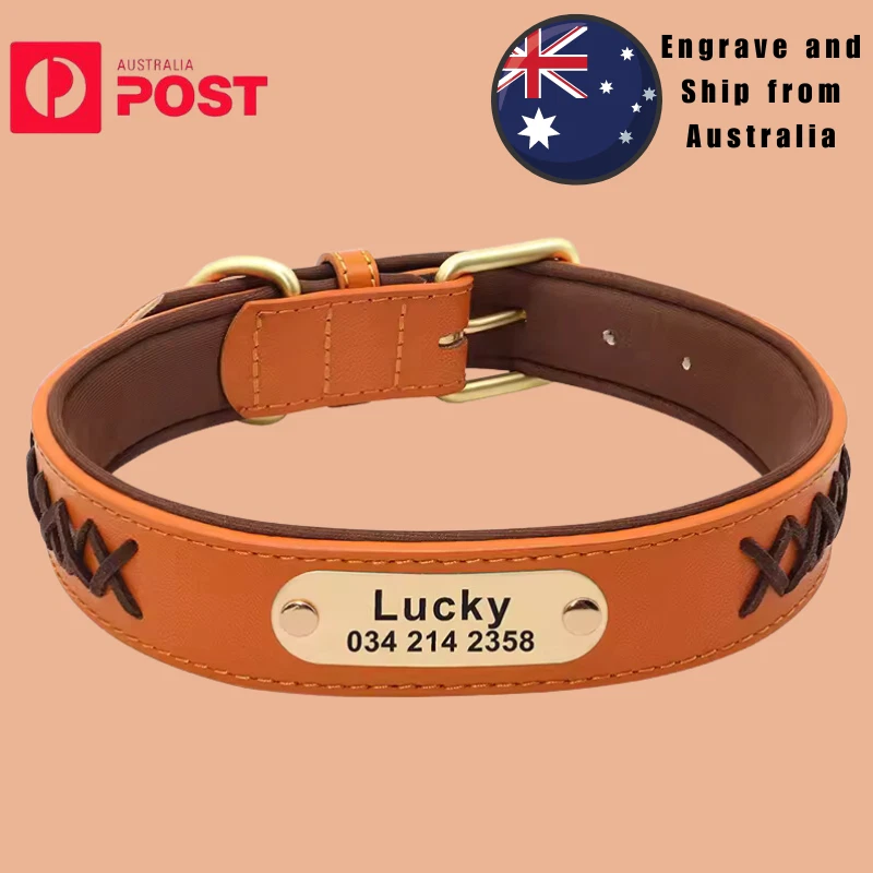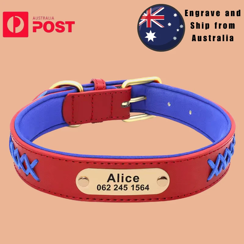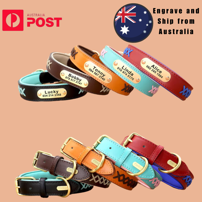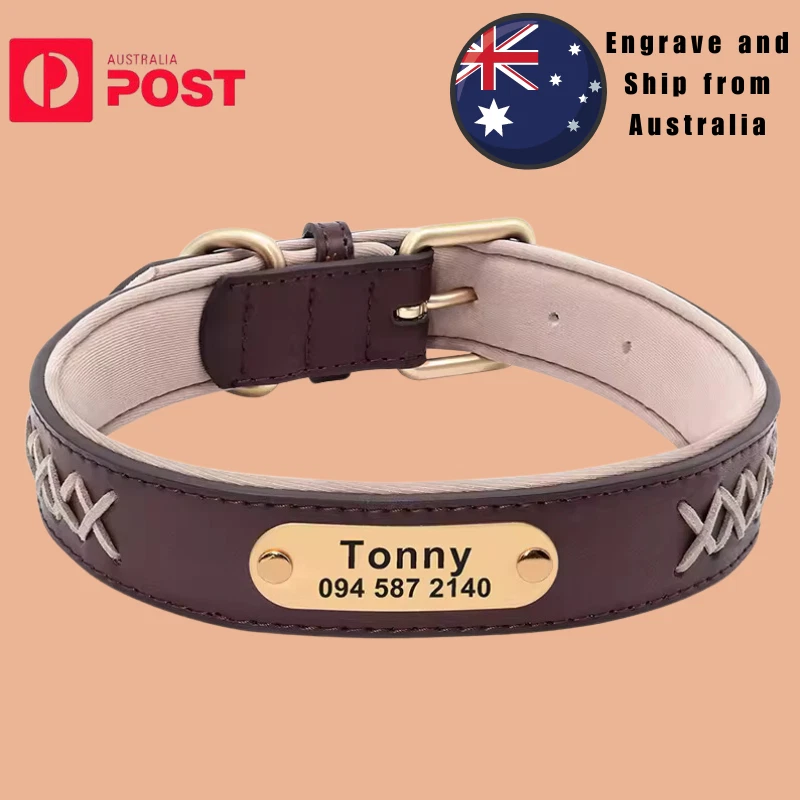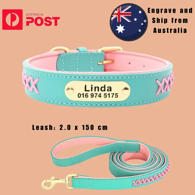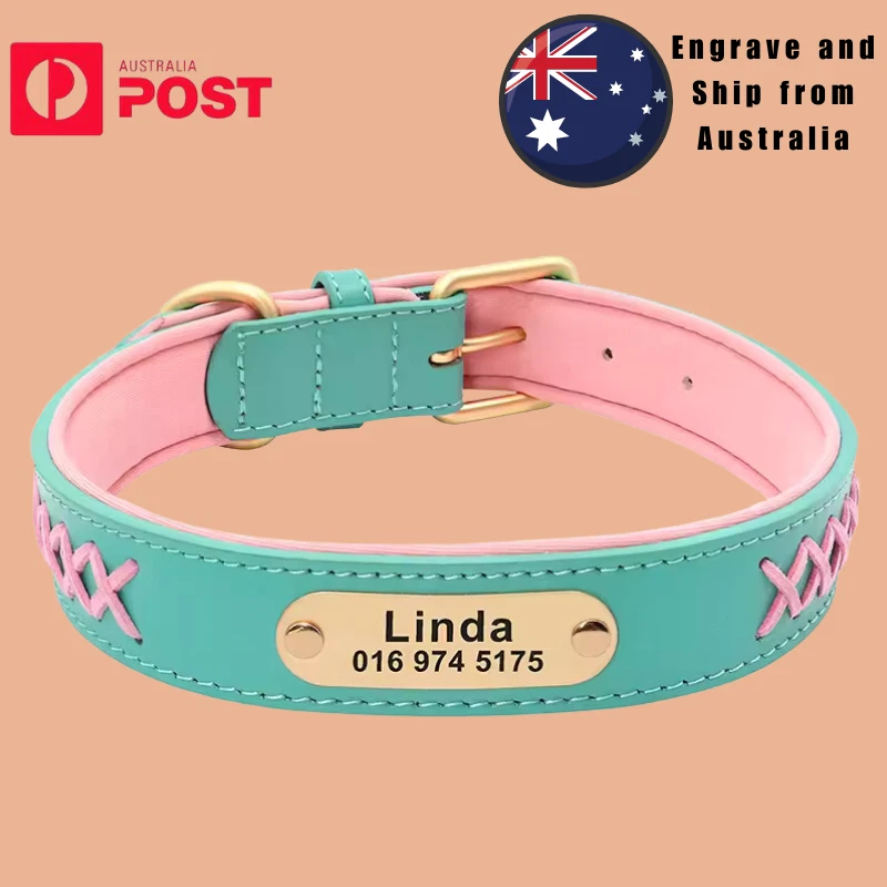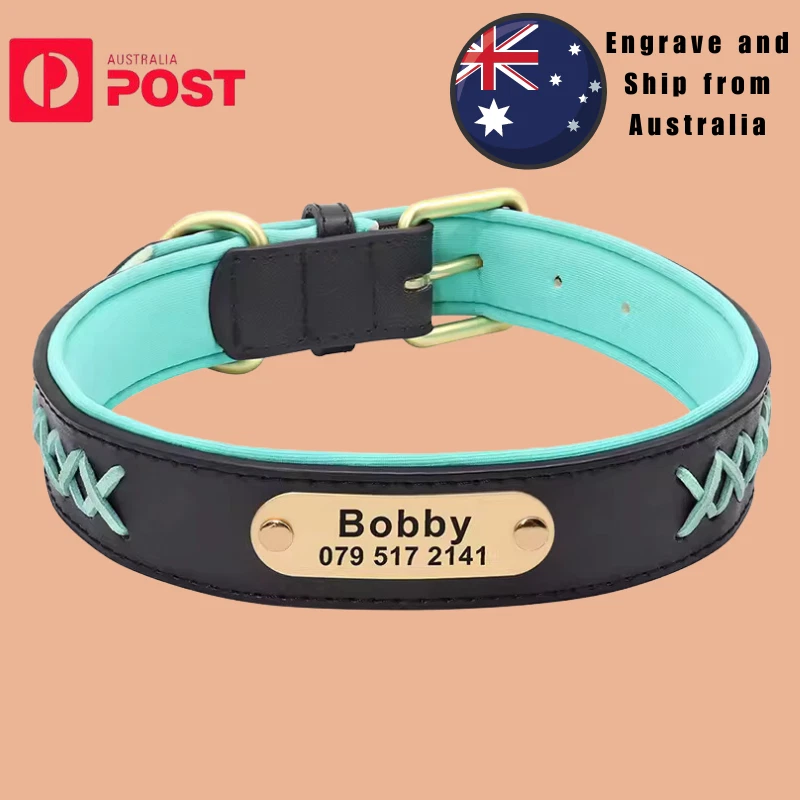 Type: Personalized Dog Collar Engraved Leather Nameplate Pet Collar Braided Padded French Bulldog Collars For Small Medium Large Dogs Material: Genuine Leather, soft padded 5 Colors: Mint Green, Red, Dark Brown, Coffee, Black Durable D ring which can contact to a dog leash 5 holes for adjustment Laser machine engraved,we can engrave hundreds of this collar per day Fit for small medium large dogs e.g. German Shepherd/Beagle/Pitbull/ Labrador Retriever /Bulldog.etc. Please enter your information at check out or send us a message. Sample: Linda 0401 123 456