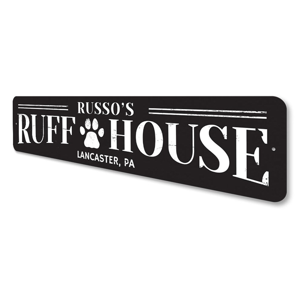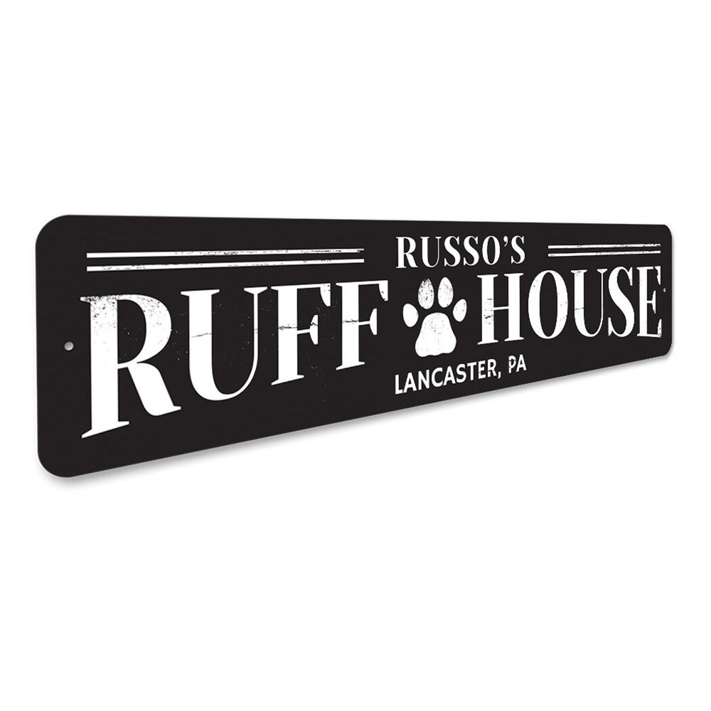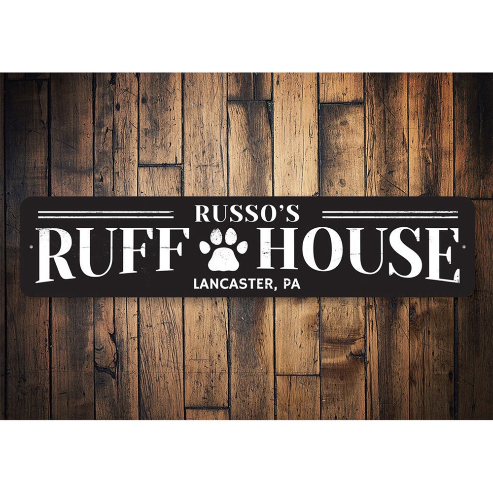 The Lizton Sign Shop Product Description Personalized Dog Ruff House Sign **there may be slight variations in color and text spacing, however your sign will be very similar to the image above. Quality Aluminum Street Signs Sign Information Aluminum Brand New Sign Comes with rounded corners and pre-drilled for easy hanging. We use the highest quality materials - 100% USA-made! Great Gift Idea - Our signs truly make a one of a kind gift. Personalize the sign with the text you want to add. Custom text for the sign can be sent to us via email. A BRAND NEW SIGN!! All of our street signs are made of premium materials. The sign itself is made of aluminum and will never rust providing years of enjoyment indoors and outdoors. No Cheap plastic!! The Lizton Sign Shop specializes in quality personalized custom aluminum signs for any occasion. These make the perfect sign for any man cave, office, basement, garage, college dorm, kids bedroom, game room, bar, pub, tavern or countless other places. *Colors may vary slightly from one computer screen to the next but the image should be very close. All content and designs are subject to copyright and may not be reproduced in any form. Payment Methods We would prefer payment to be made through paypal but we also accept all major credit cards. If you select the credit card option please contact us after you make your purchase and we can walk you through the steps to make a secure payment. Return Policies We will accept returns within 30 days of the purchase date. The buyer is responsible for any costs to return the item or items. Returns will only be accepted for items that were damaged in shipping or if we made an error in the manufacturing of your item, i.e. spelling error.