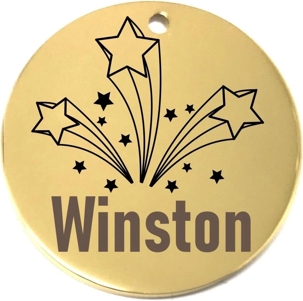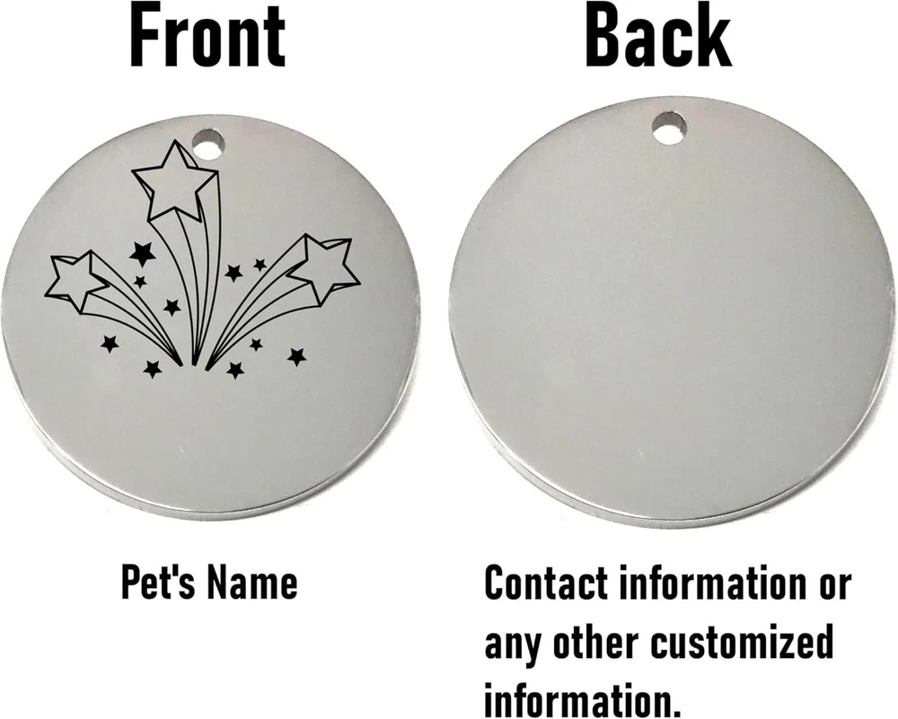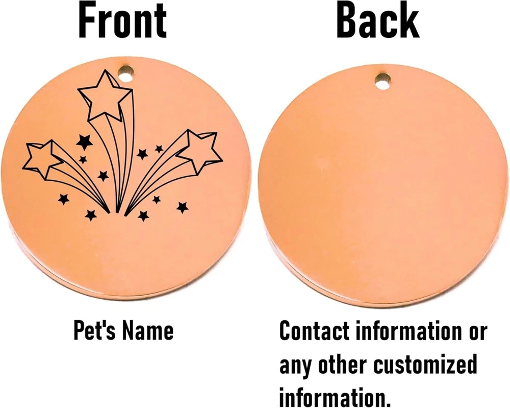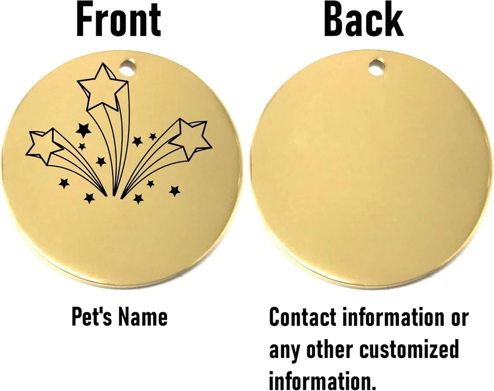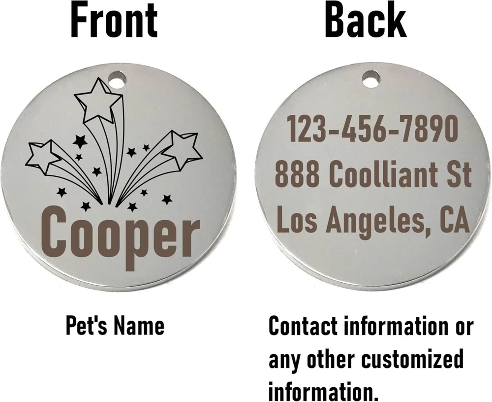 American seller - ships from California. Personalize your own pet ID tag with laser engraving. You can select from front, back, or both sides for the engraving. Front side - maximum 12 characters Back side - maximum 70 characters and 5 lines Emojis are not allowed. Fewer characters will be in a bigger font, while more characters will be in a smaller font. Please double-check your spelling. Please use the following format: Font: #1 Arial(please refer to the image) Front side: Your pet's name Back side: Line 1: 123 Address St Line 2: City, State Zipcode Line 3: (123) 456-7890 Line 4: n/a Line 5: n/a Package Includes : 1 x Personalized Pet ID Tag with a small split ring Material: Stainless Steel(mirror polished) Weight: Small(5 grams); Large(7 grams) Dimension: Small(1 inch/2.5cm); Large( 1.18 inches/3cm) Color: Please choose Rose Gold, Gold, or Silver Unique design, excellent quality - Our Dog ID tags are made of stainless steel, with your pet's name on the front side and contact information engraved on the back side. They are stylish and durable. Keep your pet safe and stylish with our stainless steel personalized pet ID tag! This polished pet name tag can be custom engraved with your pet's information on both sides. Its polished finish adds a touch of elegance, while its light weight won't bother your pet's collar. Choose a unique design that matches your pet's personality! Size Guide: The personalized pet tags are available in both large and small sizes. Large tags measure approximately 1.2 inches in diameter and are recommended for large and medium-sized dogs. Small tags measure approximately 1 inch and are recommended for cats and smaller dog breeds. Custom deep laser engraving - Utilizing deep fiber laser etching to permanently mark the tag. The engraving is deep, clear, and attractive on a polished mirror-finish surface, making it durable and easy to read. Your pet's essential information will not wear off over time. All pet ID tags come with a free small split ring for easy attachment to your pet's collar or keychain. This helps prevent your pets from losing their ID tags. This personalized pet name tag can be used on pet carriers, key chains, backpacks, and more. Custom laser engraved name tags are a cute and thoughtful way to surprise your friends and family. Due to differences in lighting and screen settings, the color of the item may appear slightly different from what is shown in the pictures.