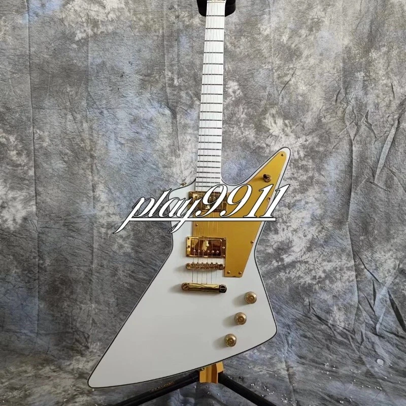 Custom Explorer White Electric Guitar Gold Hardware Gold Pick Guard HH Pickups Welcome to my store. My team has been making musical instruments for many years. I will try my best to provide the best item for you! Goods condition Body:Mahogany Neck: Mahogany Fingerboard: Rosewood Nut width: 43 mm Scale Length:24.7 inch Joint:Bolt on Hardware:Gold Pickups:2 Humbuckers Pickup Switch:3-ways Electronic:1 Volume 2 Tone Bridge:T-O-M ABOUT THE PICTURES The pictures are taken in our factories by ourselves. Each guitar is different from others because of the light in room or some other reasons .So there are maybe some differences between the pictures and the guitar you get. Every guitar cannot be the same in 100%, the pictures of the guitar that you see is just one of them. If you want some details about the guitar, please contact me. OUR GUARANT EE We test every guitar (such as buzzing, sound test, workmanship) is in good condition before it is shipped out. When you receive the guitar, if you meet some problems like readjustment the strings or you are not happy with our guitar, please let me know immediately and we will try our best to meet you satisfaction. CUSTOMIZED CEN TER Head stocks are not pictured per our policy. Custom Head stocks are available upon request from our factory custom shop. Please contact us for details. All customized products are non-returnable. SHIPPIN G Once payment has been confirmed, your item will be shipped within 3 or 30 business working days. That depends on specific goods deliver ways.The speed also base on Custom Clearance Speed, which we can't control .So if you want this for your gig next weekend it probably wont make it on time, so please keep that in mind when ordering. PACKI NG We use the carton which is designed for the International transport to package the products you ordered. And we can guarantee the items will not be damaged in the way of transportation. RETURN POL ICY If the item you received is broken or defective, please contact me immediately and return it within 3 days after you received it with the original or approved packaging. After we received it, we will give you a Full-Refund or Exchange. Buyers are responsible for return shopping costs. If you want to replace it, we will send a new one to you and then forward a shipping label. For missing or replacement parts(from the original order), we will ship them to you. Please read the RETURN POLICY before you order it! FEEDBA CK Thank you for your great comments and feedback. (a) When you are satisfied with your purchase, we sincerely hope that you can give us a positive feedback. Again, we will give you a positive feedback. (b) If you are dissatisfied with your purchase, please contact us submitting a neutral or negative feedback. We will respond to you in 24 hours and work with you until you are satisfied.