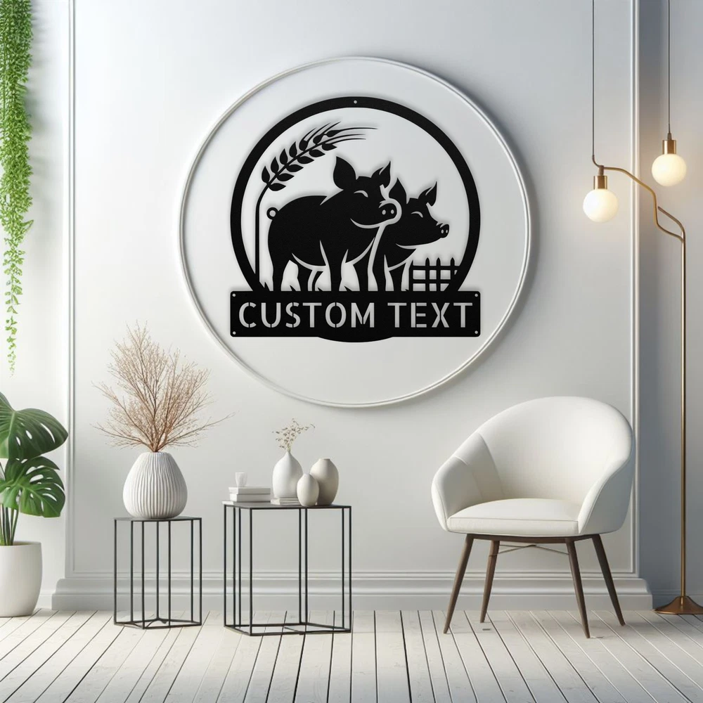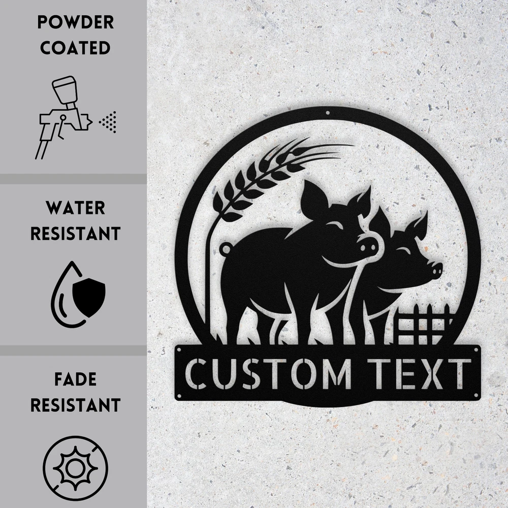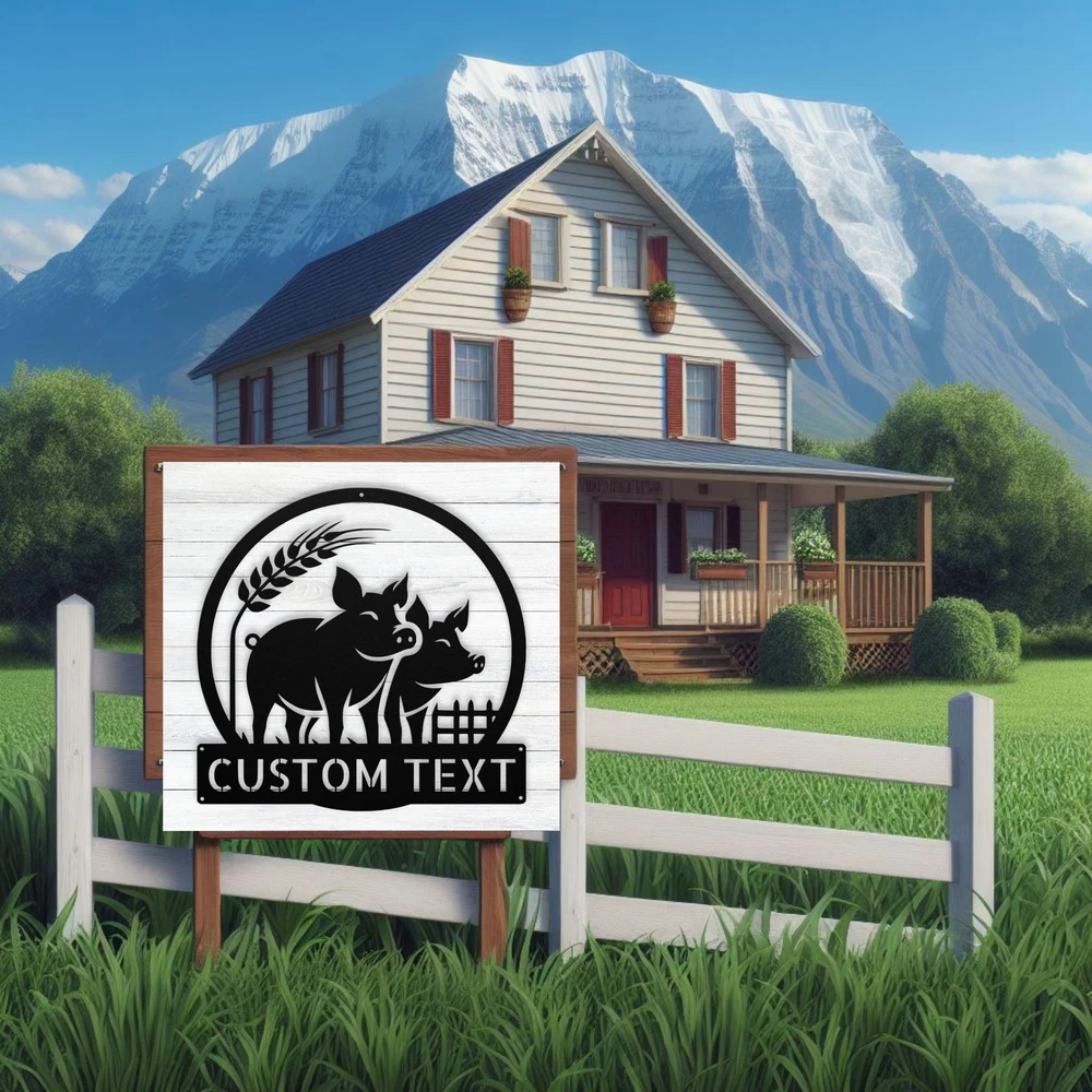 Product Description Custom Farmhouse Pigs Metal Sign Rustic Home Decor Personalized Farm Sign Gift Add a charming touch to your space with our Custom Farmhouse Pigs Metal Sign ! This rustic home decor piece is perfect for farm lovers and adds a warm, welcoming vibe to any room. Made from high-quality 16-gauge metal, this sign is designed to withstand the elements with its durable powder coating, making it both dust and weather resistant. Whether you’re looking for a unique gift for Christmas, a birthday, or any special occasion, this personalized farm sign is a thoughtful choice. It’s also great for decorating your own home or office, showcasing your love for the farm life. Key Features: Customizable Design : Personalize the sign with your name or a special message. Durable Material : Crafted from 16-gauge high-quality metal for long-lasting use. Weather-Resistant : Powder-coated finish protects against dust, rain, and rust. Versatile Use : Suitable for both indoor and outdoor display. Perfect Gift : A unique and heartfelt present for any farm or animal lover. Bring a touch of rustic charm to your decor or surprise a loved one with this delightful metal sign. Order yours today and make your space truly special! Service and Color Choice Our metal signs are designed to be personalized just for you, making them the perfect addition to any space! The default color for our signs is Black , but we also offer a variety of beautiful options including Copper, Gold, White, and Silver . After placing your order, simply contact us with your preferred color choice, and we'll ensure your sign is exactly how you envision it. Let’s create something special together!