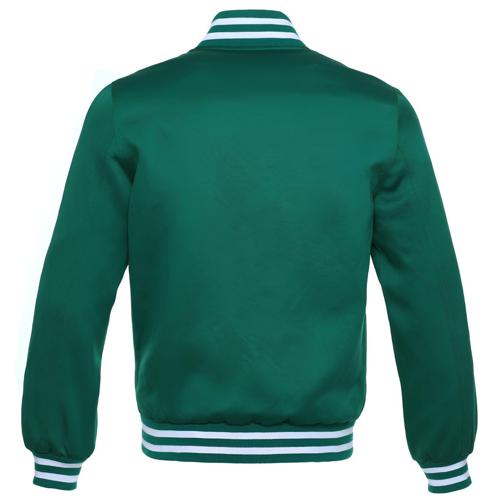 VARSITY/BASEBALL JACKET Forest Green Satin - Baseball Jacket Varsity Jacket Letterman Jacket – Available in All Sizes We specialize in crafting personalized jackets featuring intricate embroidery and custom patches, designed to perfectly match your style and specifications. Product Description : This listing is for a beautiful well made Authentic Letterman Jacket Comes with Satin Specification : The varsity jacket is expertly crafted from premium-quality 100% satin for both the body and sleeves, ensuring a sleek and stylish finish. Varsity Jacket with 2 Front Side Pockets and 1 Interior Pocket Polyester Quilted Padded Lining for Superior Warmth and Insulation Soft-Shell Rib Knit Cuffs, Collar, and Bottom for Skin Protection We are confident that the exceptional quality and remarkable design of our products will exceed your expectations.