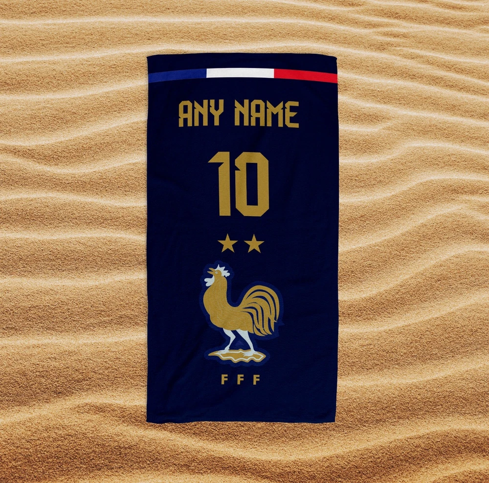 HOW TO ORDER 1.Choose the size 2.Put the desired name and number in personalized column 3. Place the order Introducing the epitome of summer luxury – the Personalized France National Football Team Beach Towel. This isn't just any beach towel; it's a statement of pride, a declaration of passion, and a personal sanctuary of comfort for every ardent fan of Les Bleus. Crafted from the finest, plush cotton fibers, this beach towel offers an unparalleled softness, ensuring your beach days are enveloped in the utmost comfort. Featuring the iconic hues of the French flag, interwoven with the prestigious emblem of the France National Football Team, this towel doesn’t just whisper elegance; it shouts legacy. The pièce de résistance? Your name, elegantly personalized alongside the team's emblem, making this not just a towel, but a testament to your unwavering support. Whether it's draped over a beach lounger, serving as a soft blanket during a seaside picnic, or flapping in the breeze as you find your spot in the sand, this beach towel is the ultimate companion for the discerning fan ready to showcase their loyalty. Indulge in the spirit of victory and the luxury of premium quality with the Personalized France National Football Team Beach Towel. It's not just perfect for you; it's the ultimate gift for the football aficionado in your life, turning every beach outing into an occasion. Don't settle for ordinary when you can own a piece of French football history that’s as unique as your passion. Embrace the summer with open arms and the colors of France draped by your side. Order now and infuse your beach days with the spirit of champions. This awesome beach towel makes the perfect gift for your loved ones for any holiday, birthday, anniversary, or just because! SIZE 40x20 inch 100x50 cm 55x28 inch 140x70 cm 63x32 inch 160x80 cm 71x40 inch 180x100 cm The towel is OEKO - TEX certified Doubleface Mixed 100% Microfiber on the top, 100% Cotton on reverse. Please wash the towel at 30°C 86°F before use it. The softness will return. Have questions? Feel free to contact me. Thanks for visiting.