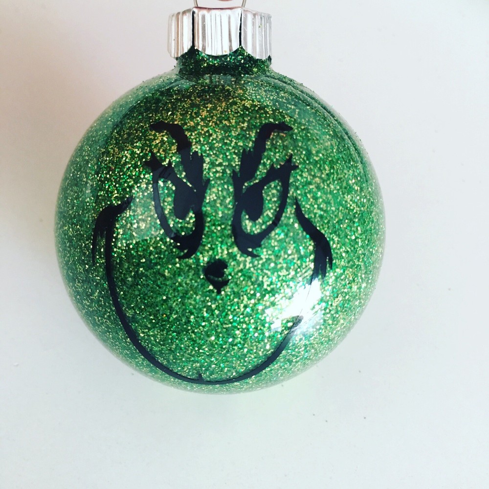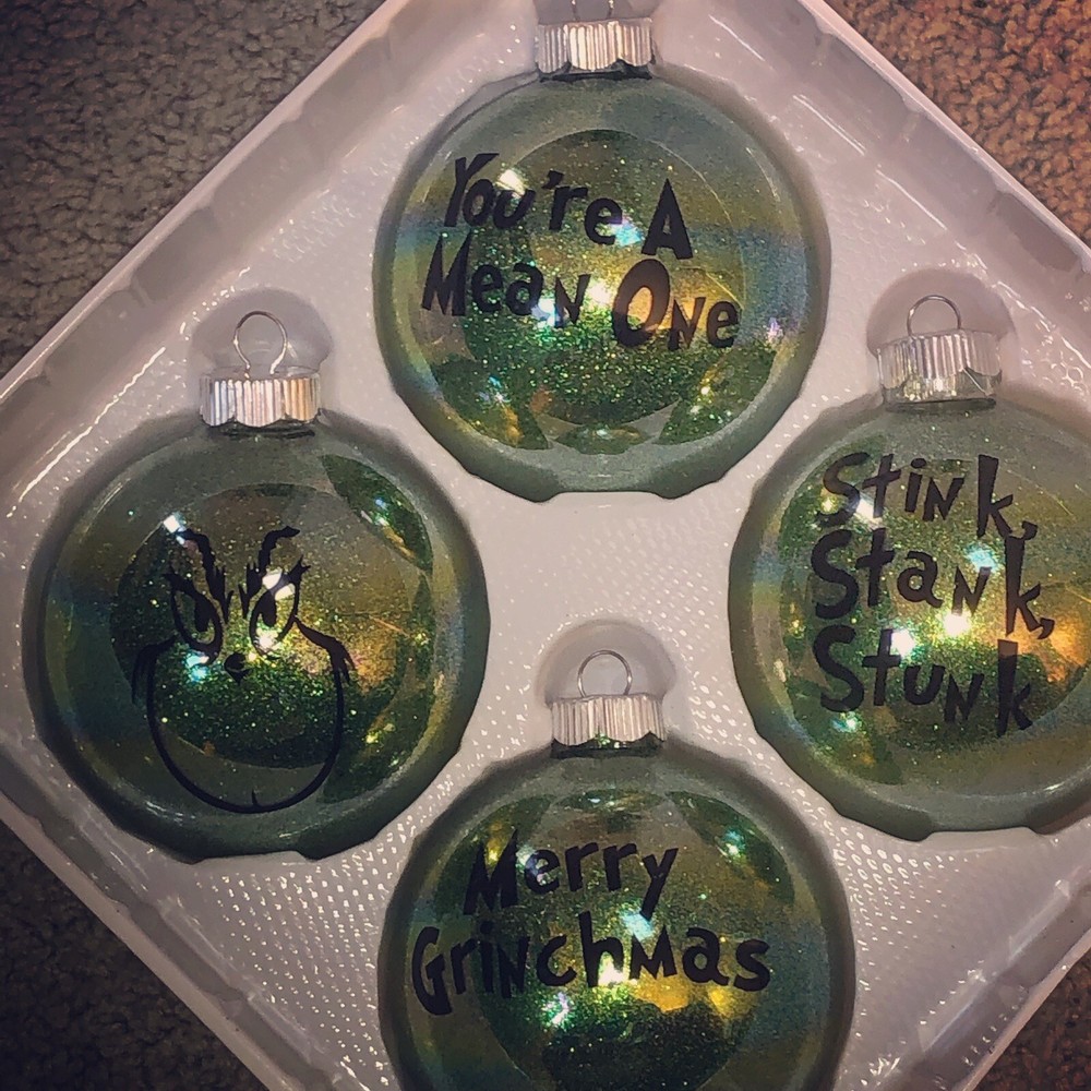 personalized christmas ornaments Grinch!Made With Permanent Vinyl.. A set of four 3 1/2 inches around round ornaments.
