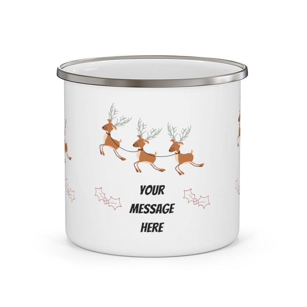 Get your hands on this durable enamel mug that holds 12 ounces of your favorite beverage. Add a personalized touch to your hipster moment with full-color printing of a photo, logo or design. Great for indoors and outdoors activities as it can keep up with the dirt and grunge of campsites. This sturdy and stylish cup is perfect for coffee, tea or even your morning cereal in the wild. .: 12oz (0.35 l) .: Lightweight stainless steel .: Rounded corners .: C-handle