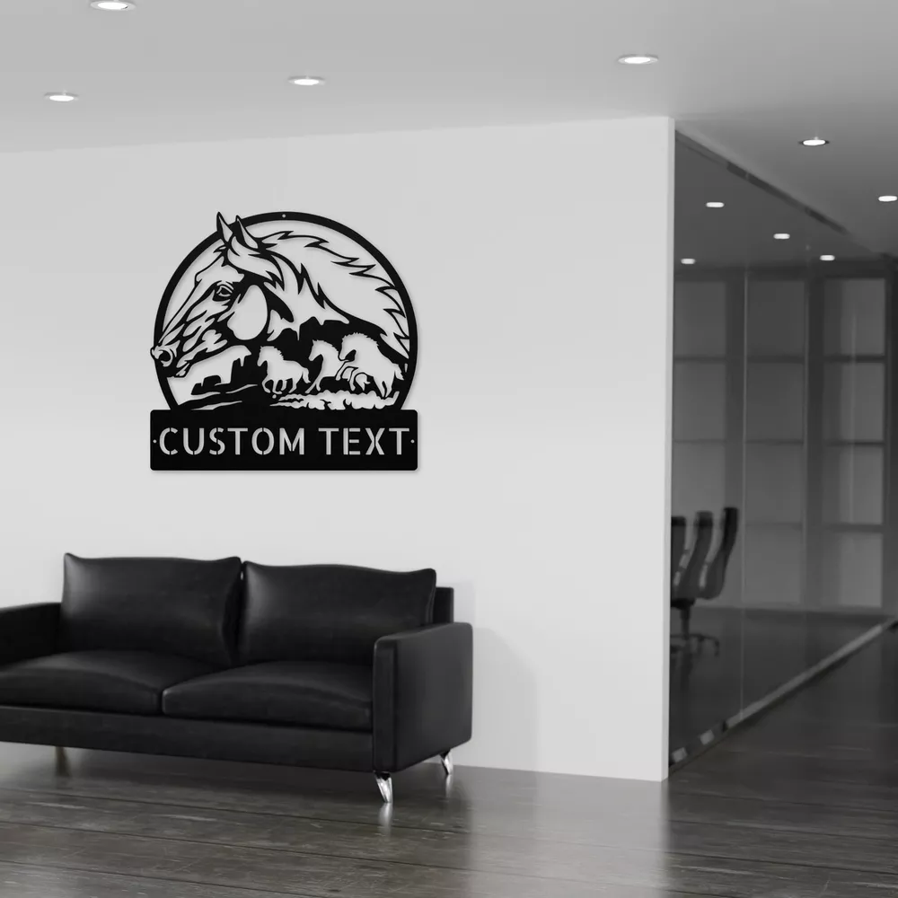 Product Description Custom Horses Metal Sign Perfect Wall Decor for Horse Lovers & Ranchers Celebrate your love for horses with our Custom Horses Metal Sign . This beautiful sign is designed for equestrian enthusiasts and adds a special touch to any home or office. Made from 16 gauge high-quality metal, it is built to last and withstand the test of time. The powder-coated finish ensures that this sign is not only stunning but also resistant to dust, weather, and moisture. Whether you hang it in your stable, living room, or garden, it’s the perfect way to showcase your passion for these majestic animals. You can customize the sign with your name or a special message, making it a unique piece of art that reflects your personality. This sign is an excellent gift idea for Christmas, birthdays, or any special occasion for horse lovers. It brings a warm and inviting atmosphere to any space, making it a thoughtful present for friends and family. Key Features: Customizable: Personalize with your name or a special message for a unique touch. Durable Construction: Crafted from high-quality 16 gauge metal for long-lasting use. Weather Resistant: The powder coating protects against dust, moisture, and fading. Versatile Decor: Ideal for homes, stables, offices, or as a gift for any horse enthusiast. Beautiful Design: Adds charm and character to any space, celebrating your love for horses. Enhance your decor with the Custom Horses Metal Sign and express your passion for horses in a stylish way! Service and Color Choice Our metal signs are designed to be personalized just for you, making them the perfect addition to any space! The default color for our signs is Black , but we also offer a variety of beautiful options including Copper, Gold, White, and Silver . After placing your order, simply contact us with your preferred color choice, and we'll ensure your sign is exactly how you envision it. Let’s create something special together!