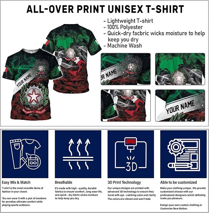 $ 8.98Italian Pride Custom T-Shirt with Italy Map & Flag Design