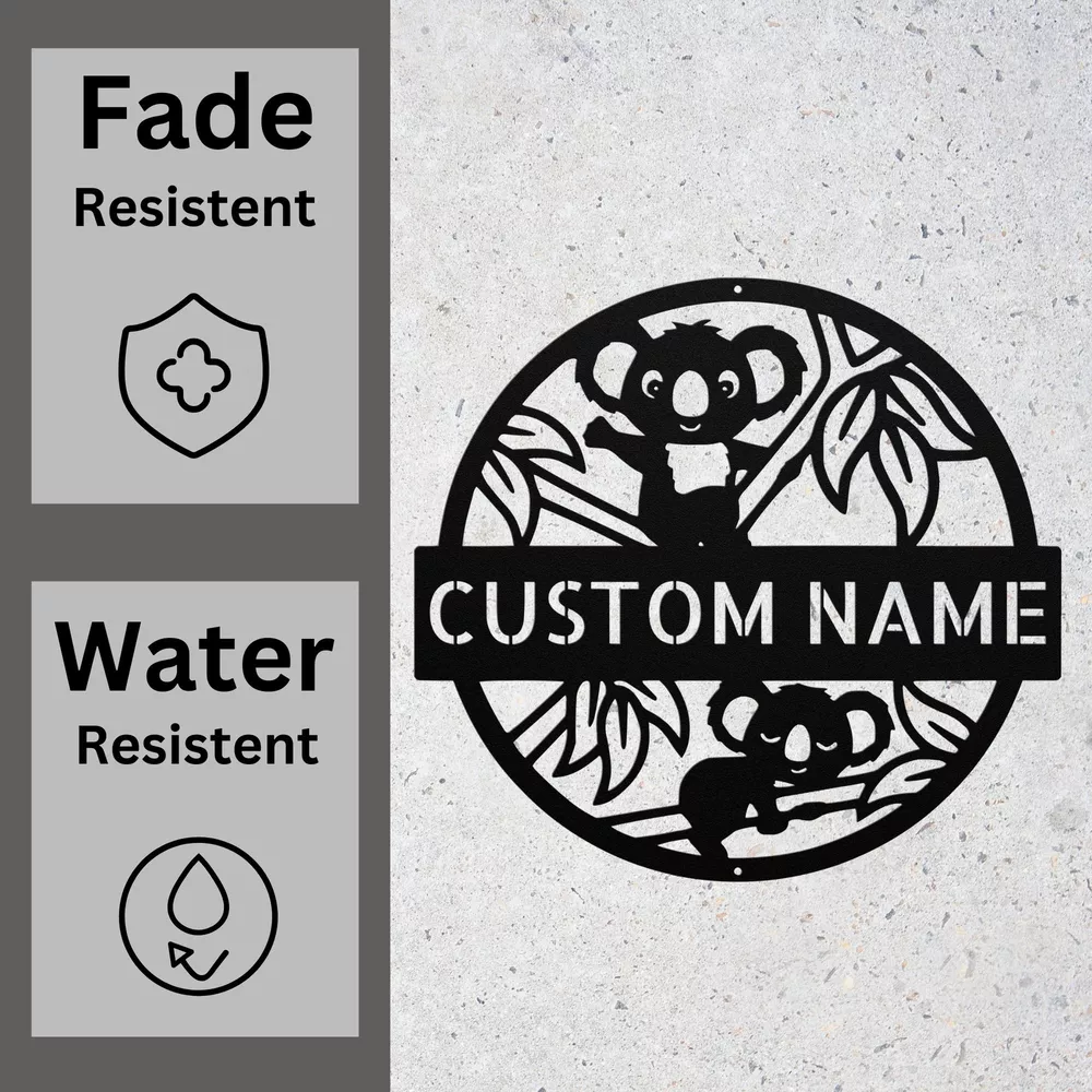 Product Description Custom Koala Metal Sign Personalized Australian Animal Wall Decor Plaque Gift Celebrate the adorable and iconic koala with this Custom Koala Metal Sign ! Featuring a charming koala design , this personalized metal plaque is perfect for animal lovers, Australia enthusiasts, and nature fans . Whether youโre decorating your living room, nursery, or outdoor space , this high-quality sign adds a cute, nature-inspired touch to any room. ๐ Key Features: โ Customizable with Name, Quote, or Special Message โ Add a personal touch or create a thoughtful gift! โ Premium-Quality Metal โ Made from durable, weather-resistant aluminum for lasting beauty. โ Adorable Koala Design โ Perfect for Australian wildlife, animal-themed, or nature-inspired spaces . โ Fade & Rust-Resistant Finish โ Ideal for both indoor & outdoor display. โ Perfect for Any Animal & Nature-Themed Space โ Great for bedrooms, living rooms, nurseries, or gardens . ๐ A Perfect Gift for Koala and Animal Lovers! ๐ Looking for a unique and memorable gift for an animal lover, koala fan, or wildlife enthusiast ? This custom koala metal sign is a thoughtful gift for birthdays, housewarmings, baby showers, or any occasion . ๐ Available Sizes: Choose from multiple size optionsโwhether you need a small accent piece or a larger statement sign for your space. ๐ง Easy to Hang & Display: Designed with pre-drilled holes for easy mounting on walls, doors, fences, or patios . ๐จ Perfect for: Australian & Wildlife-Themed Rooms ๐ฆ Nurseries, Bedrooms & Kidsโ Rooms ๐ถ Personalized Gifts for Animal Lovers ๐ Gardens, Patios, and Outdoor Spaces ๐ณ Nature Enthusiasts & Koala Fans ๐ Service and Color Choice Our metal signs are designed to be personalized just for you, making them the perfect addition to any space! The default color for our signs is Black , but we also offer a variety of beautiful options including Copper, Gold, White, and Silver . After placing your order, simply contact us with your preferred color choice, and we'll ensure your sign is exactly how you envision it. Letโs create something special together!