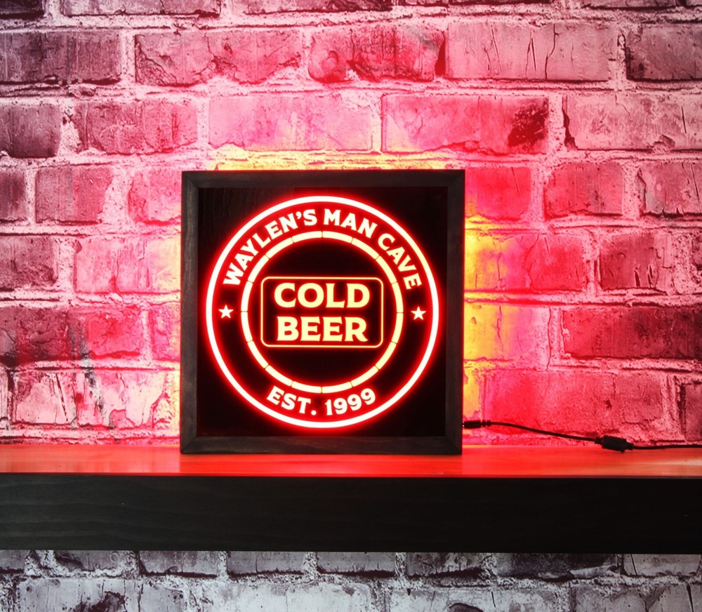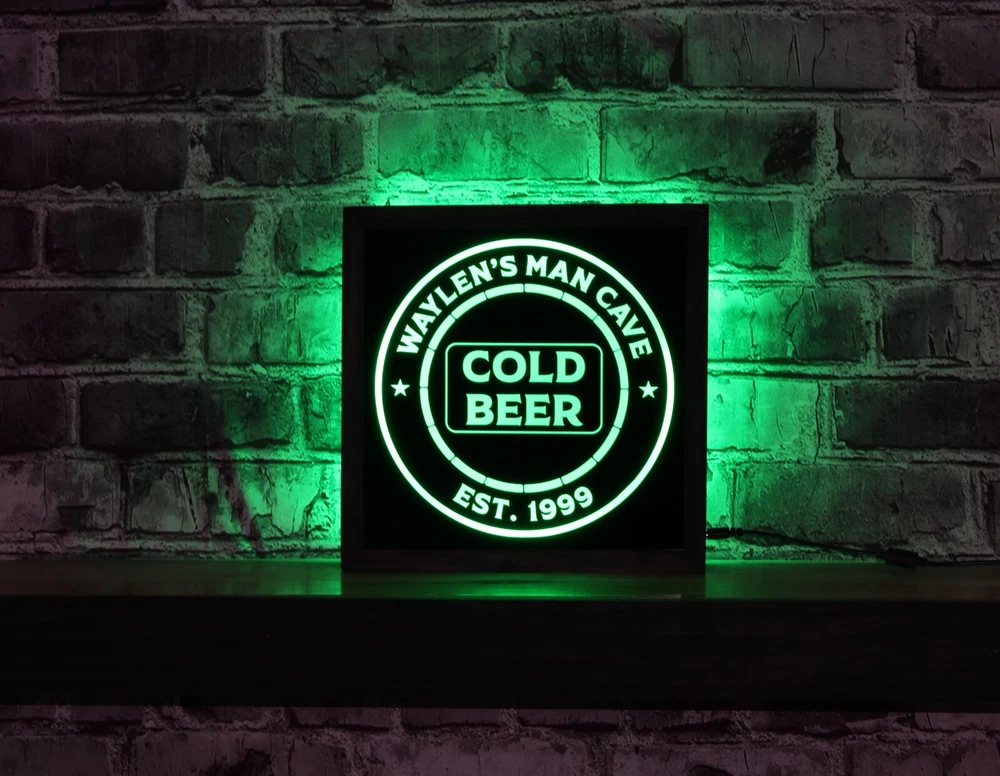 π₯ Custom LED Man Cave Sign β Cold Beer Bar Light Box! Upgrade your man cave, bar, or game room with this personalized LED light box sign featuring bright, multi-color illumination controlled by a remote. The high-quality wood-framed design adds a rustic touch, perfect for any home bar or lounge. πΉ Features & Benefits: β Personalized Top Line β Add any name to make it unique! β Multi-Color LED Lighting β Change colors with the included remote control. β Durable Wood Frame β Premium craftsmanship with a 12x12-inch frame . β Cold Beer Design β Great for bars, pubs, or man caves. β Plug-in Power β No batteries needed; just plug and play. π Perfect Gift For: βοΈ Man Cave Owners βοΈ Beer Lovers & Home Bartenders βοΈ Birthdays, Housewarming, Father's Day π‘ Custom Options Available! Message us to add your name or custom text. π¦ Fast Shipping! Order today and upgrade your space with this eye-catching LED bar sign! Package Contents: 1 x Custom Cold Beer LED Sign 1 x Power Adapter 1x Remote Track Page Views With Auctiva's FREE Counter