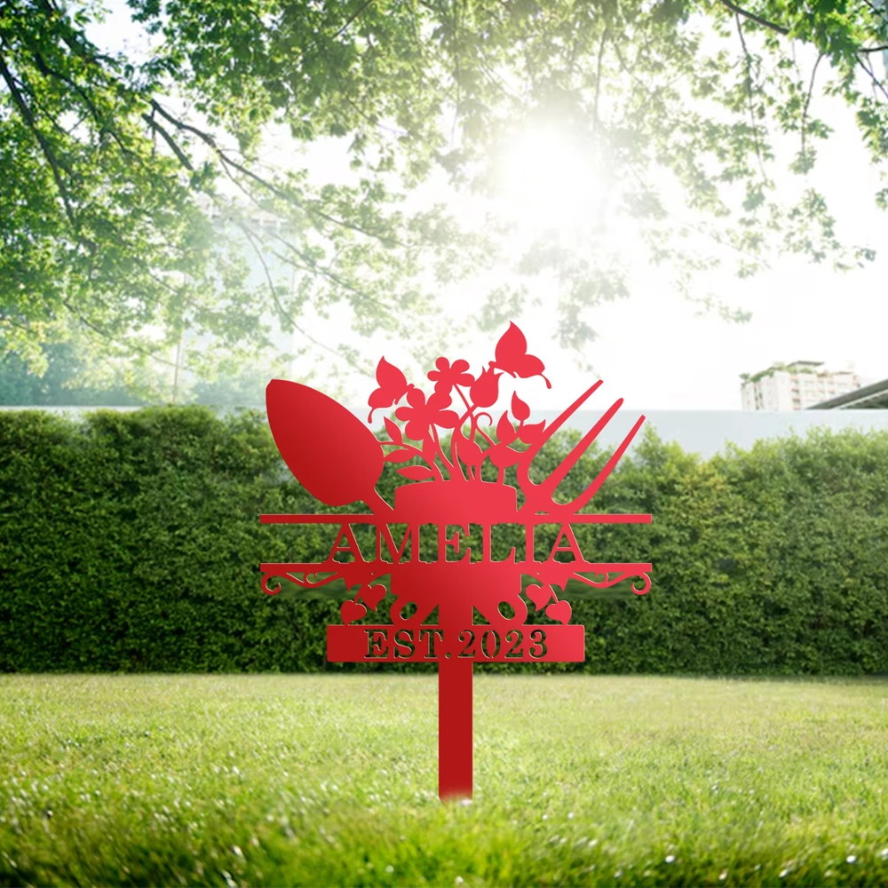 Custom Metal Garden Sign With Stakes, Sign for Flower Beds, Personalized Garden