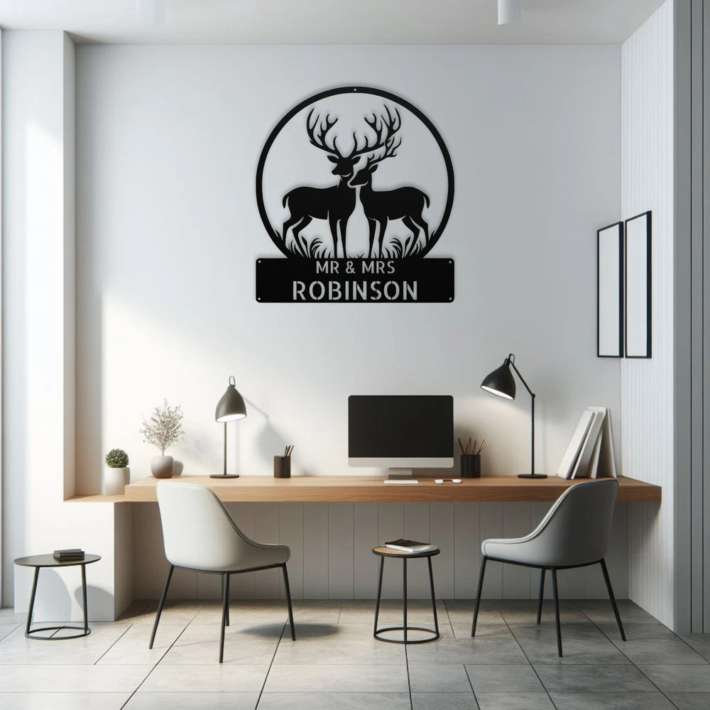 Product Description Custom Mr Mrs Deer Metal Sign Personalized Family Last Name Home Decor Art Add a rustic touch to your home with this Custom Mr. & Mrs. Deer Metal Sign ! Made from high-quality 16 gauge metal, this personalized sign is designed for both style and durability. The powder coating provides excellent protection against dust, weather, and moisture, making it suitable for indoor and outdoor use. This custom metal sign is a perfect gift for Christmas, birthdays, or any special occasion. Personalize it with your family last name for a unique piece that reflects your love for nature and family. Whether you hang it in your living room, entryway, or on your porch, this sign will make a charming statement. Key Features: Customizable Design: Personalize with your family last name for a unique touch. Durable Material: Crafted from sturdy 16 gauge metal for long-lasting appeal. Weather Resistant: The powder-coated finish protects against dust, moisture, and outdoor elements. Versatile Decor: Ideal for indoor or outdoor use, enhancing any space. Great Gift Choice: A thoughtful present for Christmas, weddings, or other special occasions. Charming Design: Features a lovely deer motif, perfect for nature lovers and families. Bring warmth and personality to your decor with this Custom Mr. & Mrs. Deer Metal Sign! Service and Color Choice Our metal signs are designed to be personalized just for you, making them the perfect addition to any space! The default color for our signs is Black , but we also offer a variety of beautiful options including Copper, Gold, White, and Silver . After placing your order, simply contact us with your preferred color choice, and we'll ensure your sign is exactly how you envision it. Let’s create something special together!