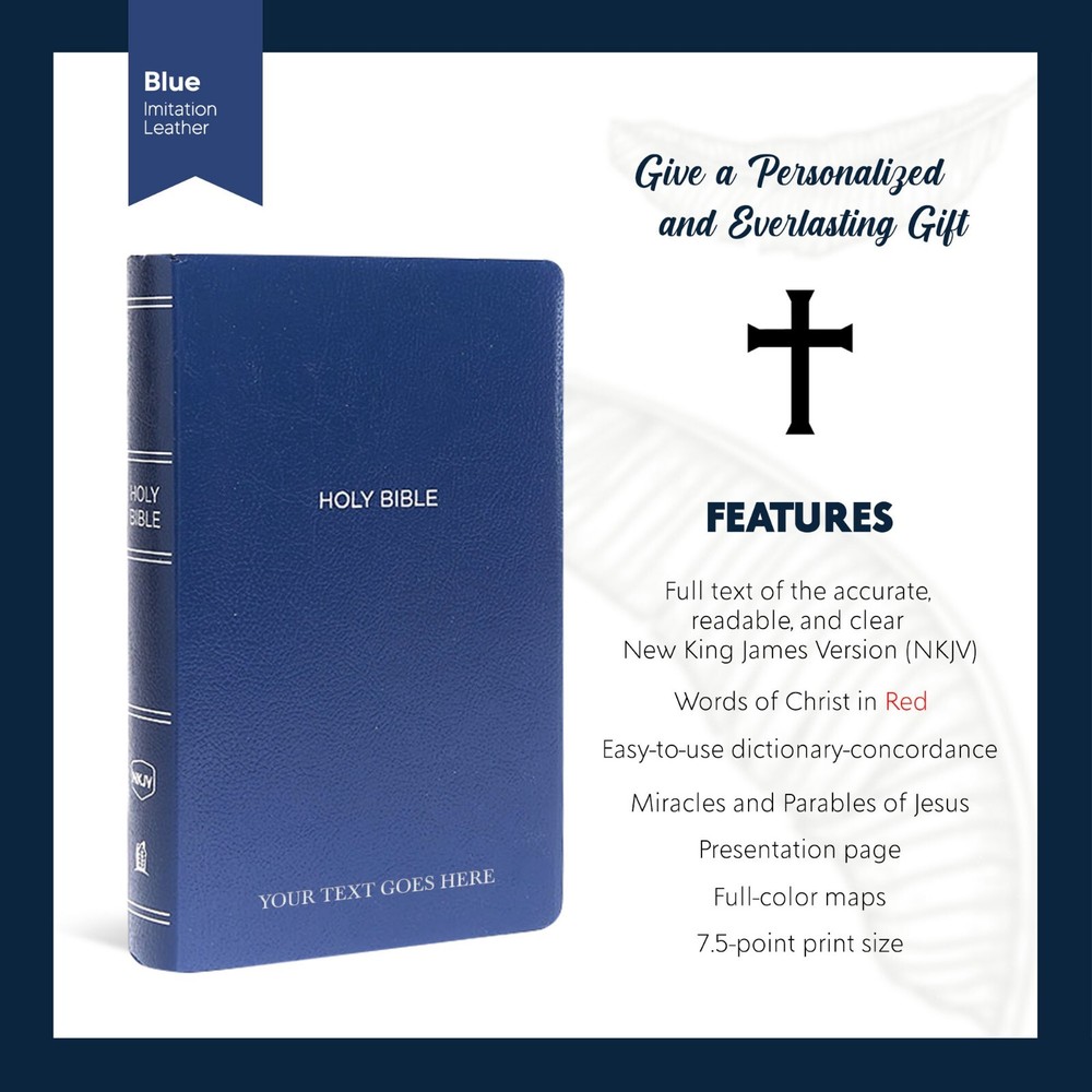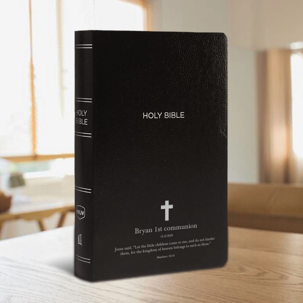 Discover the joy of owning a Bible that is uniquely yours – a testament to your faith, values, and personal journey. A personalized New King James Version (NKJV) Bible, a cherished keepsake that will illuminate your spiritual path and deepen your connection with God. The NKJV Version is renowned for its clarity, accuracy, and literary excellence, making it a preferred choice among scholars and readers worldwide. With its precise translation, this Bible brings you closer to the original Hebrew, Aramaic, and Greek texts, unlocking deeper insights and revelations. Why settle for an ordinary Bible when you can have a sacred treasure tailored specifically to you? Our personalized NKJV Bible is more than just a book; it's a testament to your unique faith, an embodiment of your spiritual identity. Whether you're seeking spiritual guidance, looking for a thoughtful gift, or desiring a cherished heirloom for generations to come, this extraordinary Bible will exceed your expectations. Take the words of Christ with you everywhere. We made sure that you will never miss out on God's wisdom. It is the perfect size for on-the-go bible. Details: Measures 8.5" x 5.4" New King James Version (NKJV) Words of Christ in Red Easy-to-use dictionary-concordance Miracles and parables of Jesus Presentation page Full color maps 7.5 point print size Ship fast from Florida Individually crafted and shipped fast from South Florida, this Bible makes for an everlasting and meaningful gift. A personalized Bible can offer a unique opportunity to grow in faith and explore the depths of one’s beliefs. It is a piece of art that will forever remind them of the joys and blessings that were bestowed upon them during that special day. The unique design and craftsmanship are sure to distinguish it from anything else and make it a treasured keepsake for years to come. The colors are vibrant, the texture is smooth, and the craftsmanship is impeccable. This special gift will provide the recipient with a lifetime of joy and memories, and will be a reminder of the faith, love, and joy of that special day.