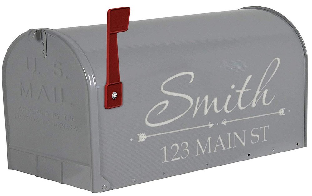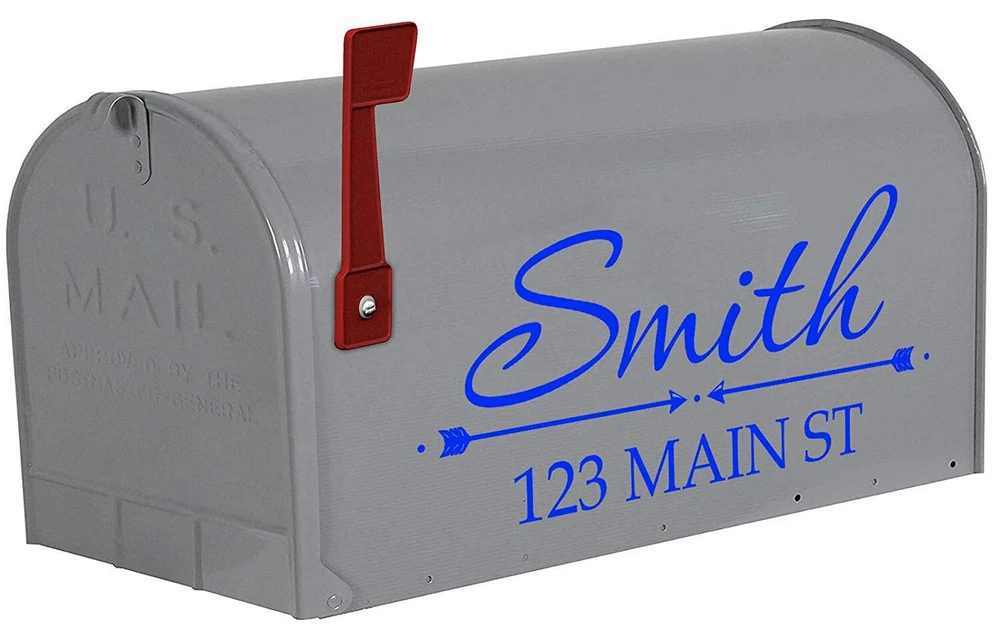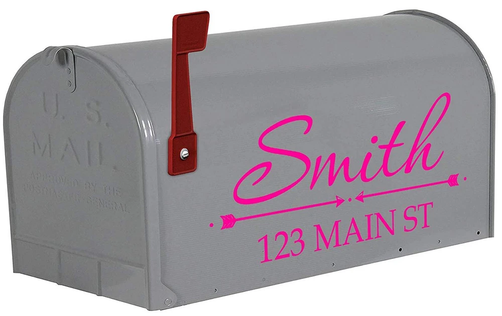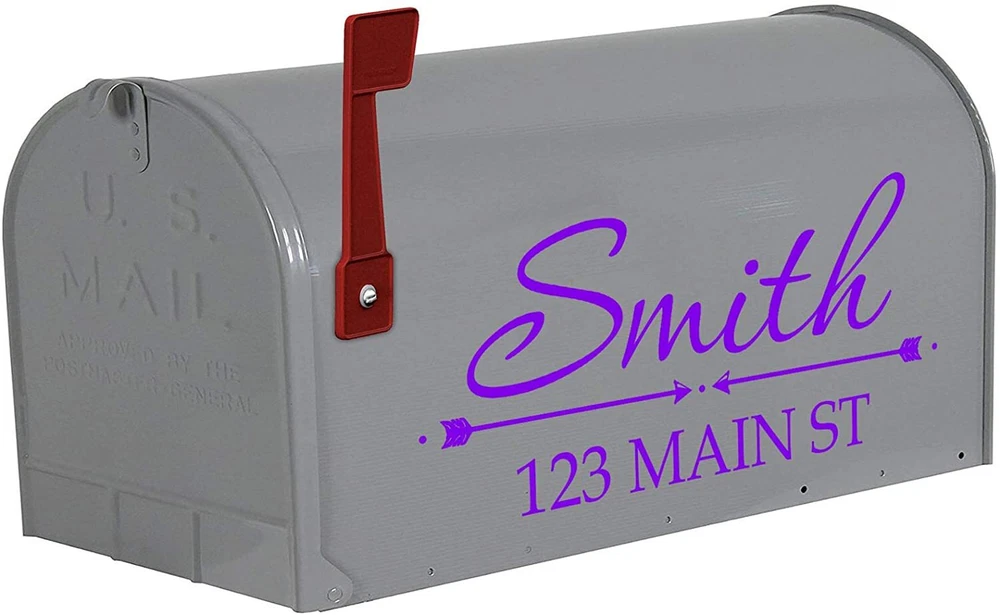 Custom Monogram Street Address Vinyl Decals. Product includes (2) Mailbox Decals, (1) for each Side of the mailbox. Choose color that best suites your mailbox. ***Mailbox Not Included*** Contains (2) address decals, (1) for each side of your mailbox Customize your name and address with choice of color Can be applied to any hard, smooth surface High grade durable outdoor vinyl rated to last for many years to come. Each Decal Measures Approximately 6"H X 13"W, although size may vary slightly based on the total number of letters, numbers or characters chosen with the customization.