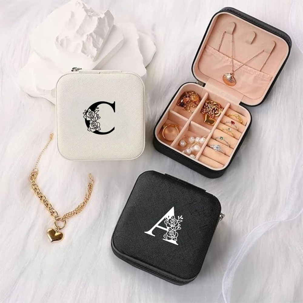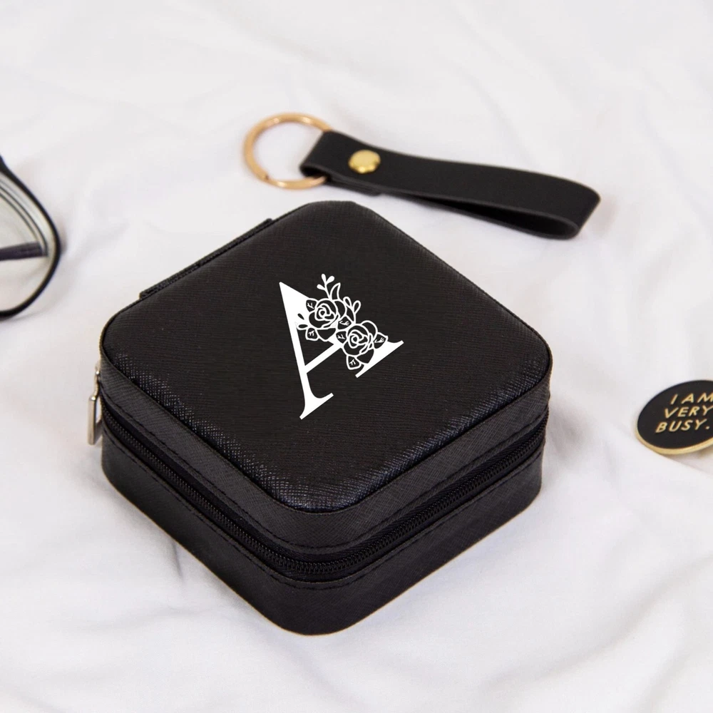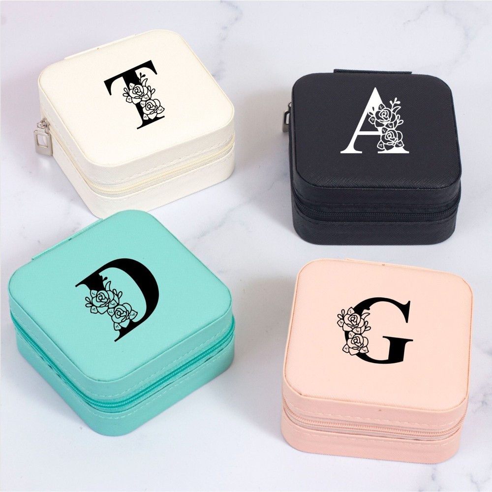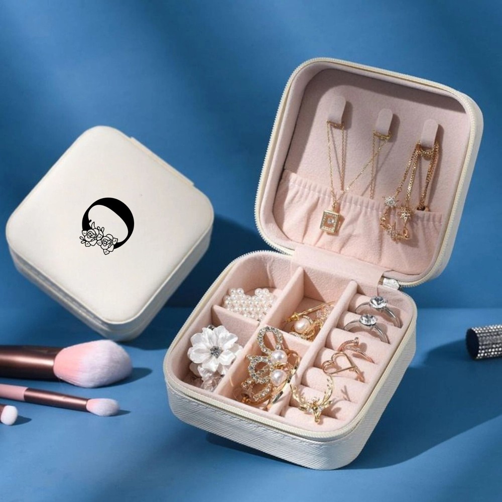 This compact multi-purpose personalized jewelry box organizer is the perfect jewelry case to keep your jewelry organized when you are jet-setting around the world. The sleek vegan leather exterior paired with a functional interior divided to store your earrings, rings, necklace, cufflinks…etc. Jewelry not included. ABOUT THE JEWELRY CASE ------------------------------------- ▪5 RING ROWS + FLEXIBILITY—This gives you the flexibility to store your rings, earrings, cufflinks, stud...etc the way you like them. ▪2 REMOVABLE DIVIDERS — Dividers can be removed to turn the slots into 4, 2 or 1 slot. ▪3 HOOKS — Hooks for bracelets, necklaces...etc ▪1 POUCH — A small pouch for your little secrets CASE DIMENSIONS ---------------------------- ▪Length: 3.9 inches ▪Width: 3.9inches ▪Height: 2inches Great for: jewelry box ring box for her cufflinks box earring box ring box cute earrings box custom jewelry box birth flower gift birth month flower birthday gift jewelry case travel jewelry box travel jewelry case bridesmaid gift bridesmaid proposal box bridesmaid gift box