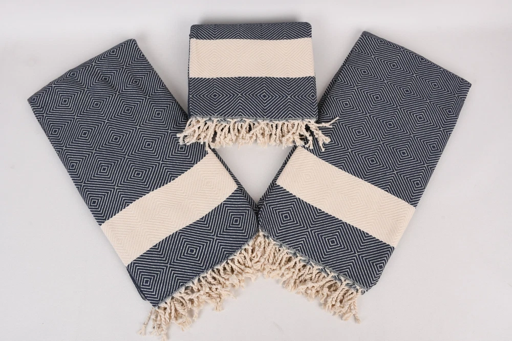 Welcome! Introducing our handwoven Turkish I weave my Turkish Towels, Organic Blankets and Turkish Hand Towels on my Hand loom, here is the Organic Turkish Towel Details, * This Organic Turkish Towel designed and made by me. * The Turkish Wedding Towel Material is 100 percent Organic Cotton with natural tassels. * The Cotton Turkish Towels can be used both sides. * Very easy to carry Travel Towels which takes less space. * The Turkish Towels Bulk Absorbs water very quickly and dry very quickly. My peshtemal Turkish towels are hand woven fabric made of organic cotton. Bridesmaid Towels can be used as Bath Towel, Beach Towels, Sauna Towel, Hammam Towel, gym - fitness Towel, and also my Soft Towels use as Yoga Towel, Pool Towel and Gift Towel. Due to my Turkish Towels colors and harmonic design, Peshtemals can be used as Scarf Towel, Pareo Towel, Wrap Towel, Tablecloth, Sofa Cover Towel, Throw Towel, Towel and many more. Turkish Towels are lightweight towels and they has very special designs, so Wholesale Towels can be very good wedding gift Towel, birthday gift Towels etc. MONOGRAM and EMBROIDERY I can embroidery names, letters or logos on your beach towels and you can use them as Wedding Gift Towel, Birthday Gift Towels, Bridesmaid Gift Towels. Please just follow the instructions on personalization part on Turkish Towel listing and please let me know, Font(dafont.com), Letters/LOGO, Thread Color and Place you want me to embroider as a note. SHIPPING I use DHL Express and Fedex to deliver and they usually deliver the packages in 3-5 days to USA, 2-3 days to Europe and 4-6 days to whole world. Please contact me if you live any problem about your package. CARE INSTRUCTIONS : Please wash Turkish Towels before first usage. You can gentle wash the Cotton Towels in the machine or hand wash and please don't use bleach or fabric softener on your Beach Towels. Bathroom Towels will be softener and more absorbent after the using and each machine wash. For any other question, Please feel free to write me about my Decorative Towels anytime you want.Your questions are welcome to me. peshtemal; - a blend of traditional Turkish craftsmanship with a touch of modern elegance. This peshtemal stands out with its lightweight feel and delicate weave. Crafted using natural cotton and employing traditional handwoven techniques, it boasts a unique combination of softness and breathability. Ideal for spa, hammam, or daily use, this peshtemal is designed to offer comfort and style. Key Features Traditional Craftsmanship: Handwoven with care using traditional Turkish techniques. Lightweight Design: It provides a light and comfortable feel. Natural Cotton: Made from high-quality natural cotton for softness and absorbency. Versatile Use: Perfect for spa, hammam, beach, or as a stylish home accessory. Indulge in the luxury of this Turkish peshtemal; - a perfect blend of tradition and contemporary design. Upgrade your daily essentials with this elegant and functional piece.