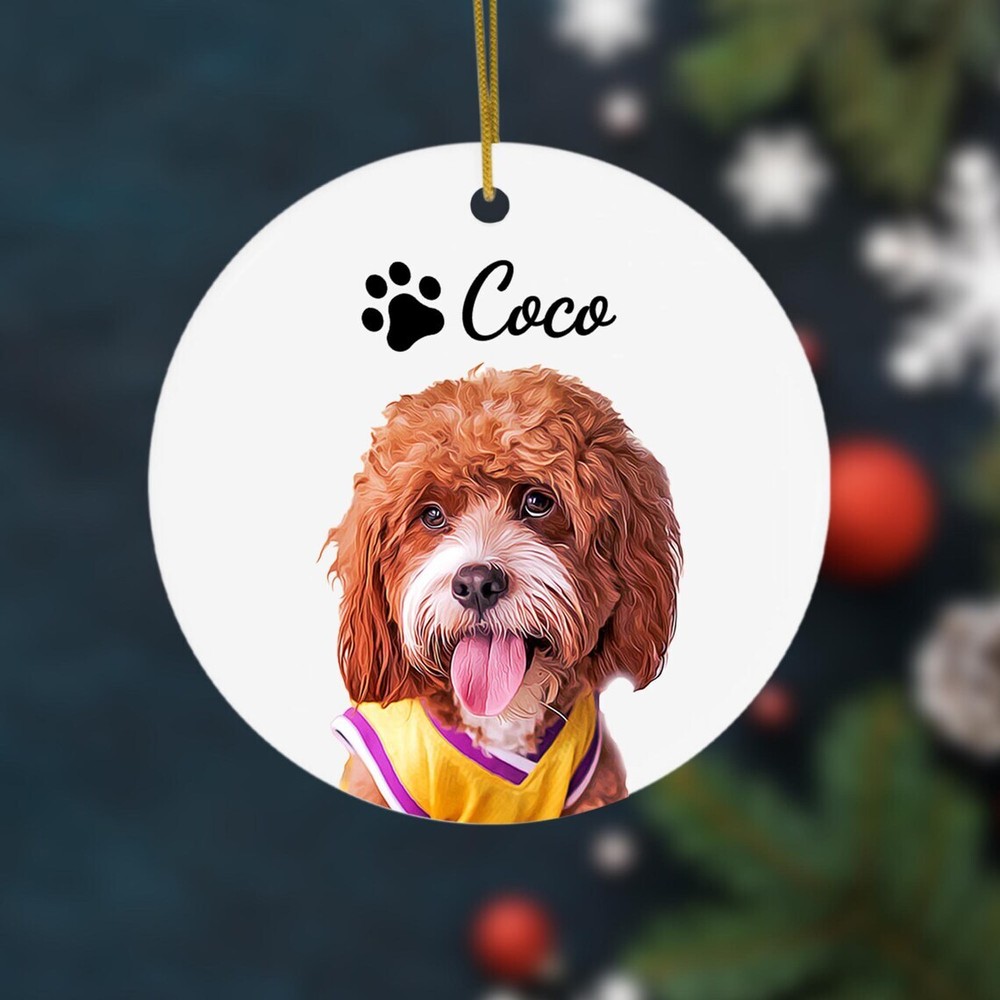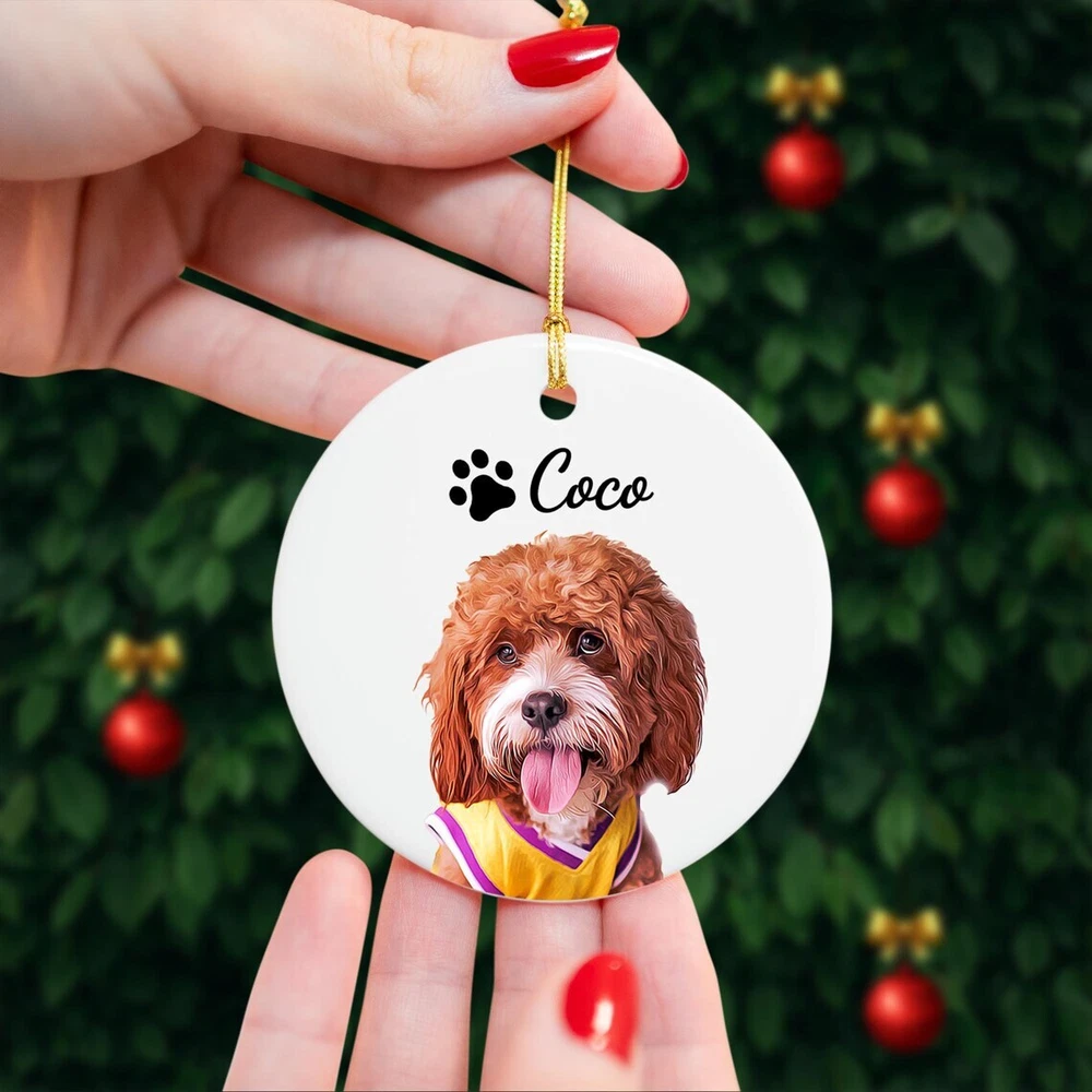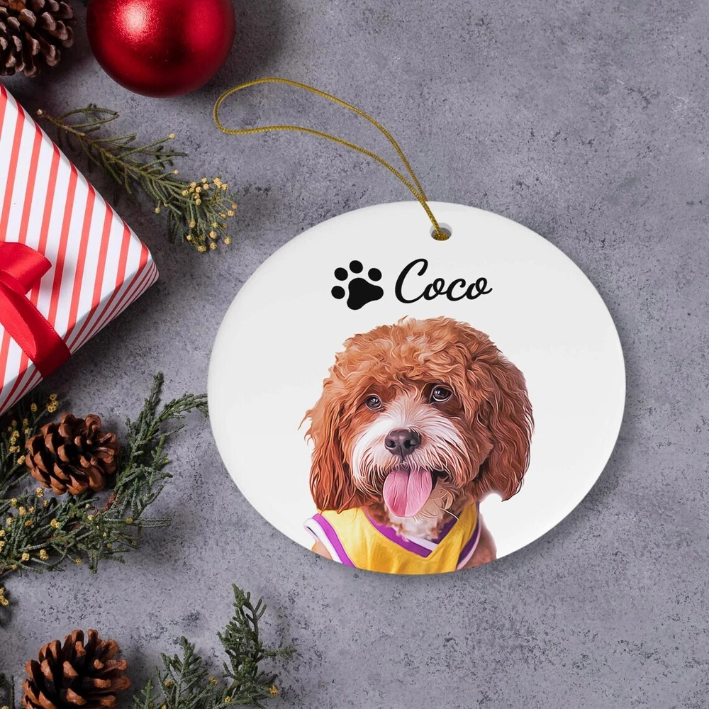 Personalized Pet Ornament Oil Paint Photo Ornament Custom Dog Christmas Gift Description Personalized Pet Ornament Oil Paint Photo Ornament Custom Dog Christmas Gift . This personalized pet unique oil paint photo ornament will be the perfect keepsake for a beloved pet, a Dog or cat. Perfect gift for a dog mom or dog dad. Personalize with the pet name. 🎀Features Ceramic ornament with glossy finish Gold String Included for hanging One-sided print 🎀Size and Thickness 2.76" width x 2.76" length 0.125" (3mm) thick high-quality ceramic (Circle Ornament) Please message me if you have any questions.