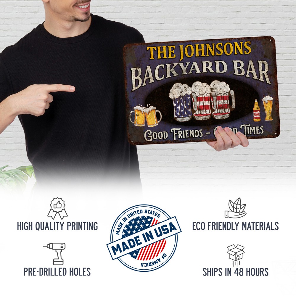 Check out our shop for more designs & styles! — https://www.ebay.com/str/chicocreeksigns Shipping: - 100% MADE IN USA - All of our products (including our custom signs) ship within 1 to 2 business days from our shop in Chico, California. No more waiting weeks for your custom order. Get it to your door fast by shopping with us. Details: - Made out of High Quality Aluminum/Aluminum Composite. - Very durable and long lasting. - Great for Indoor or Outdoor use. - Printed directly to the material with long lasting, vibrant, UV inks. - Comes ready to hang with pre-drilled holes, easy mounting. - Veteran owned business. Materials: -STANDARD options are made out of a thinner, .025" thick aluminum. -PREMIUM options are crafted from 100% recycled Aluminum Composite panels that are .125" thick. Aluminum composite panel is comprised of a reinforced synthetic core sandwiched between two sheets of aluminum. The benefits of this material is that it's more rigid yet lightweight making it easy to hang and it's 100% recycled. Sizes - 8" x 12" - (Standard) .025" Aluminum - 8" x 12" - (Premium) .125" Aluminum Composite - 12" x 18" - (Premium) .125" Aluminum Composite - 16" x 24" - (Premium) .125" Aluminum Composite Personalization (if it applies): Enter all of the text you want on the sign into the personalization box. We will copy and paste the text and not add ANYTHING that is not in the box. If you want an " 's " at the end of a name please include it and please double check your spelling. Wholesale: We do offer wholesale discounts for qualified purchases. For inquiries just message us and our team will be happy to answer any questions regarding our wholesale program. Welcome to Chico Creek Signs! Discover our wide range of Custom Wood Signs and Metal signs, perfect for every room in your home. From your Living Room to your Home Bar, Garage to the Kitchen, Man Cave to your She Shed, we have a custom sign for whatever room you're looking for. Whether you're looking for personalized gifts, holiday and seasonal decorations, or all-original customized art, we have you covered for any occasion. From Father's Day and Mother's Day to Christmas gifts, we've got something for those hard-to-shop-for people in your life. And don't forget to explore our signs that are perfect for your outdoor living spaces too! Each sign is meticulously handcrafted with top-quality materials right here in the USA. Be sure to check out the product details in each listing for more information. Gift for Dad, Gift for Him, Gift for Husband, Gift for Men, Beer Themed Gift, Beer Gift, Garage Decor, Home Bar Decor, Beer Sign, Beer Bar, Bar Sign, Home Bar Sign, Pub Sign, Tavern Sign, Man Cave Gift, Man Cave Decor, Rustic Gift, Bar & Grill, Bar and Grill, Bar and Grill Sign, Fathers Day Gift, Backyard Bar, Backyard Bar Sign, Backyard Bar Decor, BBQ, Barbecue