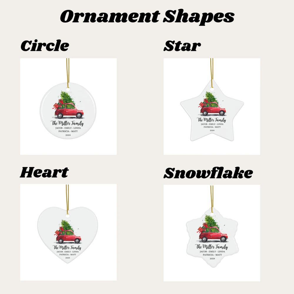 Capture the joy of spending Christmas with family with this heartwarming ceramic Christmas ornament featuring a festive red car loaded with gifts and a beautifully decorated Christmas tree on top! P erfect for celebrating the spirit of togetherness, this charming family holiday ornament brings nostalgic charm to your Christmas tree. Handcrafted with love, our miniature car ornament symbolizes the magic of a family road trip or the excitement of bringing home the holiday tree. Whether you call it a family car decoration, a holiday car ornament, or a Christmas keepsake, this unique piece celebrates the joy of family traditions and holiday cheer. This family-themed ornament makes an ideal holiday gift for loved ones or a treasured keepsake to remember special moments. It’s perfect for kids and adults alike who cherish the beauty of family gatherings and the fun of holiday adventures. Perfect as a stocking stuffer, a thoughtful Christmas gift for families, or a unique addition to your holiday decorations, this red car ornament is designed to create lasting memories and bring warmth to your home for years to come. Let this sweet holiday car with its load of festive treasures be a joyful reminder of the season’s most precious moments! We create personalized ceramic ornaments for every occasion! Each ornament is carefully handcrafted and includes a ribbon (style may vary). Using high-quality ceramic materials, our shop ensures your custom ornaments are built to last. We’re committed to capturing your most cherished moments in every piece we create.