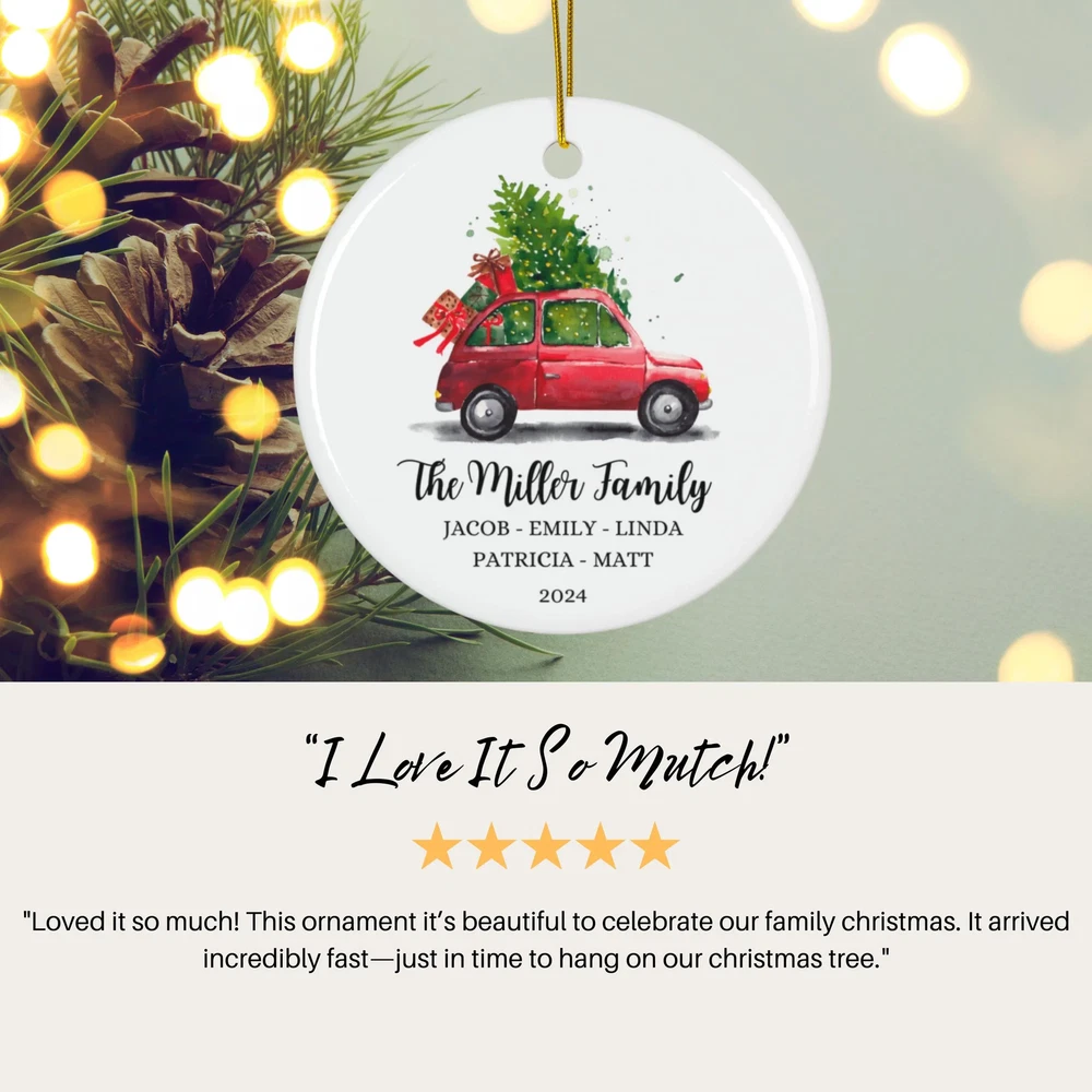This adorable personalized ornament is such a sweet way to celebrate family memories! The festive car design with gifts and a tiny tree is so charming—it instantly brings holiday cheer. The ceramic craftsmanship is lovely, and the personalization makes it extra special. Perfect for gifting or adding a sentimental touch to your own tree. It’s a heartwarming keepsake that captures the magic of togetherness during the holidays. Absolutely love it!