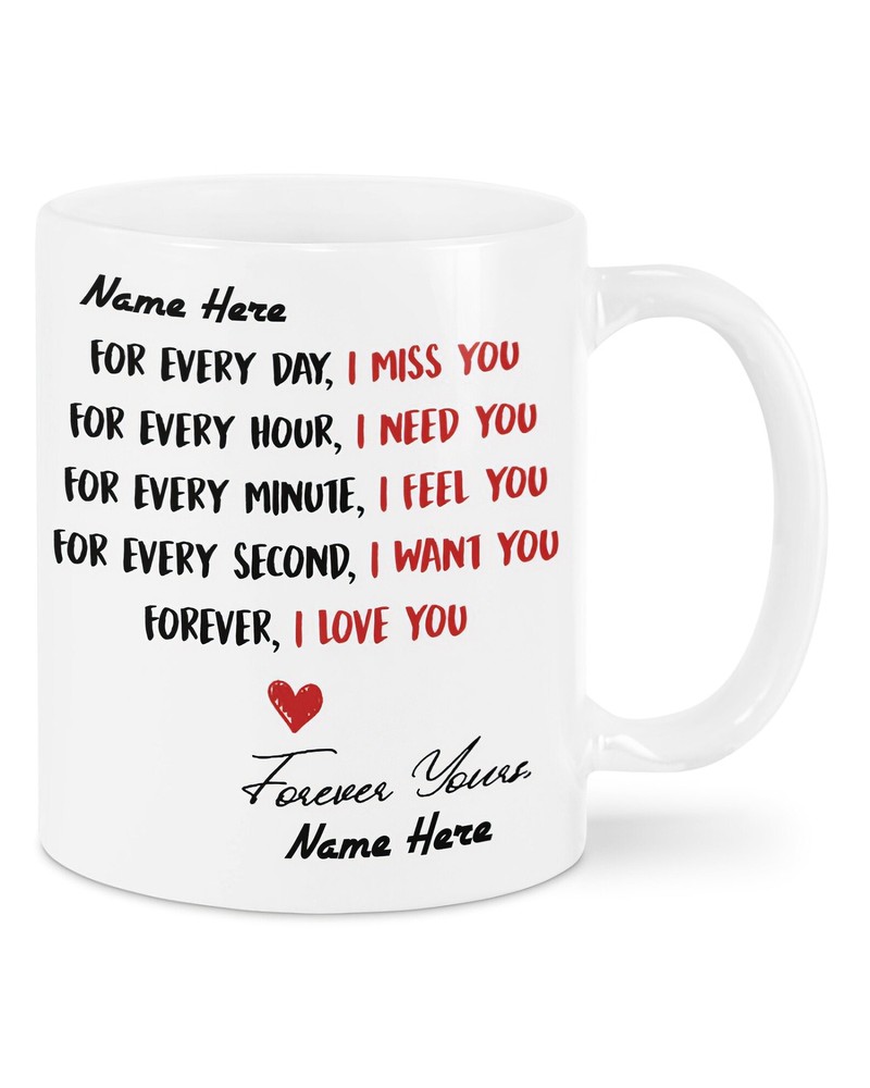 Custom For Every Day I Miss You Mug Coffee Mug Personalize Valentines Day Mug Product Details.. This high quality 11oz. ceramic white mug has a premium hard coat that provides crisp and vibrant color reproduction sure to last for years. Perfect for all hot & cold beverages. The highest quality printing possible is used. It will never fade no matter how many times you wash it. Material: 100% Ceramic. Print both sides. Dishwasher and Microwave Safe. High Gloss + Premium White Finish. Printed in the U.S.A. Personalized & Custom. We support personalized and custom mug to add custom, when placing an order, you can add notes to the "order note" in shipping address section. Also you can contact us directly via message. Shipping Info. Ready to ship in 1 to 2 business days, All products are made-to-order and proudly printed in the United States. Shipped by USPS and DHL, You will receive your order in 5-7 days. Replace & Refund. All products are defective during shipping broken, chipped will be replaced free of charge. You are not satisfied with the product, we will refund 100% money to you. If any other issues arise, please do not hesitate to message, we would be more than happy to assist you.
