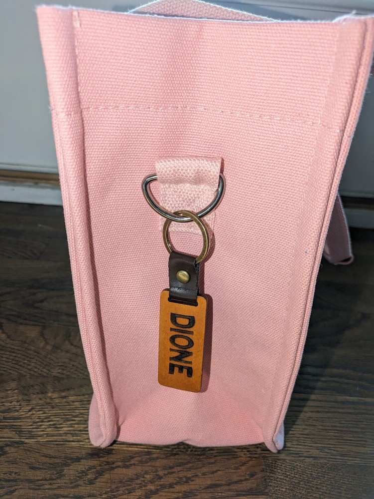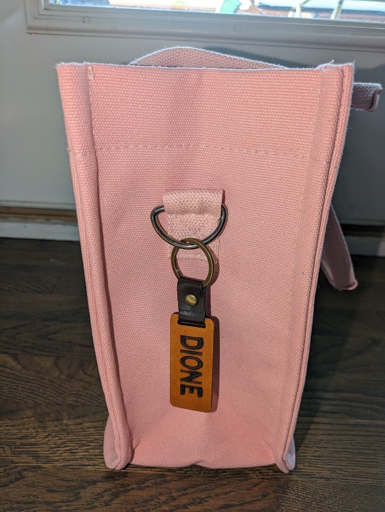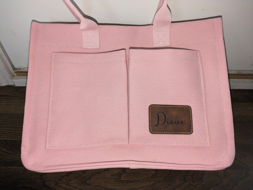 Comes with personalized leather tag and personalized keychain. Please inbox with name you want applied. This personalized tote bag is the perfect accessory for any stylish woman. With a custom printed design and made from eco-friendly materials, this reusable bag is both fashionable and practical. The bag features a spacious 25 L interior and is made from durable cotton canvas fabric. The exterior of the bag is a beautiful multicolor pattern that is sure to turn heads. The bag also comes with personalization instructions, allowing you to enter your custom text, font name, and font color. Font colors are available in the photo gallery. Thank you for your purchase and enjoy using this unique and stylish tote bag!