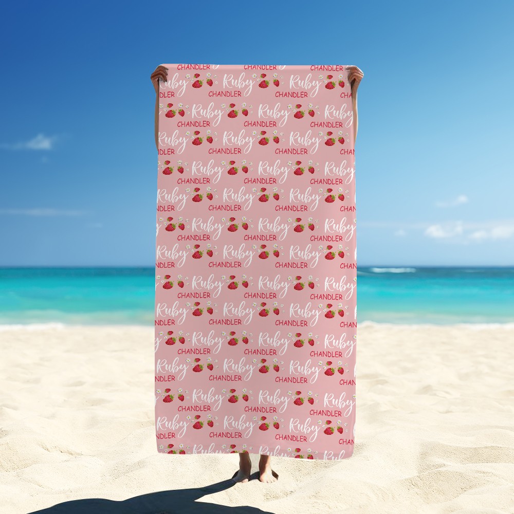 This beach towel is a summer must-have—super soft, ultra-absorbent, and personalized with a cute strawberry design and your child’s name! The thick, plush material feels luxurious, while the vibrant print stays sharp. Perfect for pool days, beach trips, or even as a cozy post-bath wrap. Kids will love having their own special towel, and parents will appreciate the durable quality. A fun, practical gift that brings smiles all season long!