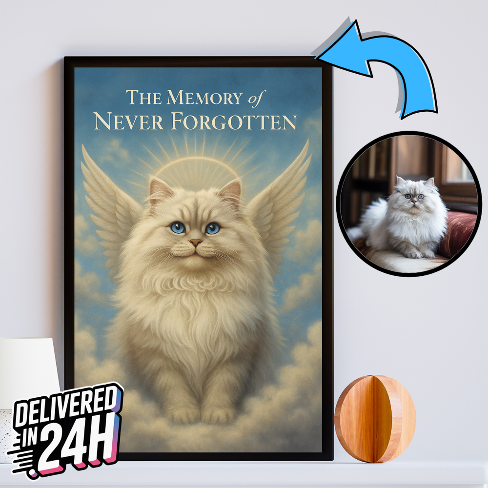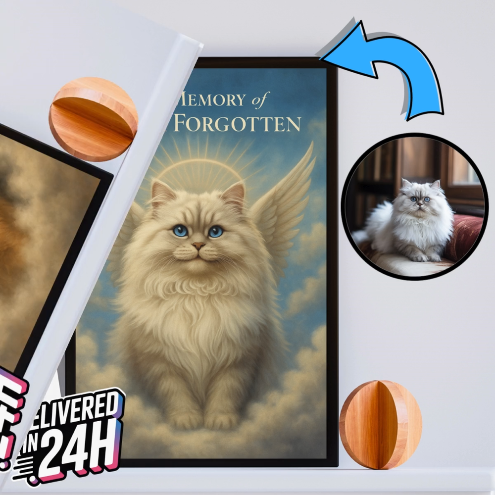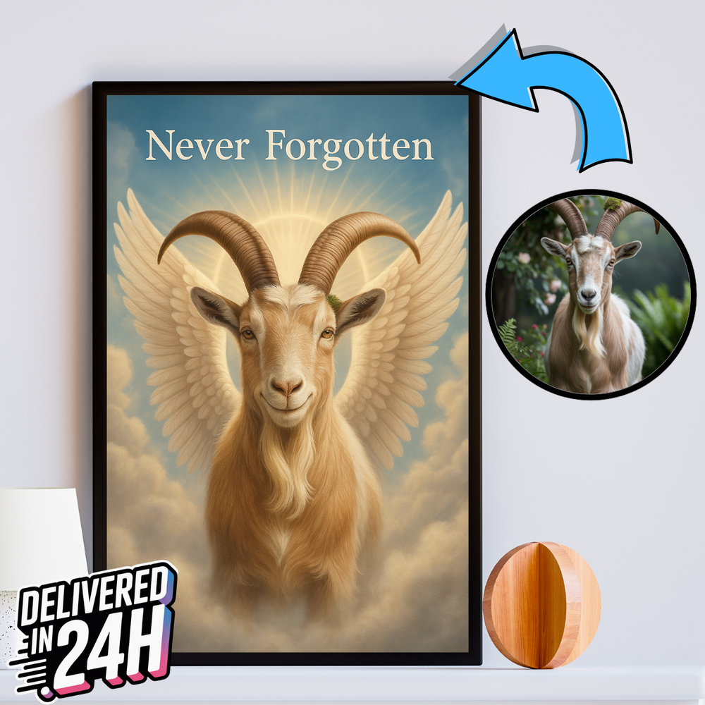 This personalized pet memorial portrait is such a touching way to honor a beloved furry friend. The digital file arrives quickly, and the AI does an amazing job adding angel wings and a halo to your petβs photoβit looks so natural and heartfelt. Perfect for printing and framing, itβs a beautiful keepsake that keeps their memory alive. Highly recommend for anyone grieving a pet loss.