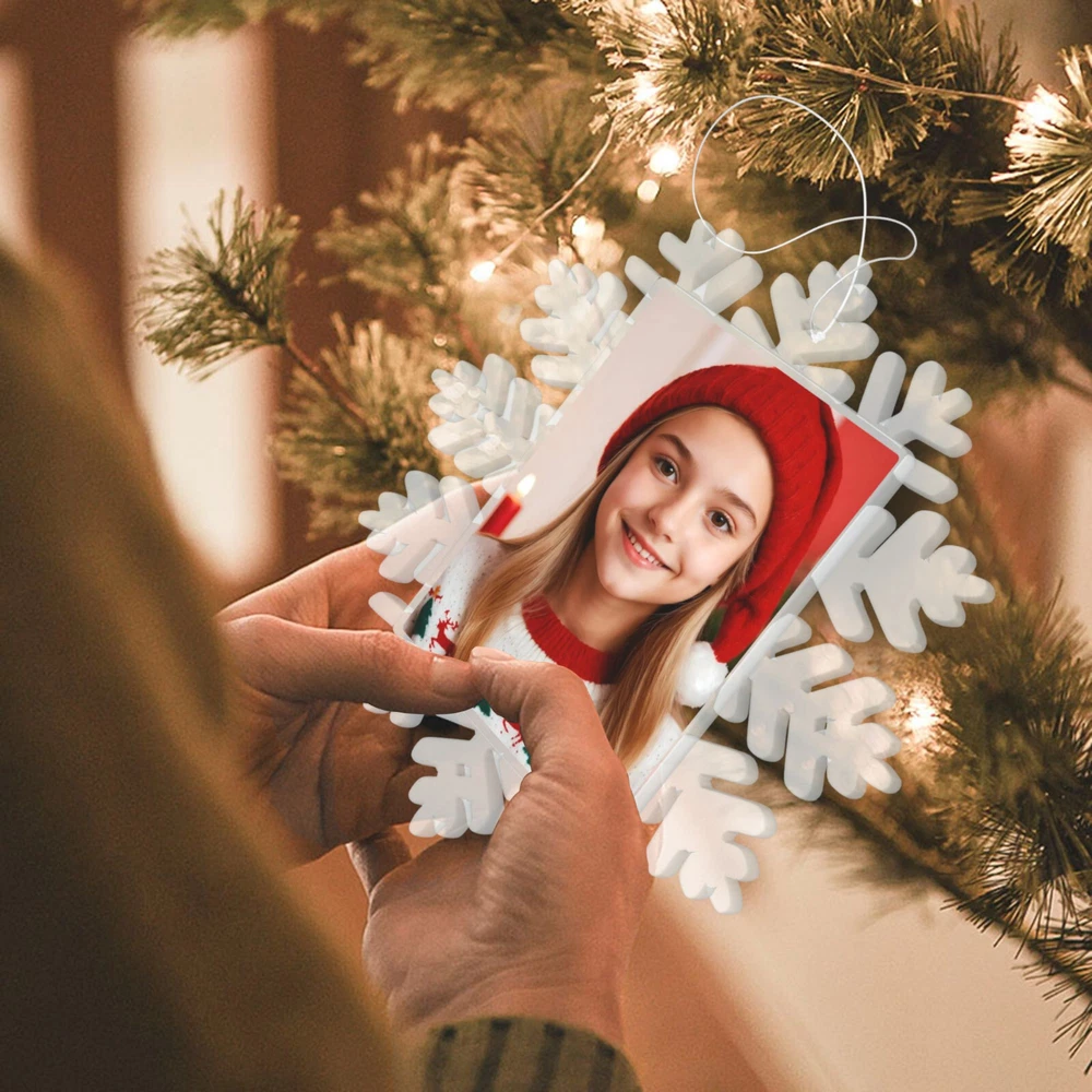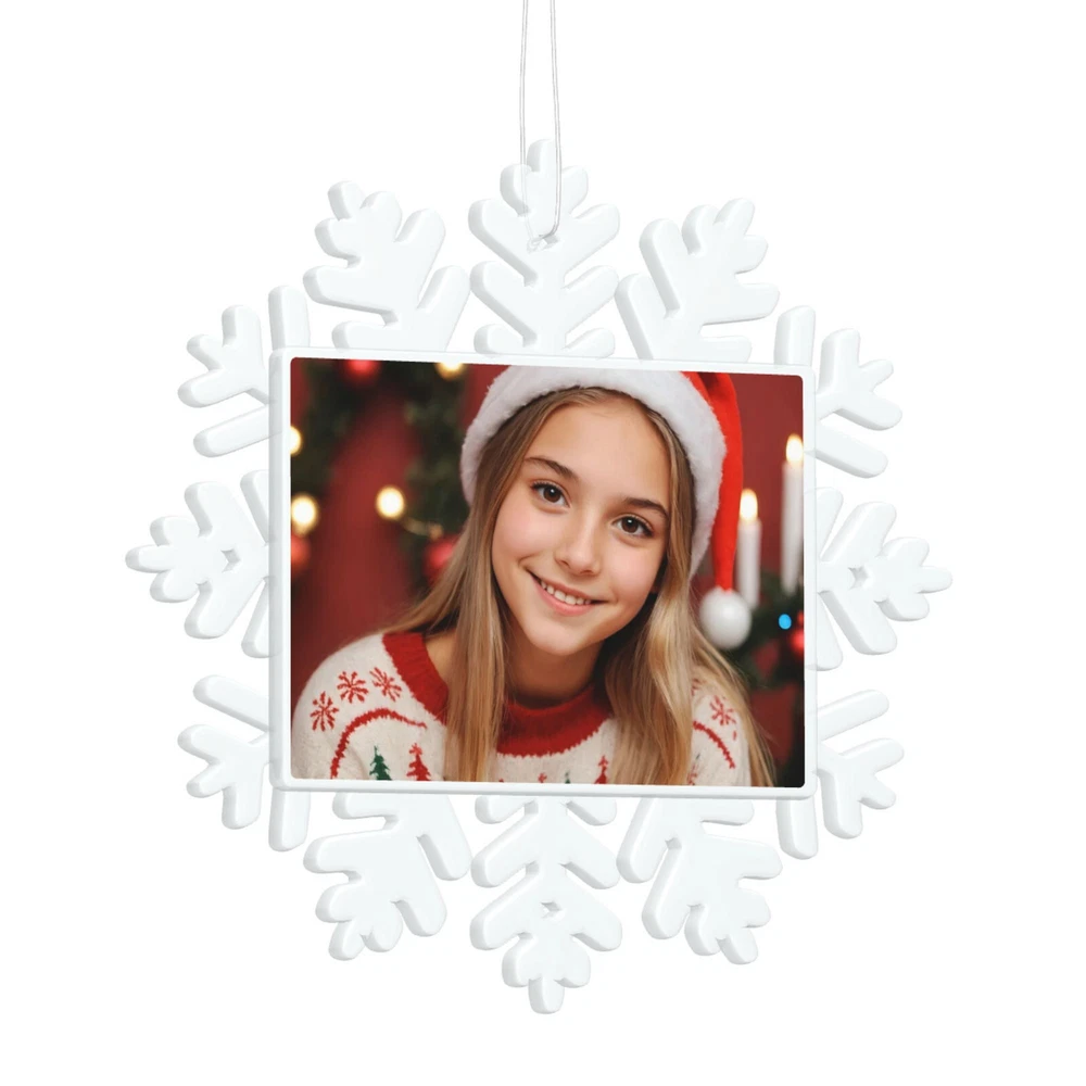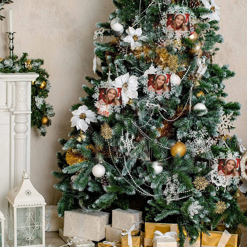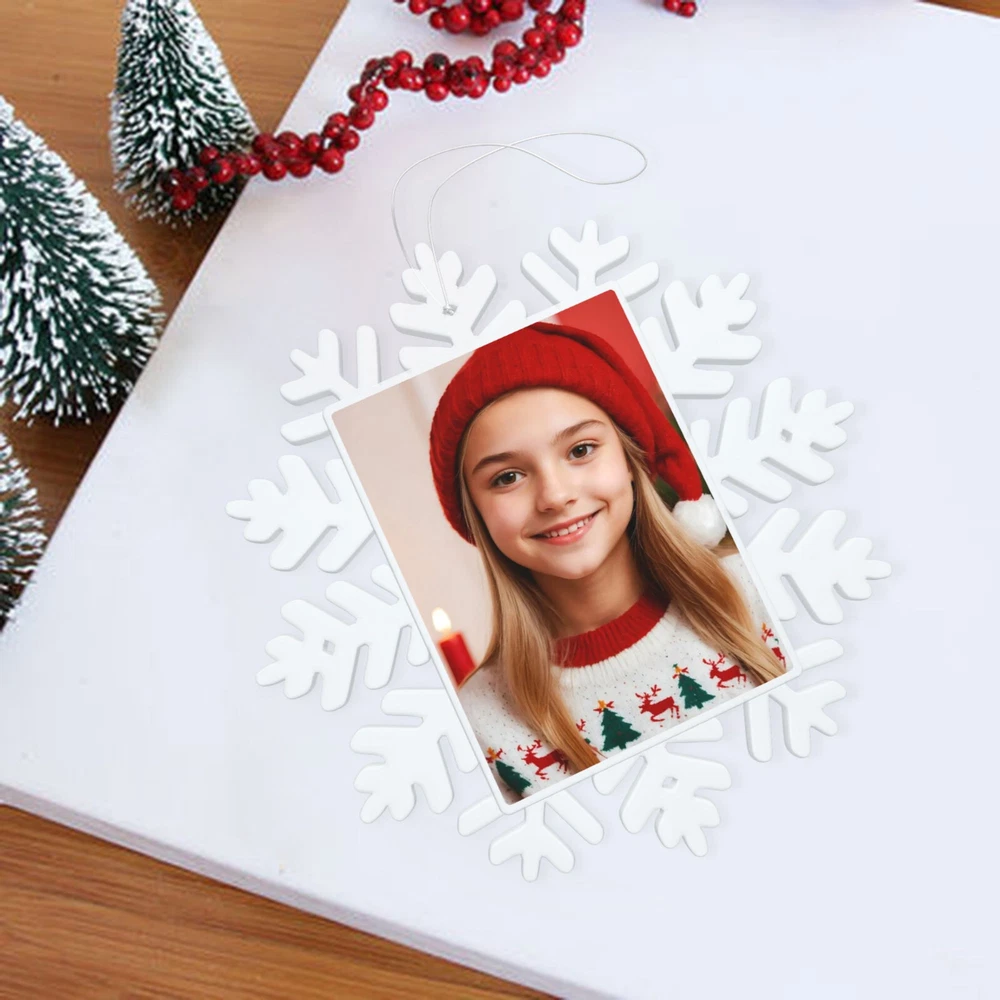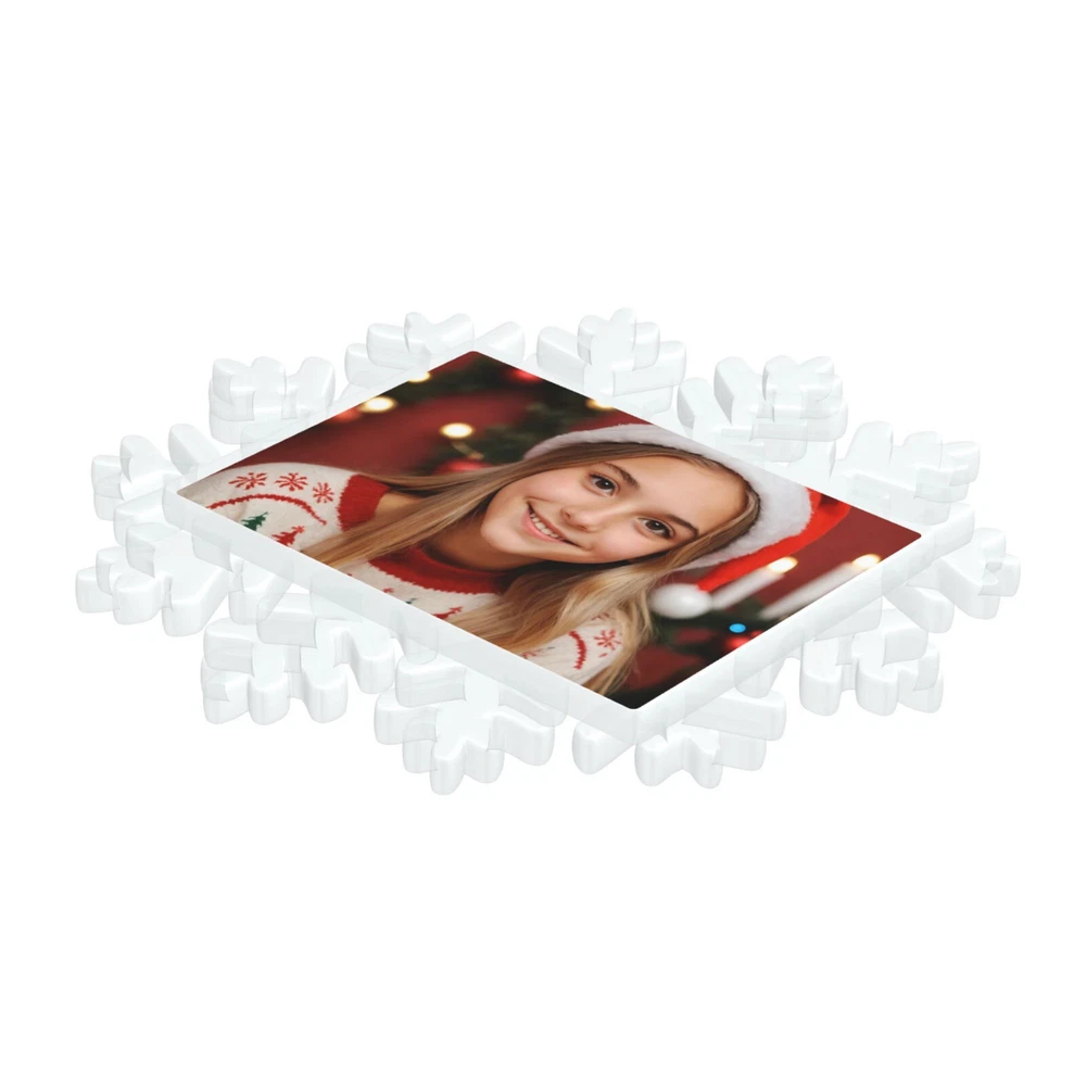 How to customize the Christmas ornament: Step 1: Please click "Buy It Now" or "Add to cart", and complete the payment. Step 2: Please send your custom photo via "eBay message". Make your Christmas tree uniquely memorable with our beautiful personalized photo ornament. Crafted in a stunning snowflake shape, this ornament features an elegant cut-out snowflake design around the edges, framing your cherished photo in the center. The clear plastic material and intricate snowflake cutouts create a magical winter wonderland effect, making your special memories shine. Whether it's a family portrait, a baby's first Christmas, or a special moment you want to remember, this ornament will become a treasured keepsake that brings joy year after year. This custom photo ornament also makes a thoughtful and heartwarming Christmas gift for family and friends, sure to surprise them and add a special touch to their holiday decorations. Premium Material: Made from a combination of durable transparent plastic and a sturdy aluminum insert, this ornament ensures longevity and a modern, sleek look for your Christmas tree décor. Perfect Size: Measuring 5.5 inches by 5.5 inches, it's large enough to showcase your favorite photo while still fitting perfectly on your tree. Elegant Design: The intricate snowflake shape, paired with a silver hanging ribbon, adds a touch of festive elegance to any holiday setting. Crystal Clear Printing: High-resolution photo printing ensures sharp, vivid image quality.