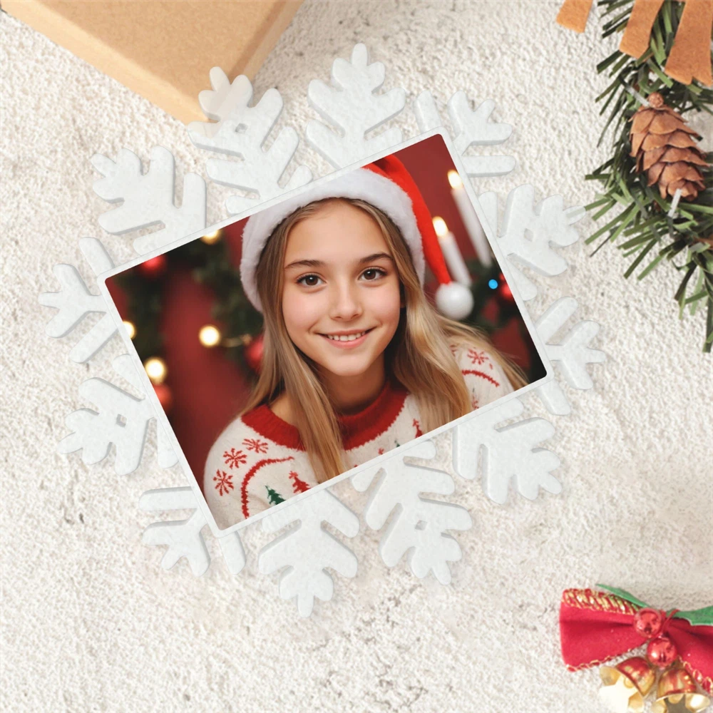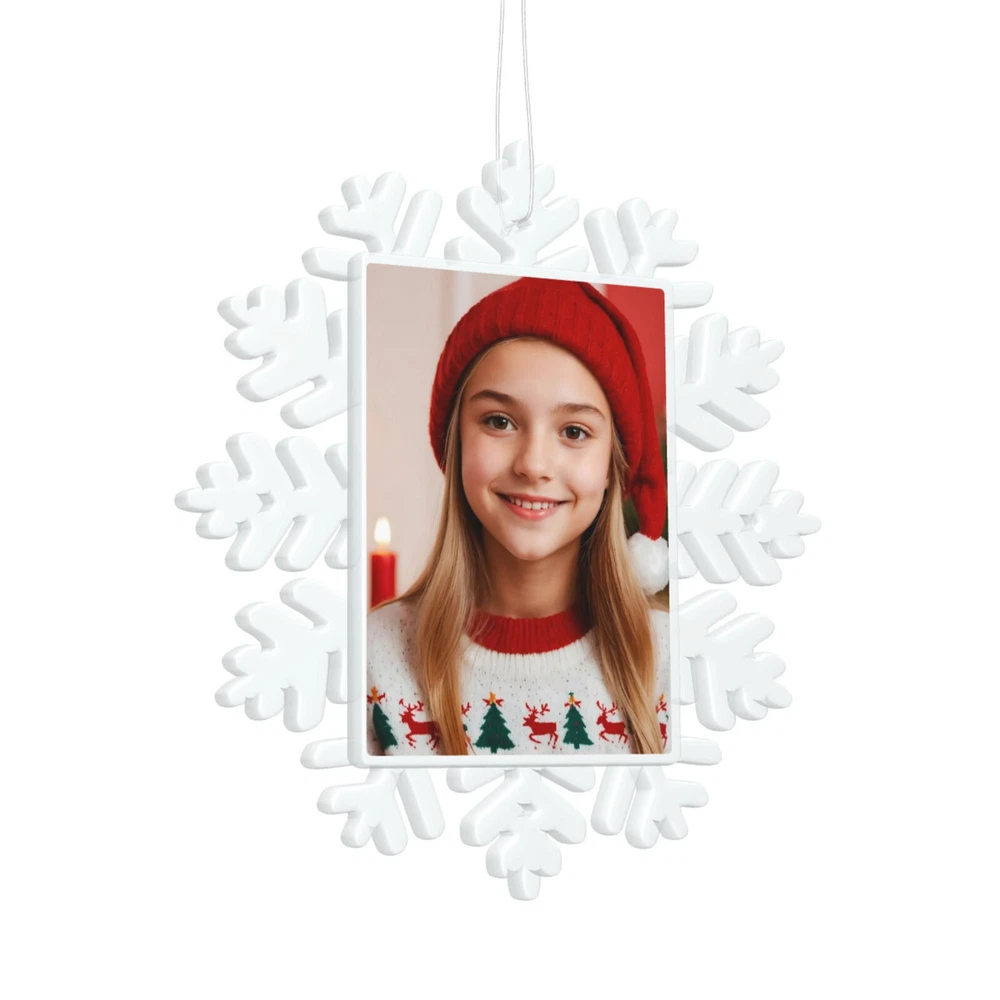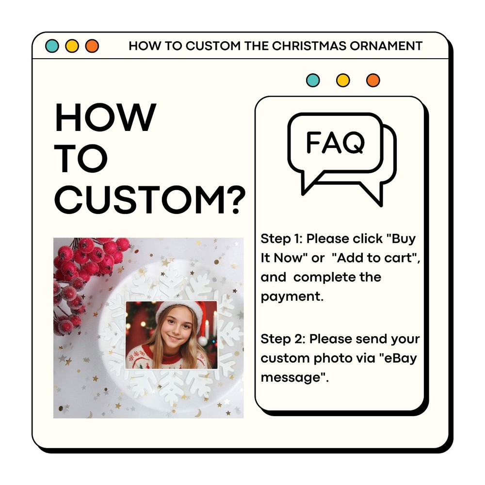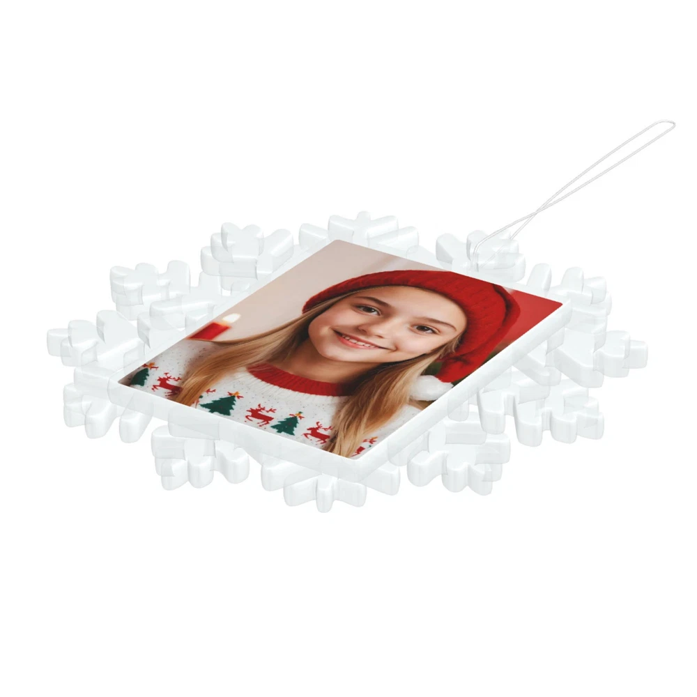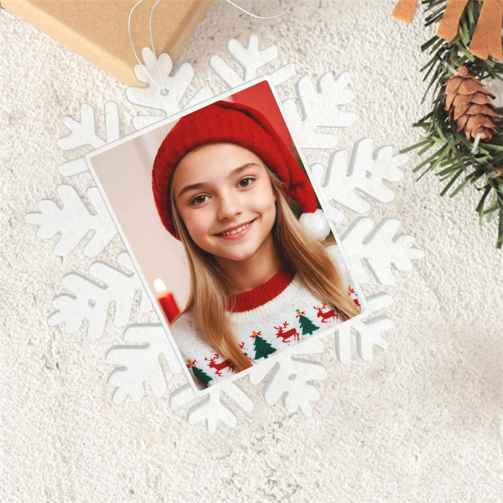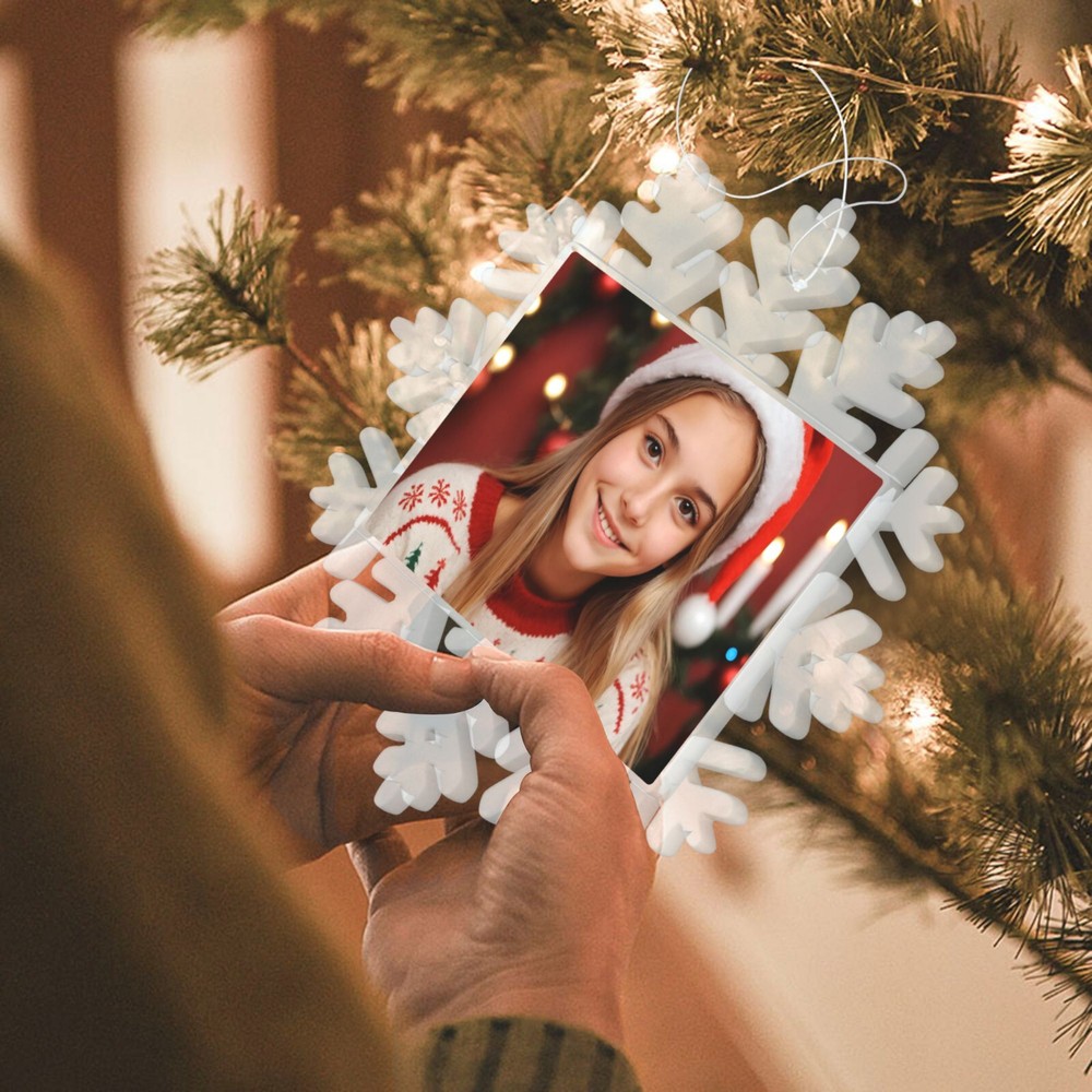 How to customize the Christmas ornament: Step 1: Please click "Buy It Now" or "Add to cart", and complete the payment. Step 2: Please send your custom photo via "eBay message". Make your Christmas tree uniquely memorable with our beautiful personalized photo ornament. Crafted in a stunning snowflake shape, this ornament features an elegant cut-out snowflake design around the edges, framing your cherished photo in the center. The clear plastic material and intricate snowflake cutouts create a magical winter wonderland effect, making your special memories shine. Whether it's a family portrait, a baby's first Christmas, or a special moment you want to remember, this ornament will become a treasured keepsake that brings joy year after year. This custom photo ornament also makes a thoughtful and heartwarming Christmas gift for family and friends, sure to surprise them and add a special touch to their holiday decorations. Premium Material: Made from a combination of durable transparent plastic and a sturdy aluminum insert, this ornament ensures longevity and a modern, sleek look for your Christmas tree décor. Perfect Size: Measuring 5.5 inches by 5.5 inches, it's large enough to showcase your favorite photo while still fitting perfectly on your tree. Elegant Design: The intricate snowflake shape, paired with a silver hanging ribbon, adds a touch of festive elegance to any holiday setting. Crystal Clear Printing: High-resolution photo printing ensures sharp, vivid image quality.