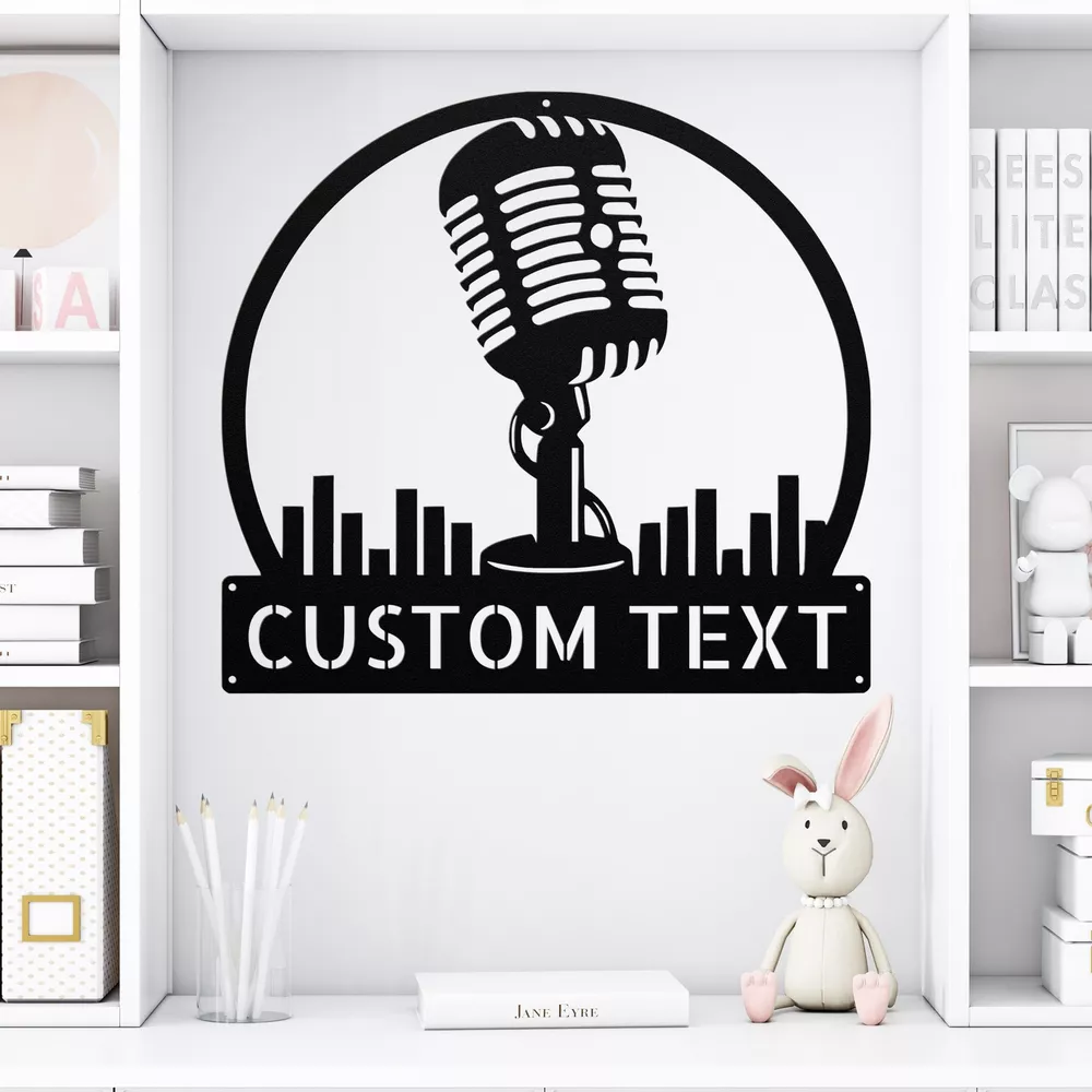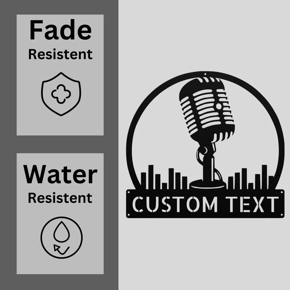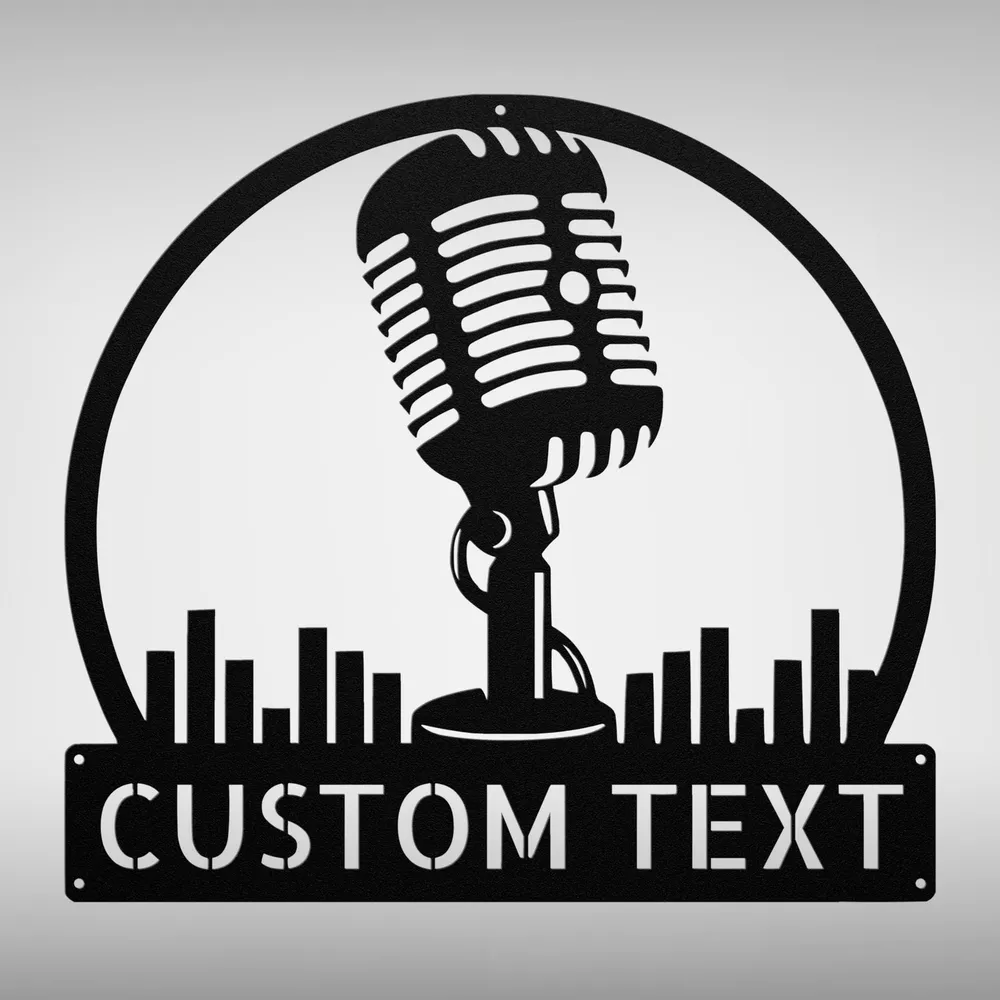Product Description Custom Podcast Metal Wall Art Sign Personalized Home Decor Podcaster Gifts Showcase your passion for podcasting with the Custom Podcast Metal Sign . Crafted from high-quality 16 gauge metal, this sign is designed to withstand the test of time. Its durable powder coating ensures it is dust, weather, and water-resistant, making it perfect for any setting—indoor or outdoor. This sign can be customized to reflect your unique podcast style. Whether you want to add your podcast name, logo, or a favorite tagline, it will make a fantastic addition to your home studio, office, or any podcasting space. It’s also a thoughtful gift for podcast enthusiasts, making it perfect for Christmas, birthdays, or any special occasion. Key Features: Personalization Available: Customize with your podcast name or logo. Durable Material: Made from 16 gauge high-quality metal for lasting use. Weather-Resistant: Powder-coated finish protects against dust and outdoor elements. Versatile Decor: Ideal for home studios, offices, or as a unique display. Perfect Gift: Great for podcast lovers for any occasion. Celebrate your podcasting journey with the Custom Podcast Metal Sign —a unique piece that reflects your passion! Service and Color Choice Our metal signs are designed to be personalized just for you, making them the perfect addition to any space! The default color for our signs is Black , but we also offer a variety of beautiful options including Copper, Gold, White, and Silver . After placing your order, simply contact us with your preferred color choice, and we'll ensure your sign is exactly how you envision it. Let’s create something special together!