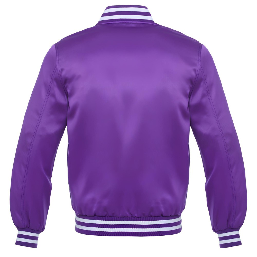 VARSITY/BASEBALL JACKET Purple Satin - Baseball Jacket Varsity Jacket Letterman Jacket – Available in All Sizes We customize jackets with embroidery and patches to reflect your individual style and needs, ensuring a design that perfectly aligns with your vision. Product Description : This listing is for a beautiful well made Authentic Letterman Jacket Comes with Satin Specification : The Elite Varsity Jacket features a luxurious satin body paired with sleek satin sleeves, delivering a timeless design with unmatched comfort and sophistication. Varsity Jacket with 2 Front Side Pockets and 1 Interior Pocket Polyester Quilted Padded Lining for Superior Warmth and Insulation Soft-Shell Rib Knit Cuffs, Collar, and Bottom for Skin Protection Available in Black, Pink, Green, Blue, Purple, Red, White, Gray, Brown, Dark Blue & Yellow colors. Available in Men's, Women's, and Kids' Sizes. We are certain that the outstanding quality and flawless design of our products will surpass your expectations.
