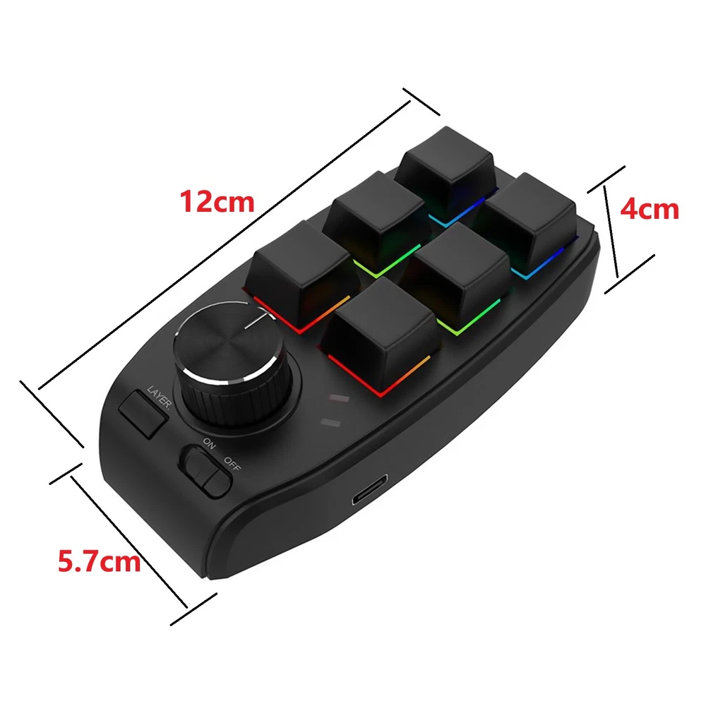 You may also like 8 IN 1 Metal Craft Chinese Ring Puzzle IQ Brain Teaser Kid Adult Educational Toy 10.99 USD 4Pack Durable Fuel Line Tube Hose For Husqvarna 61 66 162 181 266 268 272 281 9.99 USD Pneumatic Foot Pedal Valve FV-320 Momentary 3 Way 2 Position 1/4"PT Threaded 23.99 USD 5V 4-Pin Sunglasses USB Charger Charging Cable For Bose Frames Alto/Rondo/Tenor 11.99 USD 10x Hall Effect Joystick 3D Analog Stick Module For PS5 Dualsense Controller 17.59 USD 3.69 USD 10Pack Plastic+HSS 360° Deburring Tool Steel HSS Rotary Deburr Trimming Handle 10.69 USD Product Description Features: Customize any button scene: one-key game operation, music switching/volume adjustment, multimedia control, fast forward and rewind, one-key password, one-key open webpage, one-key open file, code copy and paste, layered switching between different keyboards set up. All button and knob functions can be customized. All key functions of the standard Windows keyboard can be set, and complex combinations of shortcut keys can be realized with one key Knob function: 360° adjustable knob, which can be set to turn pages, zoom in and out, cut songs up and down, volume up, volume down, pause, play and other functions, as well as other required single key or combination key functions, easy to operate Handy and easy to carry. Cool RGB lighting: The latest RGB lamp beads support 7 lighting effect colors and 5 lighting effect mode custom settings, with a stronger sense of atmosphere and a better user experience (the lighting effect is only useful when the USB cable is connected) High-quality switch body: the switch feels comfortable and lighter to the Secondly, the switch is not easy to fatigue when used. The pressure of the switch is small, and it is more refreshing to press. The noise is small and the mute effect is better. It is suitable for office and home entertainment games, post-processing and other scene requirements; the shaft body can be replaced, no welding is required to replace the shaft body, and the hot-swappable mechanical shaft body can be used after plugging in Mini Portable: Effectively save desktop space, you can connect a small keyboard (plug and play) and another keyboard on the same computer at the same time, they will not interfere with each other. Drive-free use: you can use it without installing the driver Wide range of applications: The mini custom keyboard is suitable for office, game, music, media, industrial control, laboratory, production line testing and other fields, and is a good helper for designers and video editors and many other types of users System Compatibility: The operating system for Windows/for MAC/for LINUX can be used. For Mac system users, you must first set up shortcut keys in the Windows system before you can use it on an Apple computer. Time delay function: customize the button time delay setting, so as to be compatible with more usage requirements Specifications: Name: DIY custom mechanical switch keypad Material: ABS shell, keycap + aluminum alloy knob Color: Wired Black Current and voltage: DC 5V/1A Interface: type-c Keys: 6 Knob: 1 Line length: 1 meter Size: 12*5.7*4cm Weight: Wired: 136g Package includes: 1* Keyboard 1* Type-C Cable Shipping Returns Contact Us Payment 1. Items sent from US warehouse. 2. Receiving time = Processing time + Shipping time. 3. Processing Time: Around 1-2 business Days. 4. Shipping Time: 3-5 business day. It may have a little delay during some holiday (such as Christmas), any problem, please feel free to contact. Always believe we can figure things out with communication, if it comes to return, the pacakge must be intact and the same as you receive. If you have any questions, please feel free to email our service specialists 24 Hours a Day, 7 Days a Week. We will reply you ASAP. Return/refund is accepted within 30 days after the buyer receives the item. NO exchange will be accepted after 30 days from the date when the item is received. Please contact us first before returning your product!!! If you have any questions, our Customer Service staffs welcome you to email us. We strive to answer all questions and resolve any problems as quickly as possible. We care about our valued customers, and will always try to help you. So if you have any problems, You can contact us 7*24, we will reply at the first time. We accept all verified payments from ebay. Orders will be shipped after receiving cleared payment. Shipping 1. Items sent from US warehouse. 2. Receiving time = Processing time + Shipping time. 3. Processing Time: Around 1-2 business Days. 4. Shipping Time: 3-5 business day. It may have a little delay during some holiday (such as Christmas), any problem, please feel free to contact. Returns Always believe we can figure things out with communication, if it comes to return, the pacakge must be intact and the same as you receive. If you have any questions, please feel free to email our service specialists 24 Hours a Day, 7 Days a Week. We will reply you ASAP. Return/refund is accepted within 30 days after the buyer receives the item. NO exchange will be accepted after 30 days from the date when the item is received. Please contact us first before returning your product!!! Contact Us If you have any questions, our Customer Service staffs welcome you to email us. We strive to answer all questions and resolve any problems as quickly as possible. We care about our valued customers, and will always try to help you. So if you have any problems, You can contact us 7*24, we will reply at the first time. Payment We accept all verified payments from ebay. Orders will be shipped after receiving cleared payment. 18V BATTERY PCB BOARD CHARGING-PROTECTION FIT FOR MAKITA-BL1830 BL1840 BL1850 14.69 USD 8in1 USB Programming Cable Cord With CD For Baofeng Motorola Kenwood HYT Radio 15.99 USD PCIE FireWire Card PCI-e X1 to External IEEE 1394 Adapter Controller 4 Port 19.99 USD Fountain Pen Piston Remover Tool Opener Wrench For Pelikan Montblanc 146 Repair 14.69 U