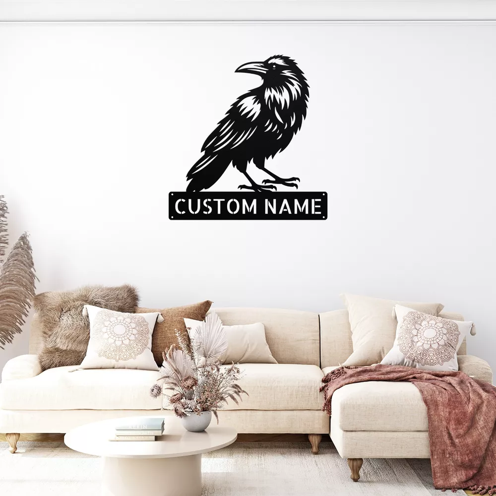 Product Description Custom Raven Bird Metal Sign Unique Decor Wall Art Gift for Bird Lovers Elevate your space with this Custom Raven Bird Metal Sign ! Made from high-quality 16 gauge metal, this unique decor piece is perfect for bird lovers and adds a striking touch to any wall. With its durable powder coating, this sign is resistant to dust, weather, and water, making it suitable for both indoor and outdoor use. This personalized sign makes a fantastic gift for Christmas, birthdays, or any special occasion. Whether you’re looking to celebrate a love for ravens or simply want to enhance your home or office decor, this piece is sure to impress. Key Features: Customizable Design : Personalize with names or initials for a unique touch. High-Quality Material : Crafted from sturdy 16 gauge metal for long-lasting durability. Weather Resistant : Powder-coated finish protects against dust and moisture. Versatile Decor : Perfect for indoor and outdoor display. Great Gift Idea : Ideal for bird lovers or as a one-of-a-kind home decor piece. Bring a touch of nature into your life with this eye-catching raven metal sign. It’s not just decor; it’s a celebration of the beauty and mystery of birds. Order yours today! Service and Color Choice Our metal signs are designed to be personalized just for you, making them the perfect addition to any space! The default color for our signs is Black , but we also offer a variety of beautiful options including Copper, Gold, White, and Silver . After placing your order, simply contact us with your preferred color choice, and we'll ensure your sign is exactly how you envision it. Let’s create something special together!
