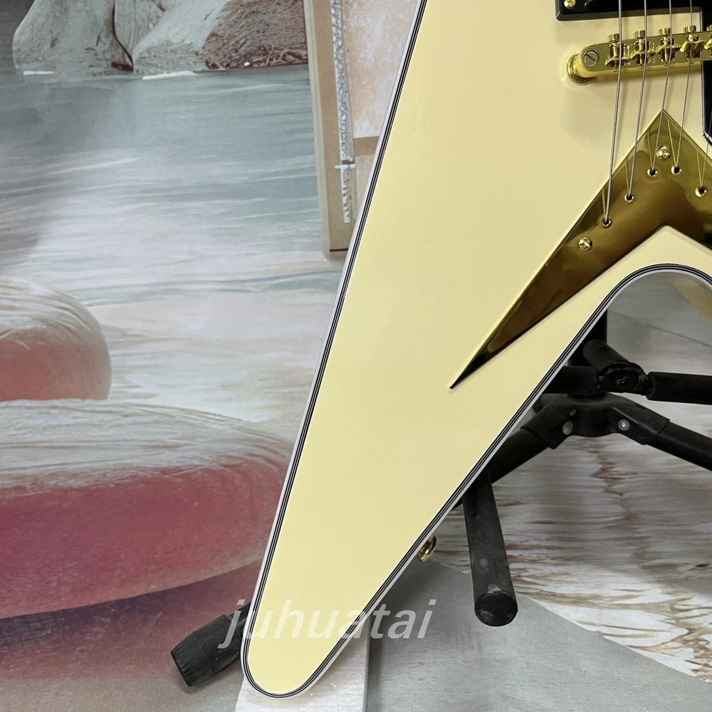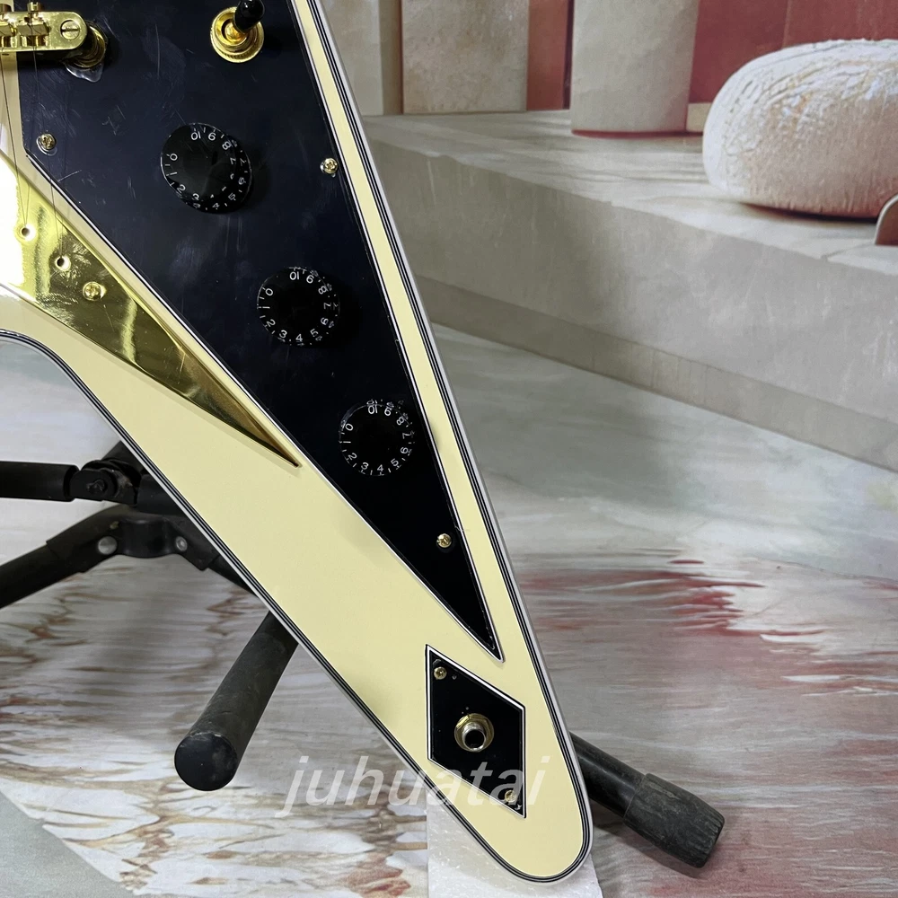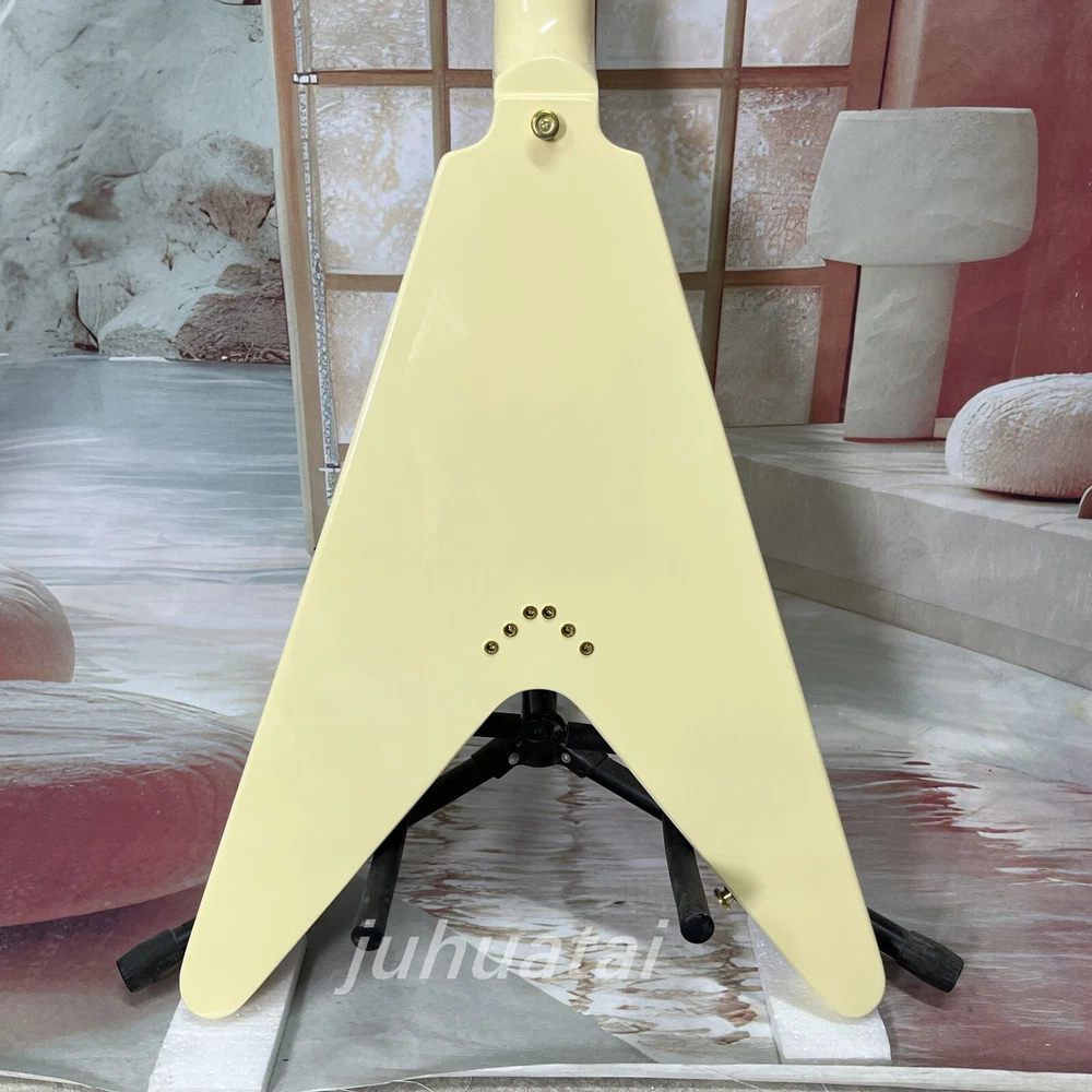 This custom shop Flying V electric guitar is a dream come true for any music enthusiast. With a solid Mahogany body and a creamy white finish, this guitar is sure to make any musician stand out. The 6-string configuration and 22 frets provide endless possibilities for creating unique and inspiring sounds. The guitar features a Mahogany neck and a Rosewood fretboard, providing a comfortable and smooth playing experience. The guitar is right-handed and comes with a cable, making it easy to connect to any amplifier. This guitar is perfect for professionals and beginners alike, and is sure to impress anyone who plays it.