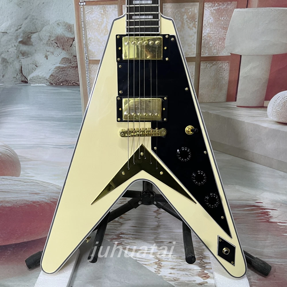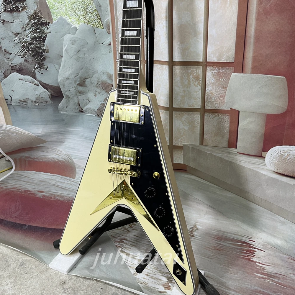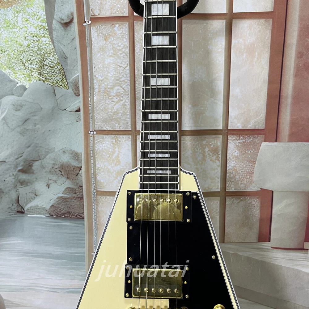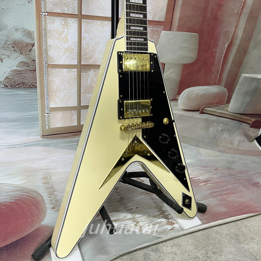 This custom shop Flying V electric guitar is a dream come true for any music enthusiast. With a solid Mahogany body and a creamy white finish, this guitar is sure to make any musician stand out. The 6-string configuration and 22 frets provide endless possibilities for creating unique and inspiring sounds. The guitar features a Mahogany neck and a Rosewood fretboard, providing a comfortable and smooth playing experience. The guitar is right-handed and comes with a cable, making it easy to connect to any amplifier. This guitar is perfect for professionals and beginners alike, and is sure to impress anyone who plays it.
