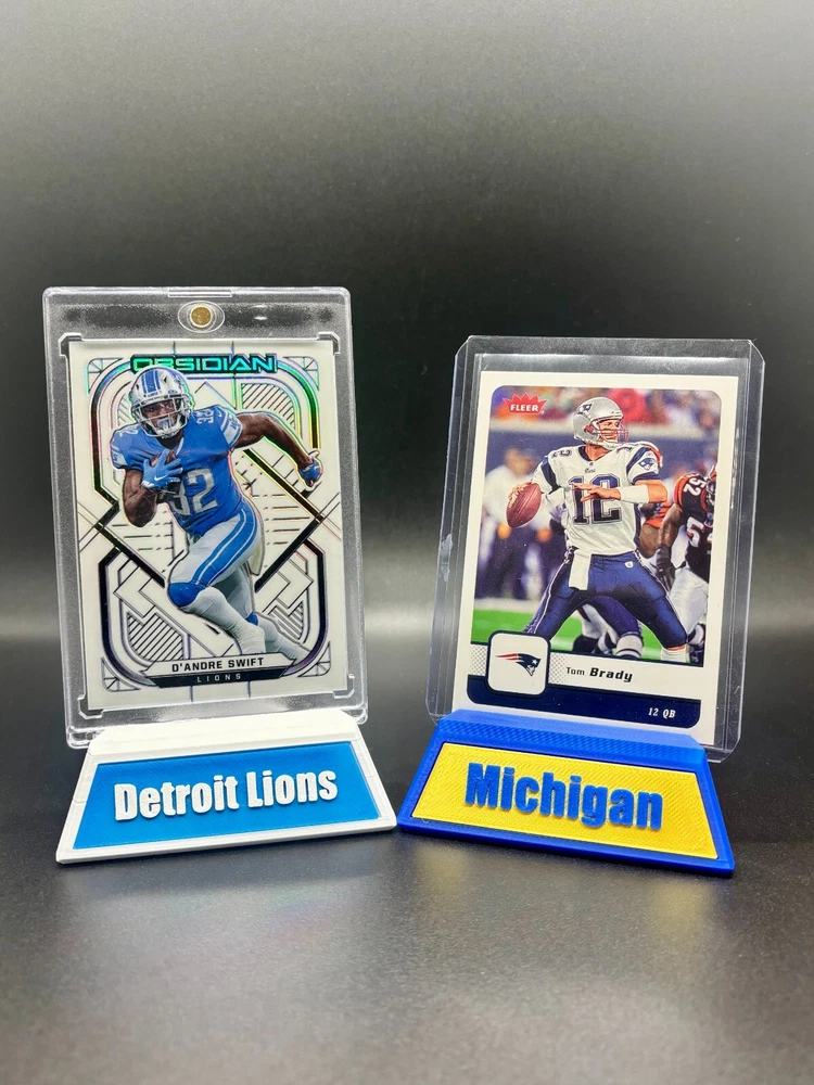 Description Show Off Your Collection in Style with a Customizable Trading Card Display Stand! Elevate your trading card collection with a personalized 3D printed display stand. Customize it with your favorite team name, city, or your own name to make it uniquely yours! How to Personalize: 1️⃣ Add the item to your cart. 2️⃣ Enter your desired text in the personalization box (e.g., name, team, or city). 3️⃣ Double-check the spelling to ensure it’s perfect! Available in Multiple Colors: Choose from a variety of vibrant colors to match your style or team spirit. Don’t see your preferred color? Contact the seller for additional options! Explore More: Check out our other listings for additional types of trading card display stands to expand your collection. Create a one-of-a-kind display that celebrates your passion and makes your collection stand out. Order yours today and showcase your cards like a pro! 🏆✨ CHECK OUT MY OTHER 3D PRINTED ITEMS ETSY- 3duckyprints.etsy ISTAGRAM- @3DuckyPrints