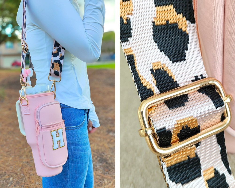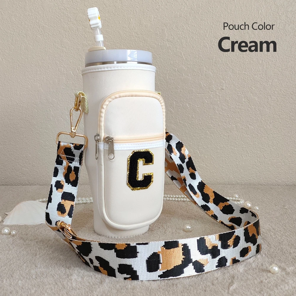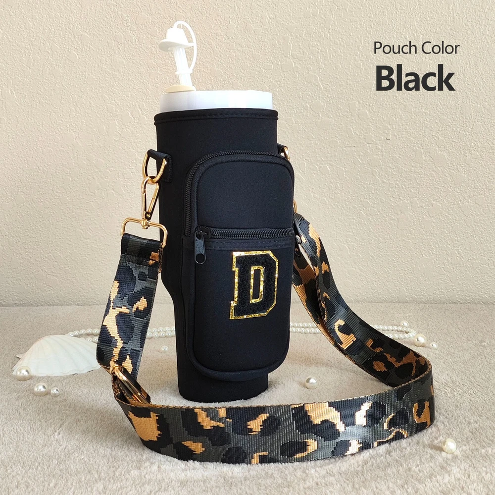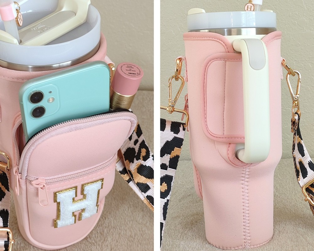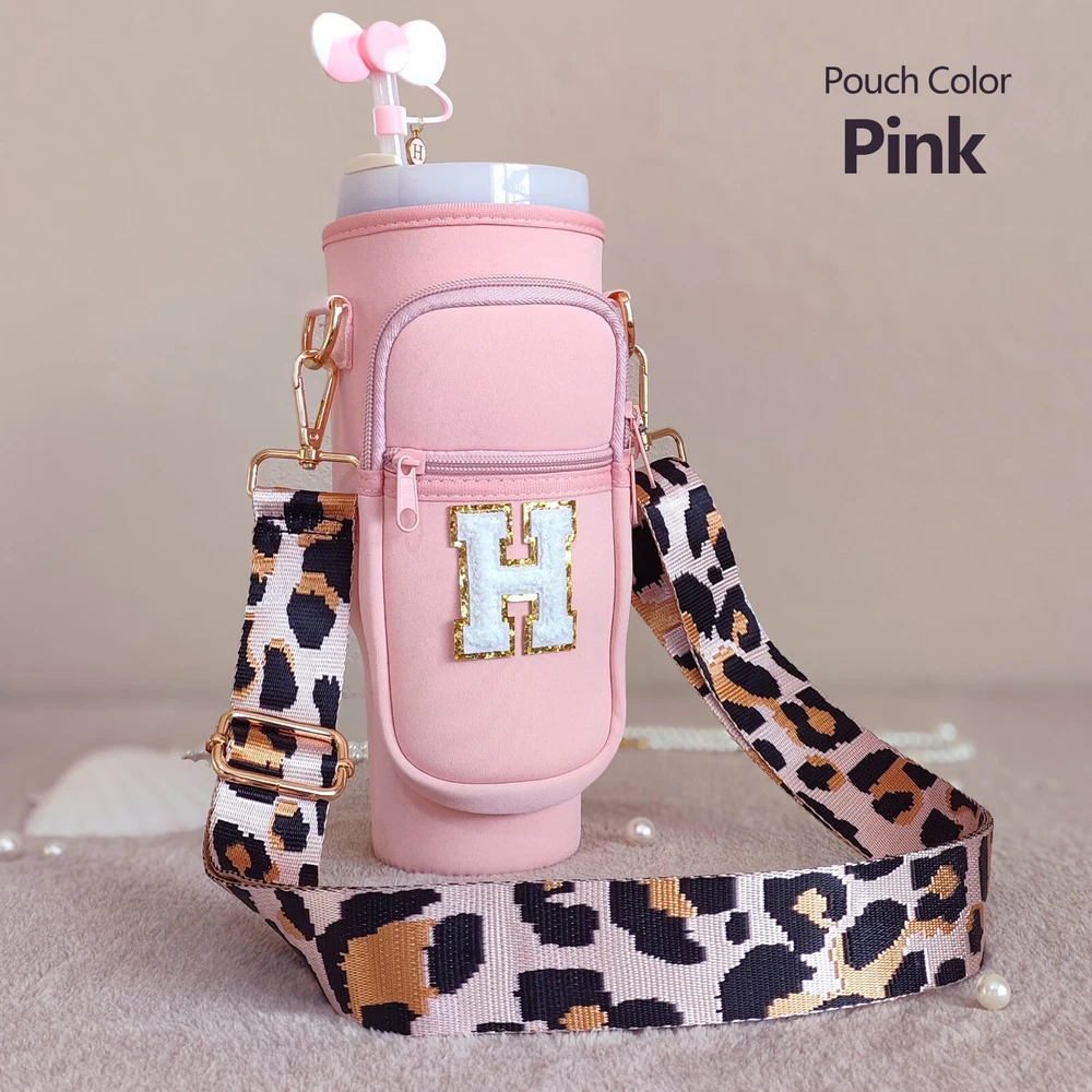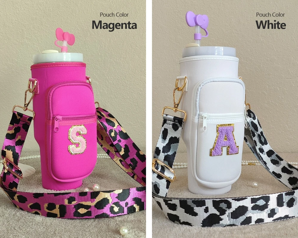 Please specify the letter color, or we will select one for you. Meet our awesome Handcrafted Tumbler Pouch! The perfect accessory to add a touch of personality to your on-the-go style! Whether you're looking for a cute way to accessorize your tumbler or need a hands-free solution for your essentials, our personalized tumbler bag has you covered. Key Features: π Customizable with Chenille Patches for a unique touch. π¨ Choose from various pouch and letter colors to suit your style. π§³ Versatile and compact design β great for travel, outings, and more. π Adjustable shoulder strap ,various styles for you to choose from, fits 40oz tumblers securely. ποΈ Perfect for carrying hotel keys, car keys, tiny bottles, lip gloss, money, credit cards, and more. Material & Size: π Made from soft neoprene polyester fabric, water-resistant and durable. π Pouch size: Sleeve: 9.65in x 3.9in. Outer specs of front pocket: 5.5in x 3.55in π· Chenille letter height: Around 2.16 inches, width varies between 2.36" to 1.57". π Strap size: Adjustable length (including snap hooks): minimum 28.5" & maximum 49.2" Personalization Options: π Select your preferred pouch color. β¨ Select your preferred strap style. π Specify the letter and its color in the personalization box for a unique Patch. How to Care: π§Ό Wipe clean with gentle cleaners for easy maintenance. Add a splash of color and style to your tumbler experience with our versatile and chic Tumbler Pouch β the perfect accessory for any adventure!
