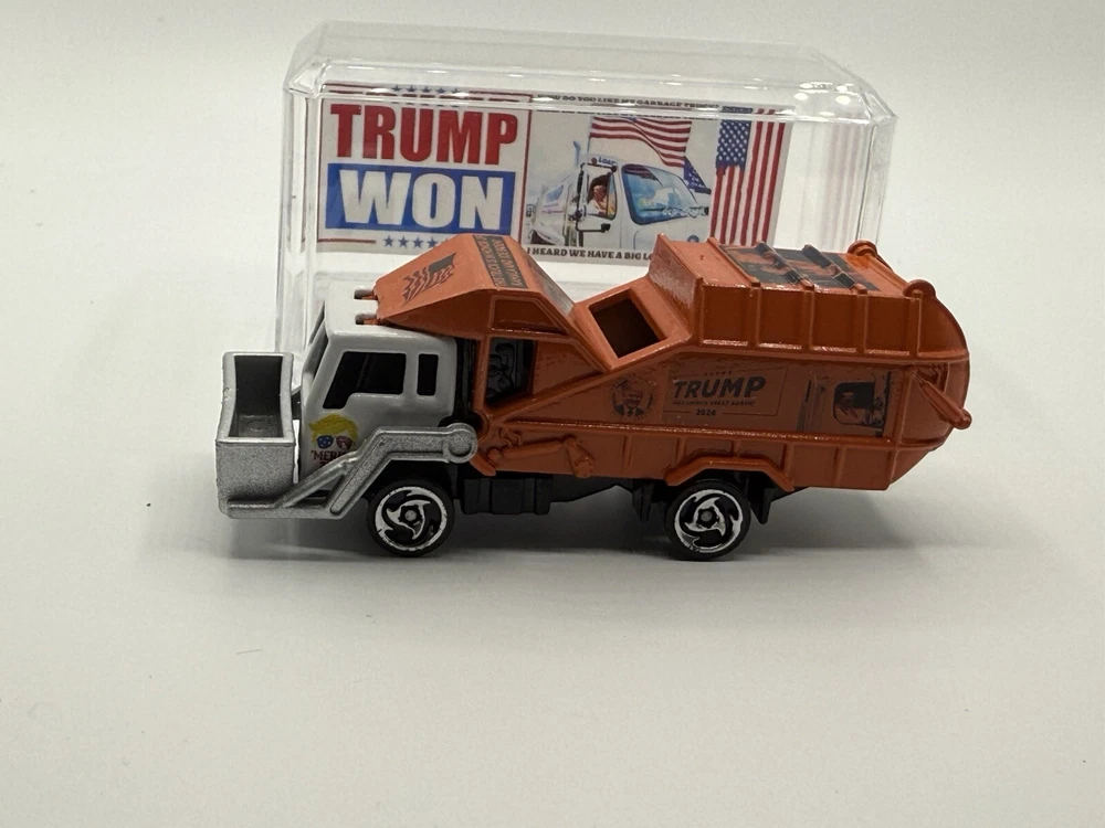 This custom Hot Wheels garbage truck is a must-have for any collector or fan of President Trump. The vibrant orange color and "Trump Won" slogan make it a unique addition to your collection. The 1991 release is part of the Hot Wheels Hot Trucks series and is made of high-quality diecast material. The truck is in a 1:64 scale and comes in an acrylic case. Perfect for display or play, this Hot Wheels truck is a great way to show your support for President Trump.