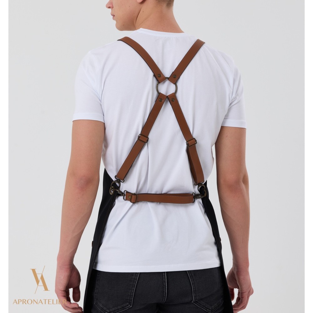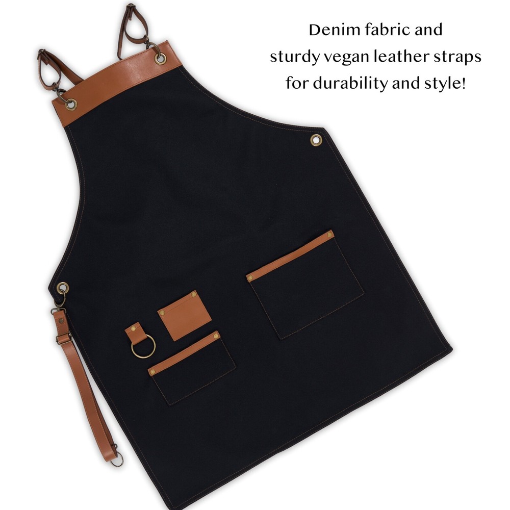 This apron is a game-changer! The black canvas and vegan leather combo looks sharp while staying durable. The X-back straps make it super comfy, even during long grilling sessions. Love the personalization option—perfect for baristas, bartenders, or BBQ lovers. The pockets are handy, and the quality feels premium. A stylish yet practical gift that stands out!