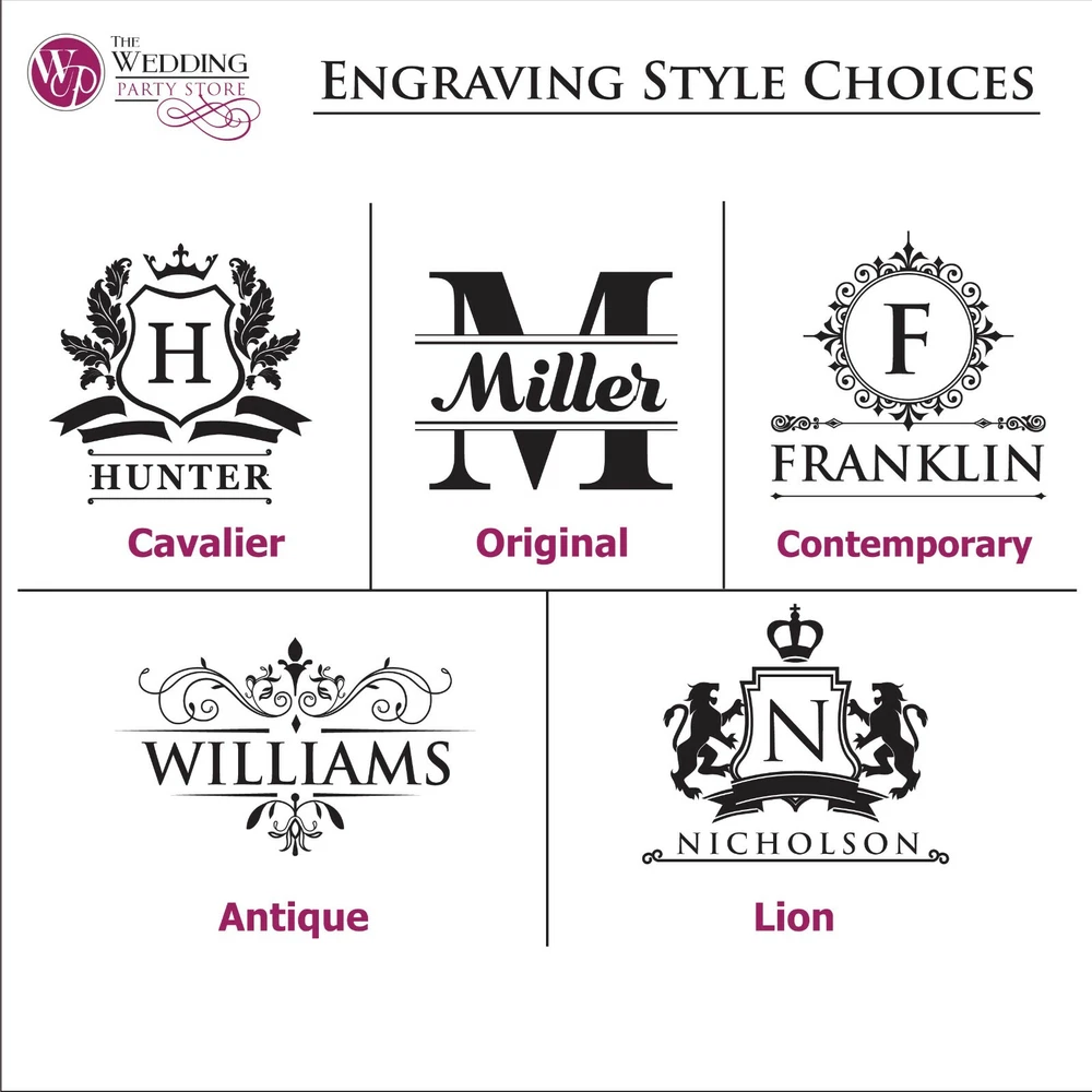 This beautifully engraved Whiskey Decanter holds 26 oz of your favorite spirit. The glass decanter makes a great wedding gift, groomsmen gift, housewarming gift, birthday gift, father's day gift and more! Add matching customized glasses to your order. Customize your order with any name, date and title you want by choosing one of our 9 unique style choices or create your own!