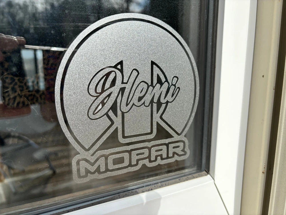 Personalized vinyl decal w/a piston & tools for your workshop or business. Put it on glass, toolbox lid, your door or any SMOOTH, CLEAN, NON-PORROUS SURFACE. It's available in a bunch of sizes and 7 different stock colors (custom colors are available on request.). Make your size and color selections using the drop down menus. Add your business name (or your name or WHATEVER as well as your phone number w/area code, or just leave out the number if you prefer.) I'm completely flexible and will work with you on any design. There is no background. Where you see white in the sample photos is clear. Colors shown in the last photo from left to right are etched glass(semi-translucent), baby pink, lilac, bubblegum pink, light blue, dark blue, mirror chrome, mirror gold. The "Mopar Hemi" decal shows what etched glass looks like on a window. Other colors and custom sizes are no problem at all. Just ask! :-) The decals are computer cut, transfer tape is applied and detailed application instructions are included. FREE shipping. BUY 2 & GET 1 FREE! Beware of sellers with extremely low prices who keep the cost low by mailing your decal in an unprotected standard envelope with a postage stamp.... Ugh! Buy from them and your decal will surely arrive mangled. I ship via USPS GROUND ADVANTAGE at a cost of $4-$6 in a padded envelope with the decal encased in cardboard to prevent bending/creasing.
