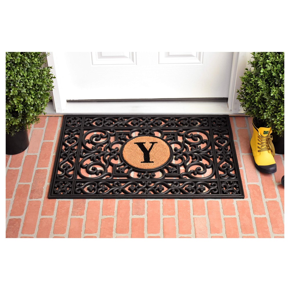 Custom Y Monogram Rubber Doormat 2x3 Feet for Personalized Home Entryway Decor