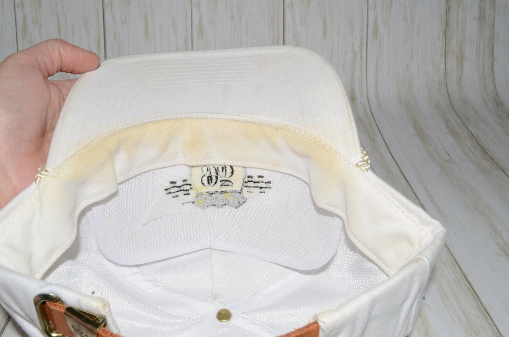This item is used. Has wear and stains. Will need to be cleaned. One size fits most. Please contact me with any questions. Please refer to pictures. Hat will be shipped in a box. International sales are shipped though Ebay Global Shipping Program only No refunds, returns or exchanges Ships within 2-3 business days after payment has been received Item # HB-26