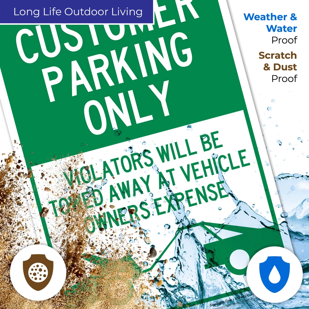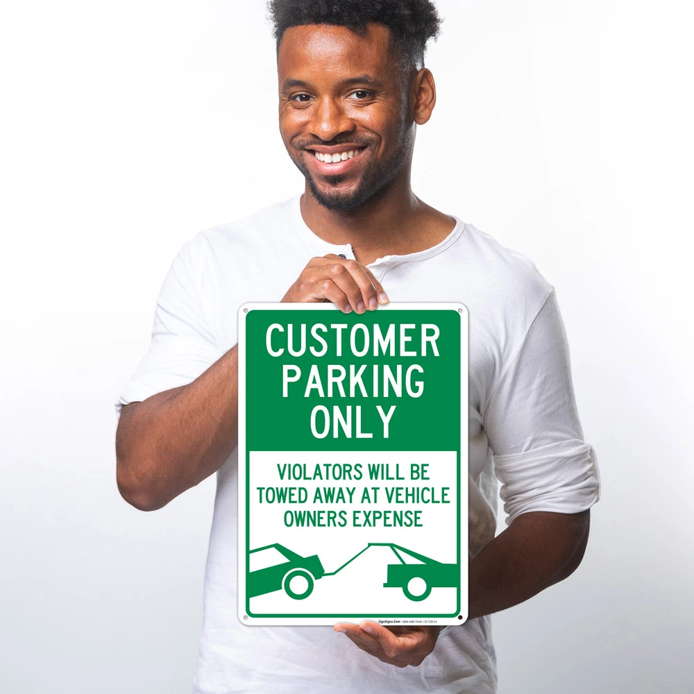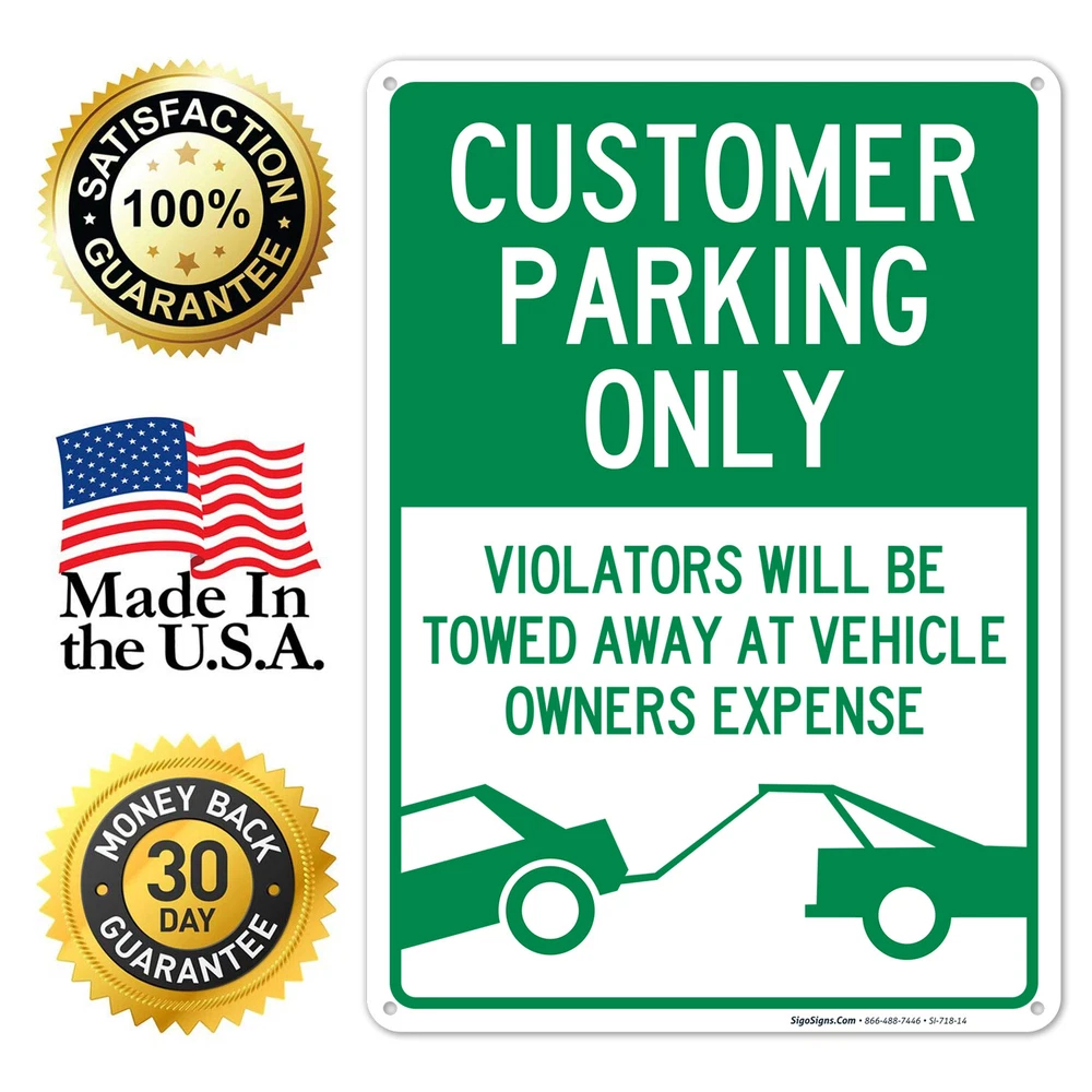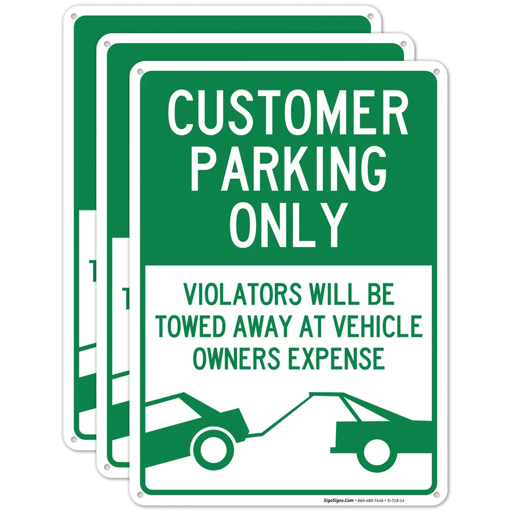 Customer Parking Only Sign, Will be Towed Sign, (3 Pack) 10x14 Aluminum