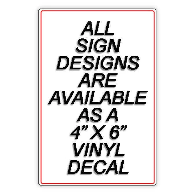 Available As An Aluminum Sign / Magnetic Sign / Vinyl Decal Aluminum Signs Are Available In Five Versions 5" x 7" / 8" x 12" / 12" x 18" Treated With Ultra UV Protection To Prevent Fading Printed directly onto the metal sign Signs do not have stickers, decals, paint or vinyl lettering Won't fade, crack, peel, chip or rust. 5" x 7" (.025 thickness) Signs have square corners, two strips of mounting tape and no holes 8" x 12" (.025 thickness) Signs have rounded corners and are available in TWO OPTIONS AVAILABLE WITH 1/4" MOUNTING HOLES ALSO AVAILABLE WITHOUT MOUNTING HOLES BUT MOUNTING TAPE IS ATTACHED TO THE BACK OF THE SIGN 8" x 12" (.032 thickness) Signs have rounded corners and two 1/4" mounting holes 12" x 18" (.032 thickness) Signs have rounded corners and two 1/4" mounting holes Decals are 4" X 6" Vinyl decals do not have holes Printed with eco-solvent ink guaranteed to last 5 to 7 years Decals are shipped USPS First Class Mail with tracking CUSTOM DESIGN DECALS ALWAYS AVAILABLE Magnetic Signs Offer The Option Of Being Removable You can display the sign on your garage door or front door when you are expecting a delivery and then remove it when no delivery is expected Perfect if you'd prefer not to have a sign mounted permanently Magnetic signs are 7" x 10" or 5" x 7" and have no holes PLEASE CHECK TO MAKE SURE THAT MAGNETS STICK TO THE AREA THAT YOU PLAN TO USE THE MAGNETIC SIGN Some doors are aluminum and the signs may not stick