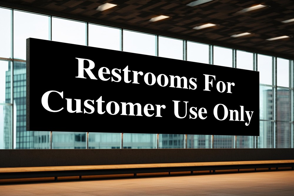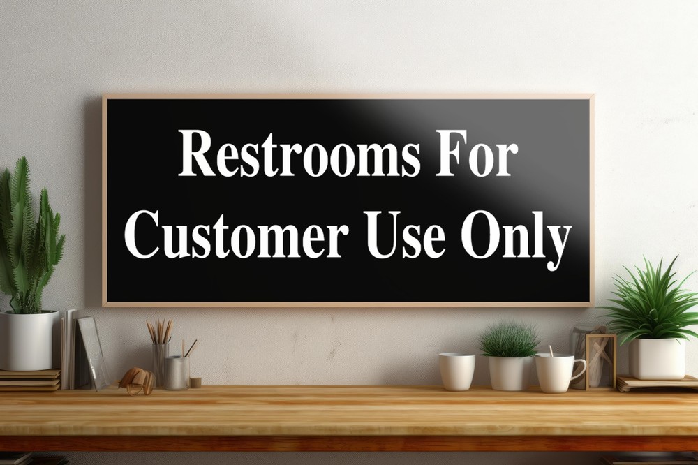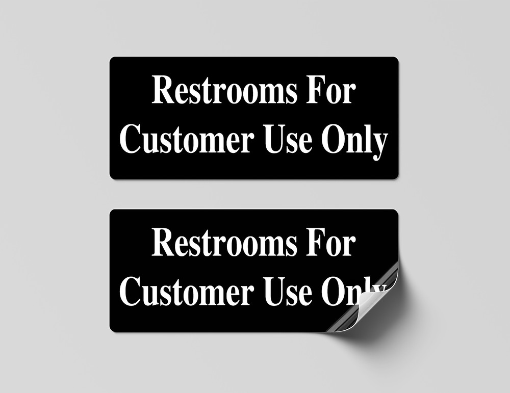 DESCRIPTION: This laminated decal is for Restrooms for Customer Use Only . Our decals/labels are great for industrial, commercial, storefronts, restaurants, retail stores, outdoor and indoor settings. DURABILITY: Vinyl with aggressive adhesive for a strong bond with the smooth surface. It will last until you're ready to remove it. PREMIUM QUALITY: Color, logos and text are bright and clear. Glossy finish is easy to clean. Easily wipe off dirt, dust, or grease. LAMINATED: 3 Mil thick laminate layer provides protection from weather, UV rays, abrasion, fading and cracking. Offers superior protection vs a mere clear overcoat or ink curing. EASY APPLICATION. Pre-cut decal - just peel and stick to any clean and smooth surface. CUSTOMIZATION: If you need to customize with your own text, phone number, website or any other information, please send us an eBay message with your instructions. INSTALLATION: Simple Installation - just peel and stick. Many installation videos are available on YouTube for reference. SHIPPING: We ship items within 2-3 business days. RETURN POLICY: We are very certain that you will be happy with your purchase. We offer 30-day money back guarantee. If you are not satisfied with your purchase please contact us and we will give you refund or exchange. CUSTOMER SERVICE: We take your feedback very seriously. If you are not satisfied with the purchase please let us know before you give us negative feedback. We will do everything to make you happy. ***** ALL OF OUR PRODUCTS ARE MADE IN THE USA *****