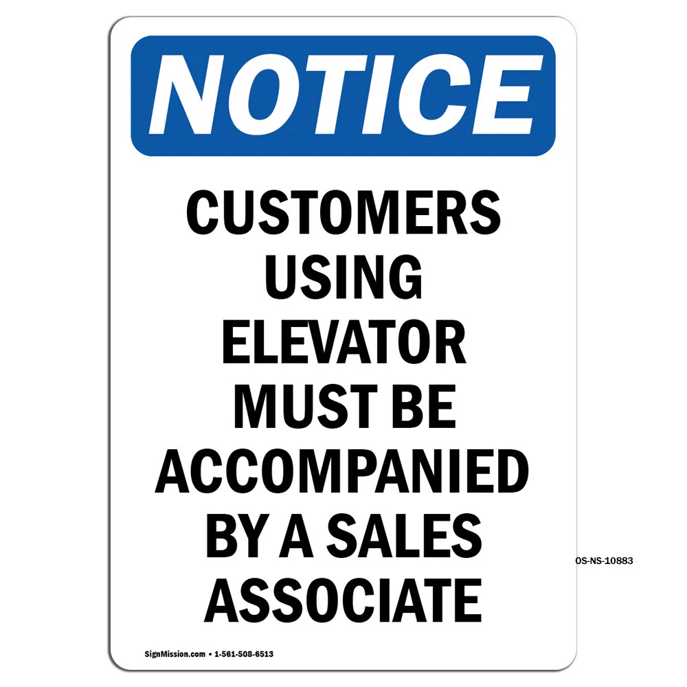 Universal 2 eBay Template by Finest Design Vinyl Banners Aluminum Signs Safety Signs Yard Signs Designer Aluminum Signs Novelty Signs Vinyl Banners Aluminum Signs Safety Signs Yard Signs Designer Aluminum Signs Novelty Signs Description Customers Using Elevator Must OSHA Notice Sign Metal Plastic Decal Make Sure You & Your Business are OSHA & ANSI Compliant. Is your business or work space 100% covered and up to code with current signage and labels? Never leave yourself exposed to lawsuits, fines, or reprimands - the integrity of your business and safety of others depends on it. Choose from Thousands of Signs. We have signs in all different shapes, sizes, and colors for almost every single business, workplace, manufacturing plant, production facility, or construction zone. Check out all our first aid signs, danger signs, keep door closed signs, electric panel hazard signs, storage signs, authorized personnel signs, lab chemicals signs and thousands more. Choose from: Aluminum, Rigid Plastic Signs or Adhesive Labels. Our signs are extremely durable yet flexible for even the most intense indoor or outdoor conditions. SignMission’s full color products are fabricated right here in the United States. Vinyl decals are equipped with super strong adhesive so that you can easily apply it to glass windows, aluminum, stainless steel, sanded wood, plexiglass and many more materials and sidings. Aluminum & rigid plastic signage materials are the perfect choice for mounting on walls, doors, fences, construction and caution areas. All of our materials surpass industry standards and will provide years of durability and longevity. 6 Month 100% Money Back Guarantee. Thousands of happy and satisfied businesses worldwide have turned to SignMission for all of their sign needs no matter what industry they’re in or what compliance needs they have. In the highly unlikely chance that you’re not 100% satisfied with your new sign or decal then simply send it back for a full refund or replacement within 6 months of the ship date. Go ahead order your Notice Sign Today!