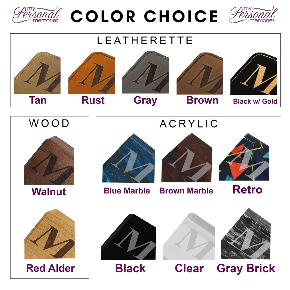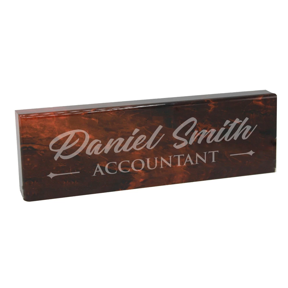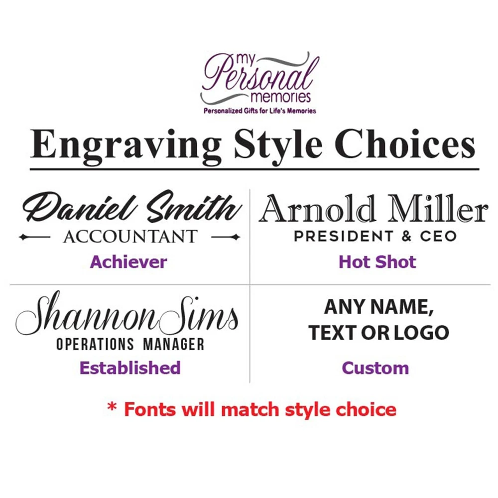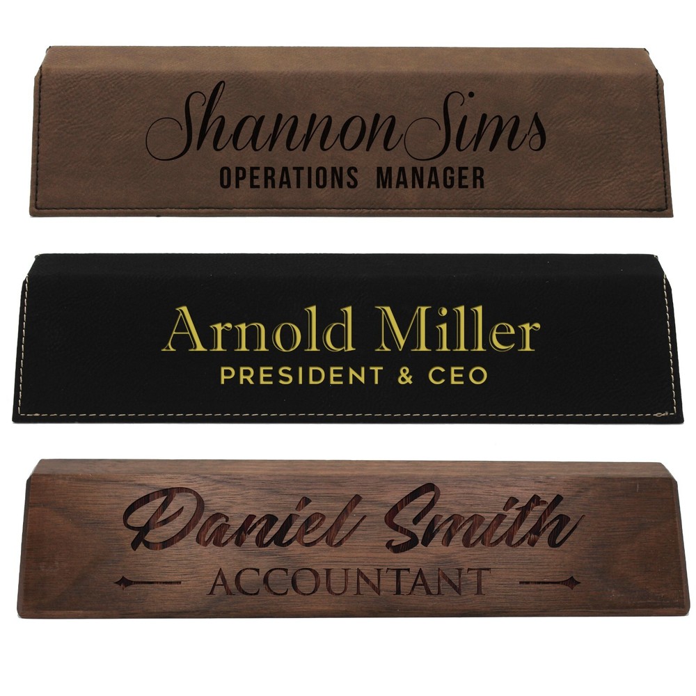 Accessorize your office decor with custom engraved desk name plates! Our desk wedges are perfectly suited for a successful CEO, inspirational teacher or caring surgeon. Surprise a special "Dad Of The Year" or "Mom of The Century" with a sentimental accent for his/her home office. So Many Amazing Possibilities! Measures 10" x 2". IN THE PERSONALIZATION BOX and/or THE NOTES TO SELLER DURING CHECKOUT - PLEASE INCLUDE: 1. Color Choice 2. Style Choice (See last picture) 3. Personalization Details